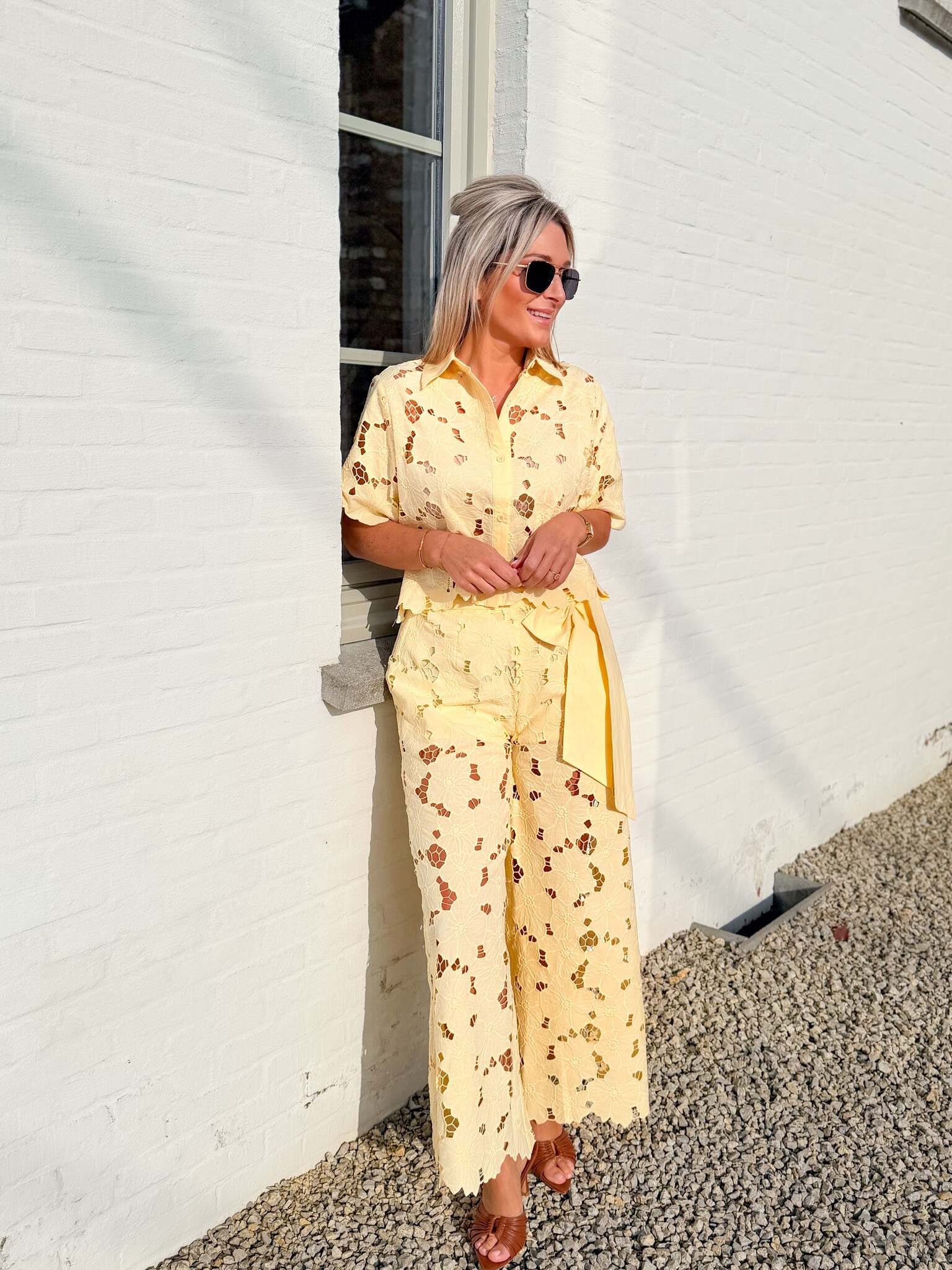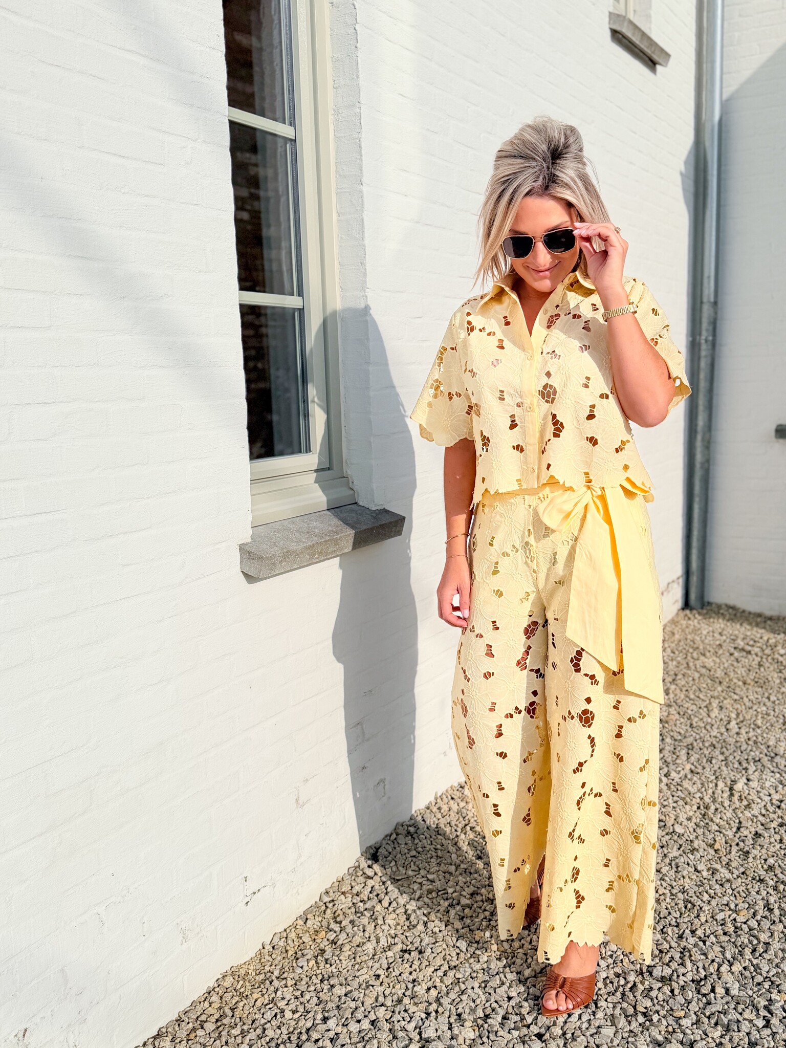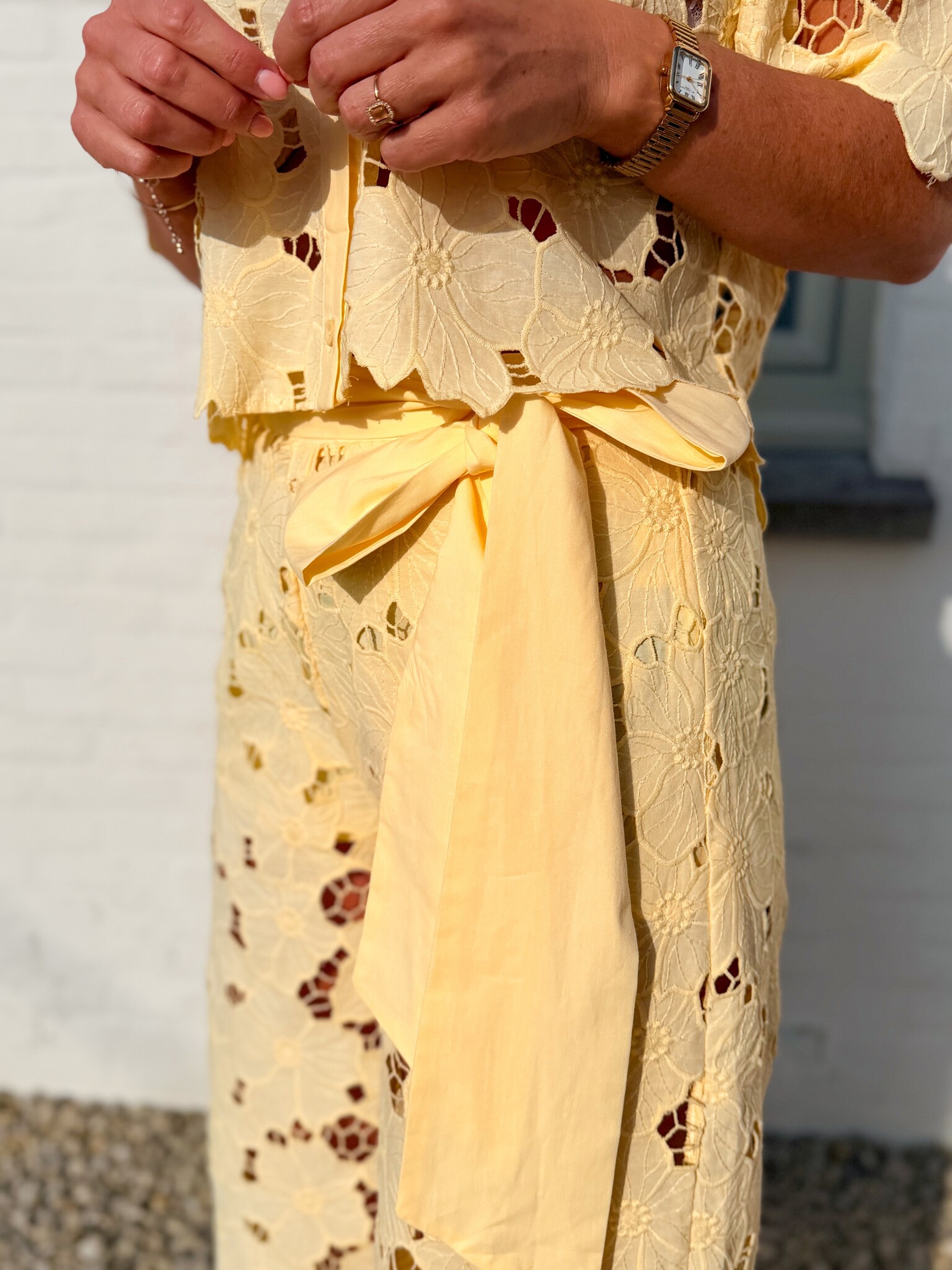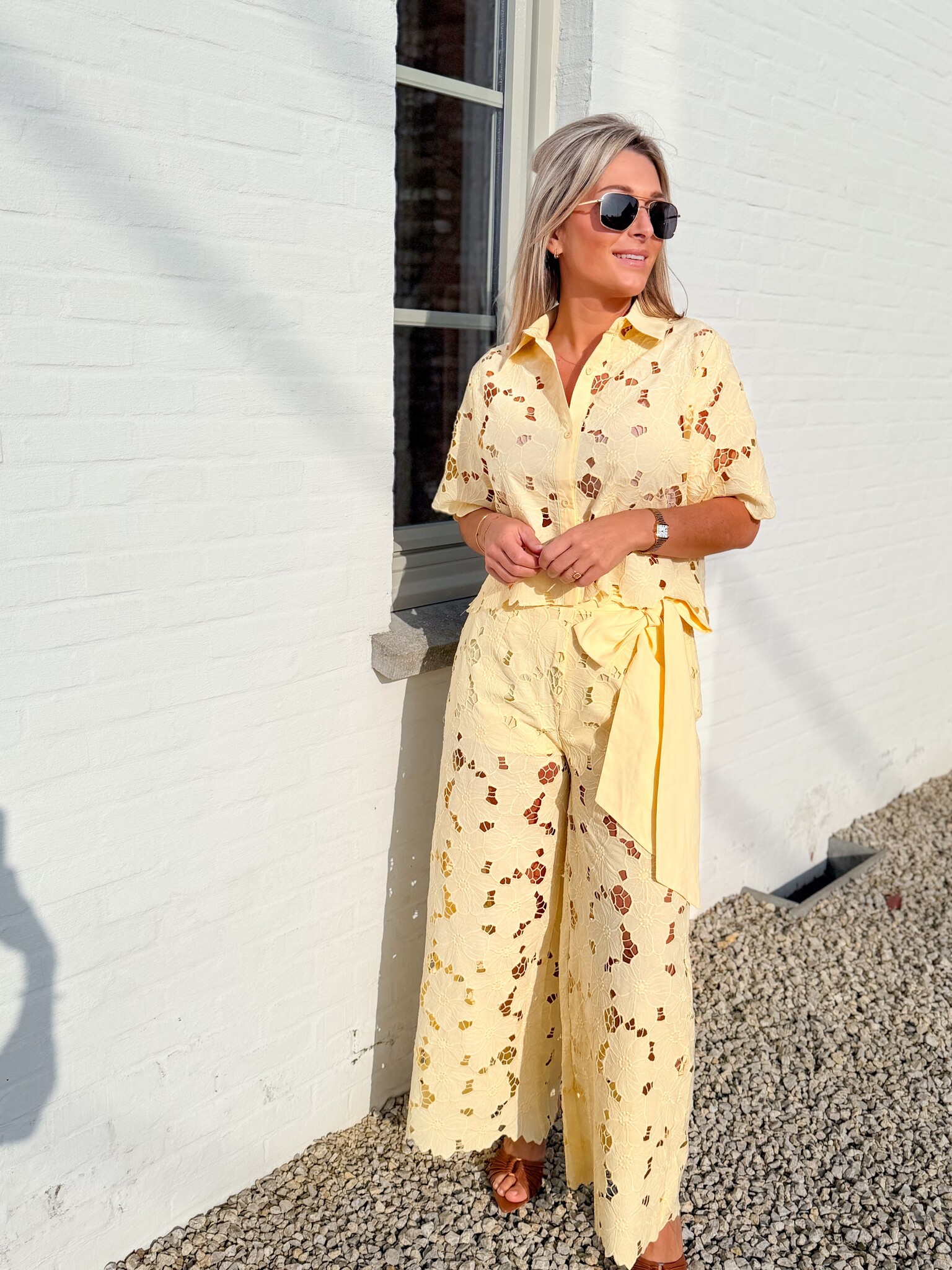 Add to wishlistBlush flow set yellow €89,99 Size: *SMLAdd to cartLogin for wishlistPay directDescriptionVery special lace set. Bright and floral, perfect for spring or First Communion parties. Elegant, playful, and festive all at once. A true eye-catcher for special occasions.The model is 1.62 m tall and wears size S.