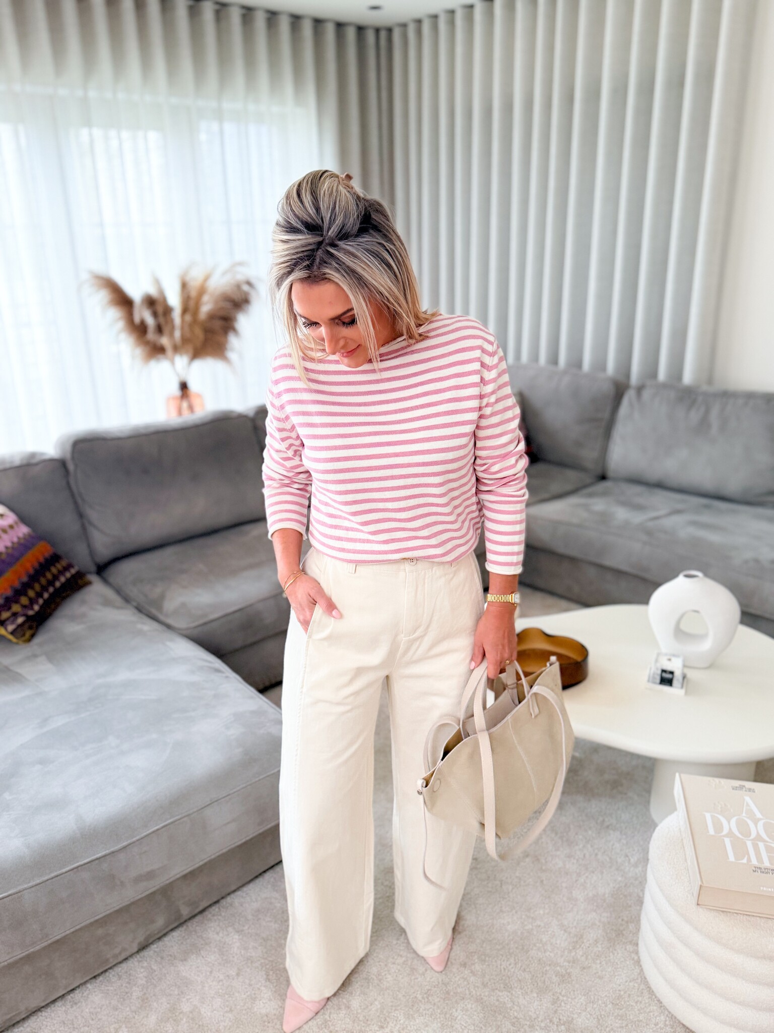Add to wishlistBreeze shape trench pants beige €54,99 Size: *XSSMLAdd to cartLogin for wishlistPay directFree shipping From €75,-DescriptionBeige jeans with a trendy oversized look for a relaxed and modern appearance. Comfortable and easy to style with both casual and more dressed-up outfits. Model is 1.62m and wears size S. Fits true to size.