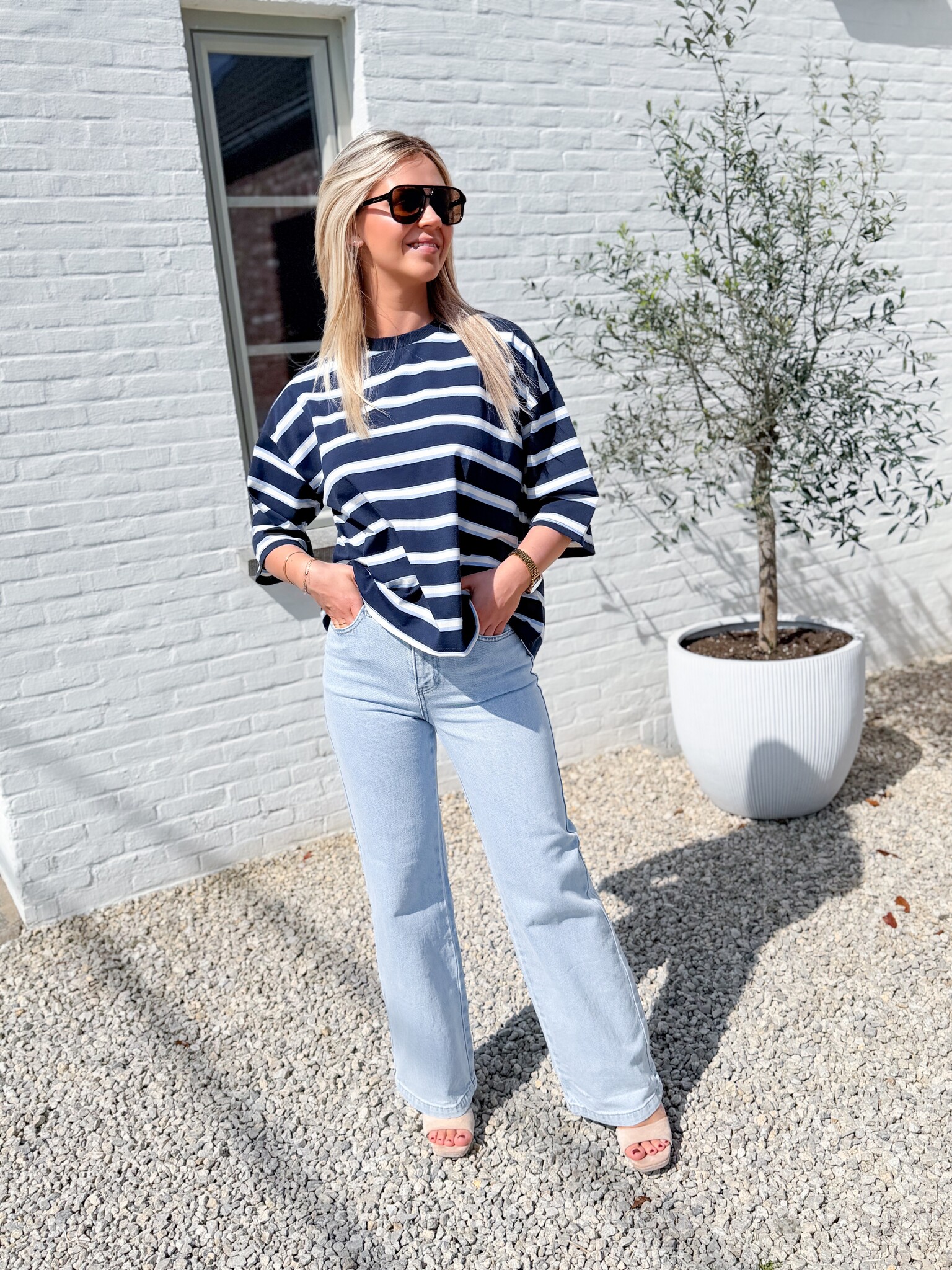 Add to wishlistClean denim €54,99 Size: *XS/34S/36M/38L/40XL/42Add to cartLogin for wishlistPay directFree shipping From €75,-DescriptionLight, stylish jeans with a perfect fit at the top and a slightly looser, comfortable fit at the bottom. True to size and ideal for a casual-chic look. The model is 1.62 m tall and wears size XS/34.