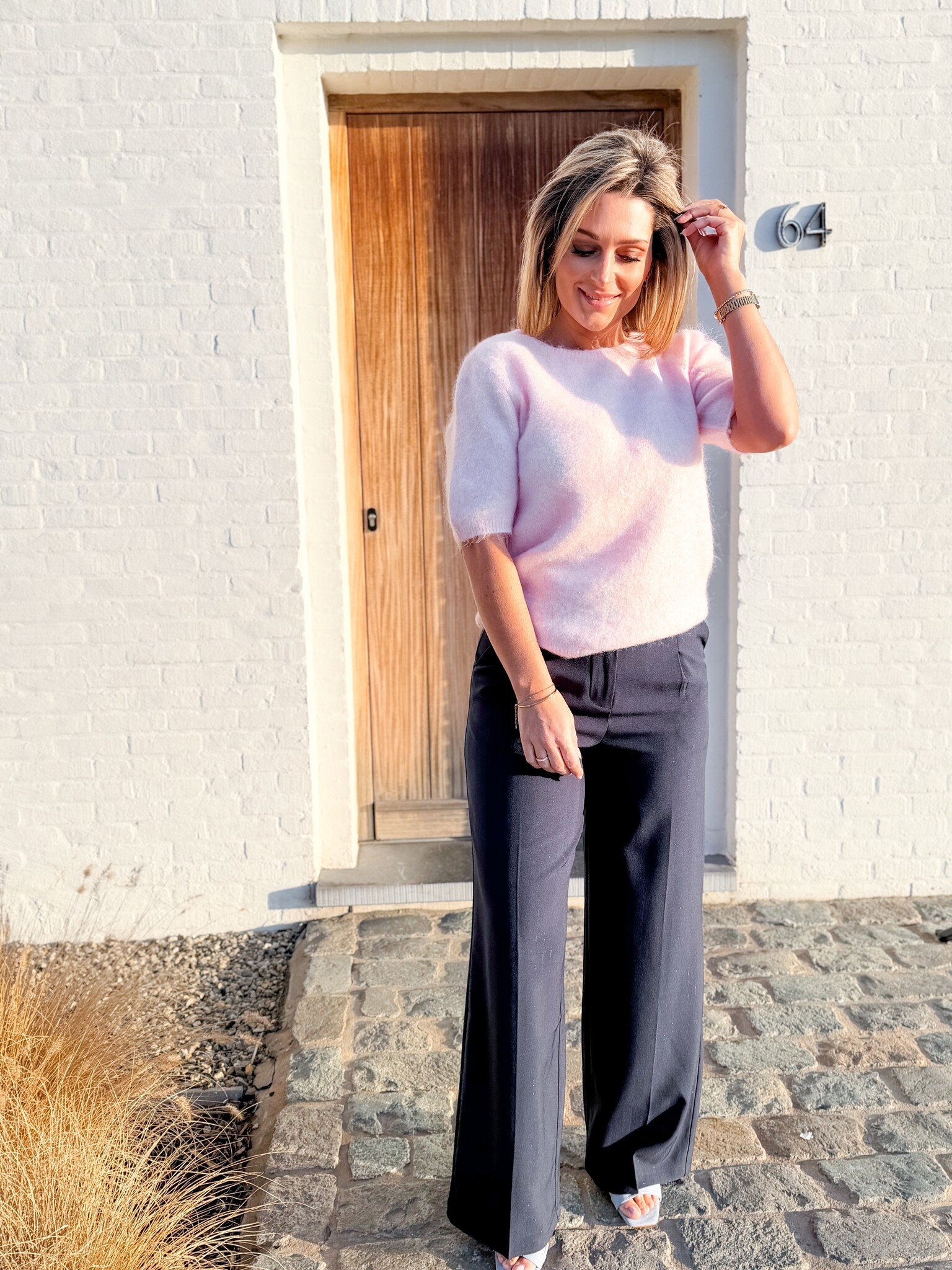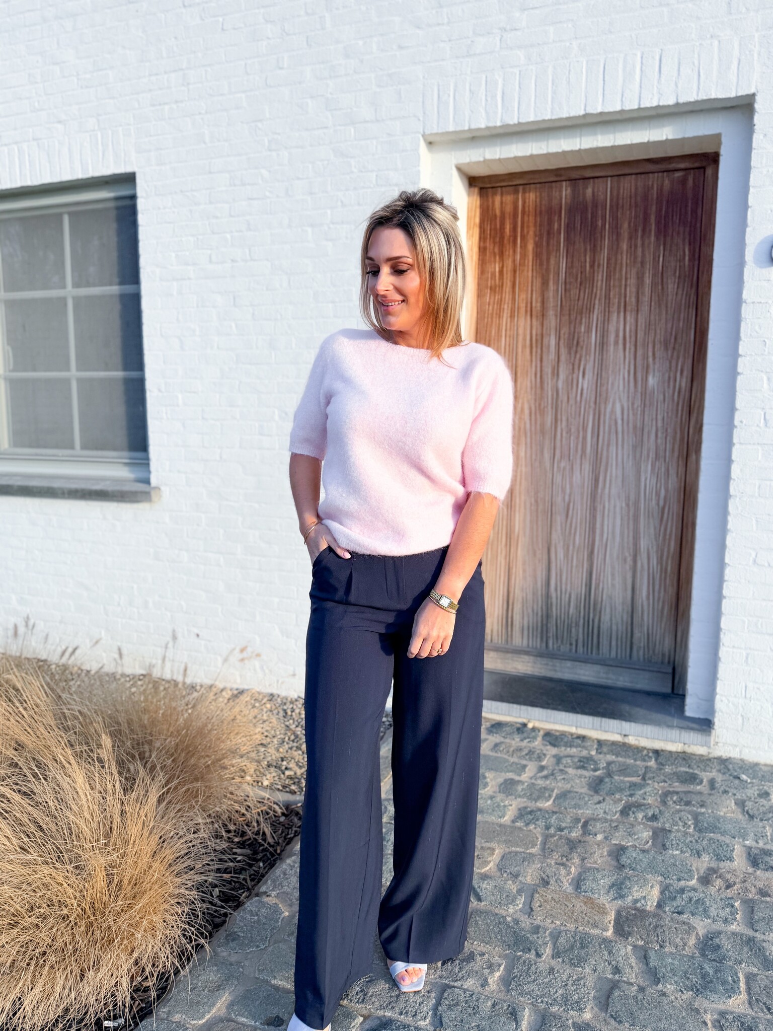Add to wishlistClean flow pants navy €49,99 Size: *SMLAdd to cartLogin for wishlistPay directFree shipping From €75,-DescriptionBeautiful tailored trousers with subtle, fine glitter lines for that extra touch and an elegant look. Model is 1.62m and wears size S. Fits true to size.