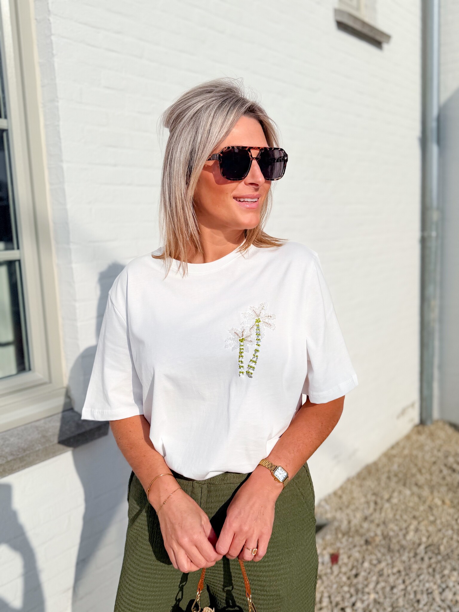 Add to wishlistClean palm tee €39,99 Add to cartLogin for wishlistPay directFree shipping From €75,-DescriptionWhite basic T-shirt with a stylish palm tree print. Simple and comfortable, with a playful detail that adds just the right touch. Fits well up to size L.