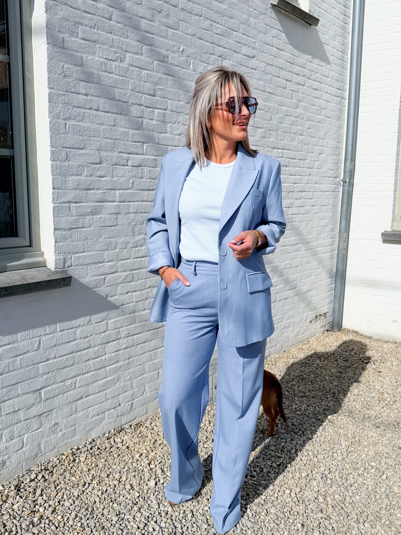 Add to wishlistÉlane pants light blue €59,99 Size: *SMLXLAdd to cartLogin for wishlistPay directDescriptionTailored blue trousers with a long, straight fit for an elegant, polished look. The timeless cut makes them perfect for both professional and dressed-up outfits, while the high-quality fabric ensures comfort and sophistication.