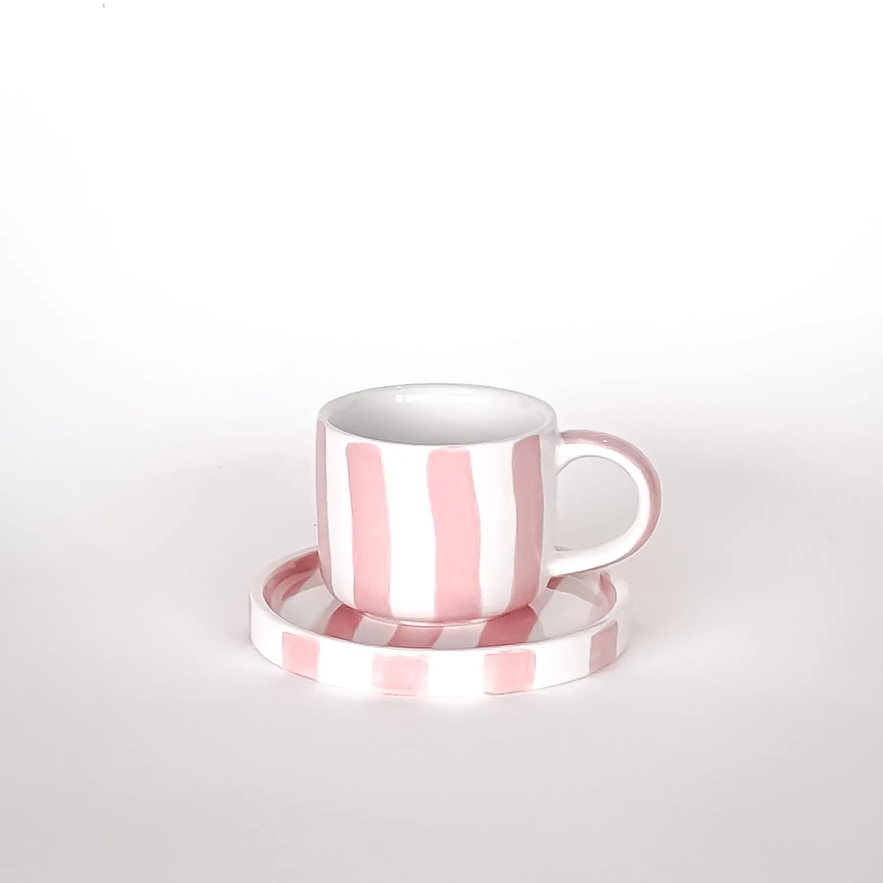 Add to wishlistEspresso 2-piece set + plates Rose €39,99 Add to cartLogin for wishlistPay directFree shipping From €75,-DescriptionSet consisting of 4 pieces (2 cups and 2 saucers), each pair forming a cup with saucer (4 pieces total). Perfect for enjoying an Italian espresso for two. Made of high-quality ceramic and uniquely hand-painted. Dishwasher and microwave safe.