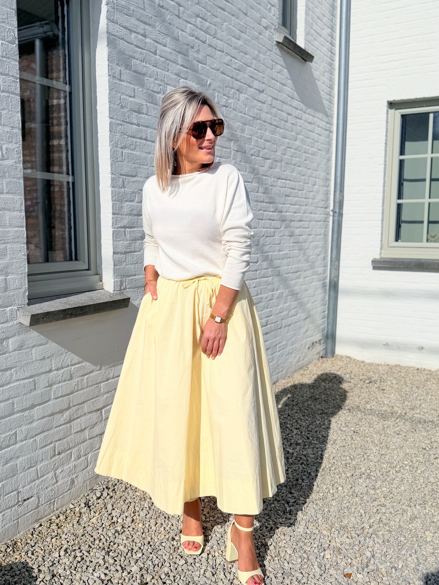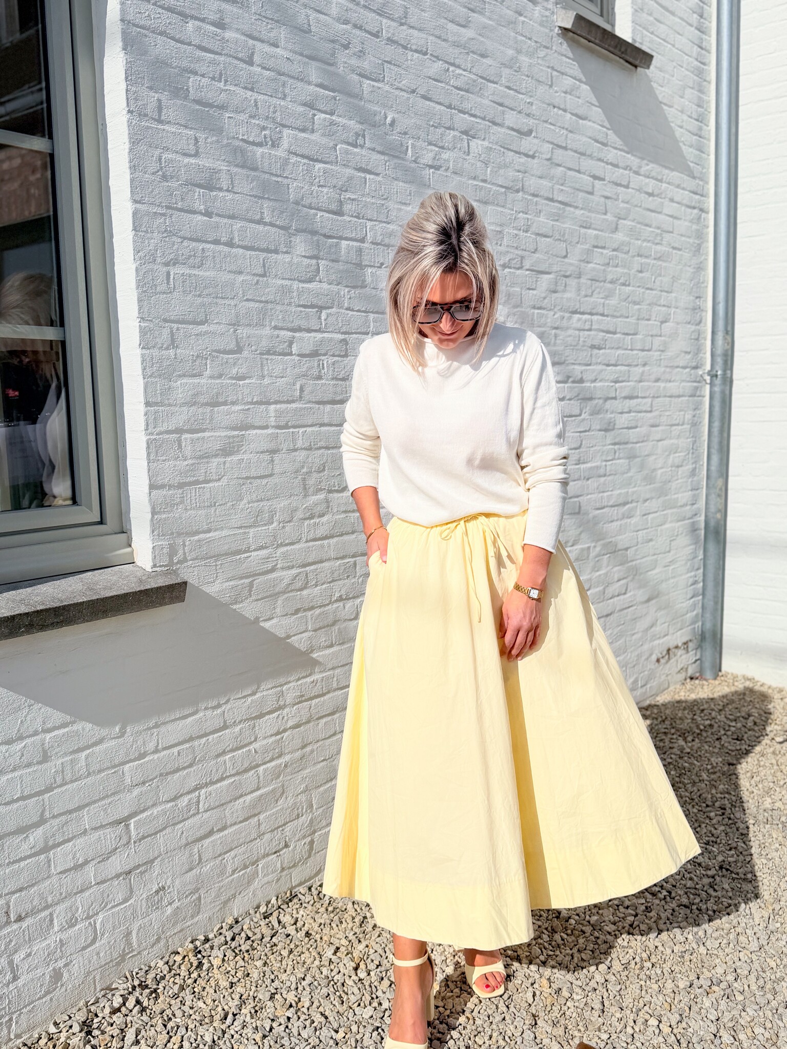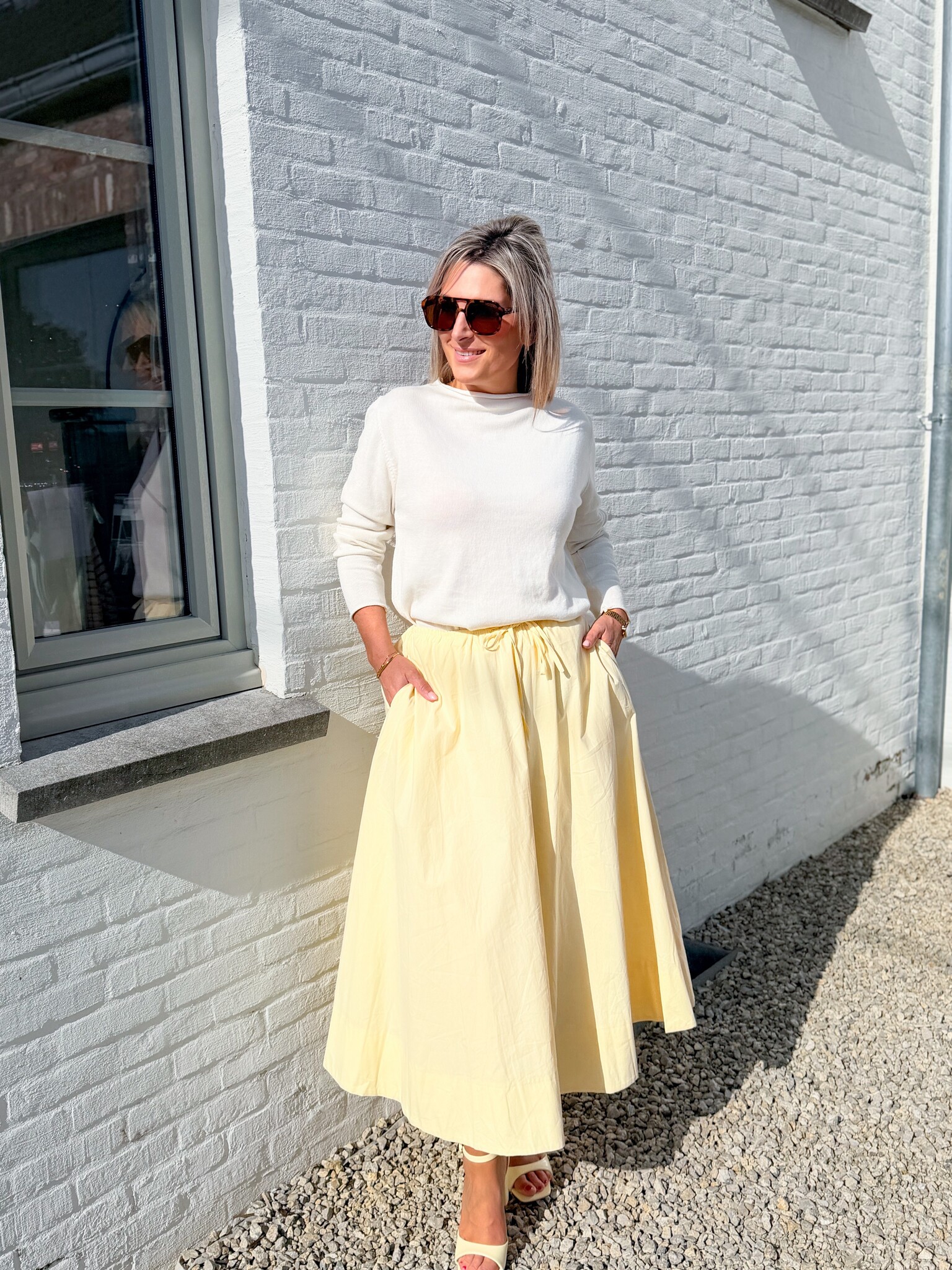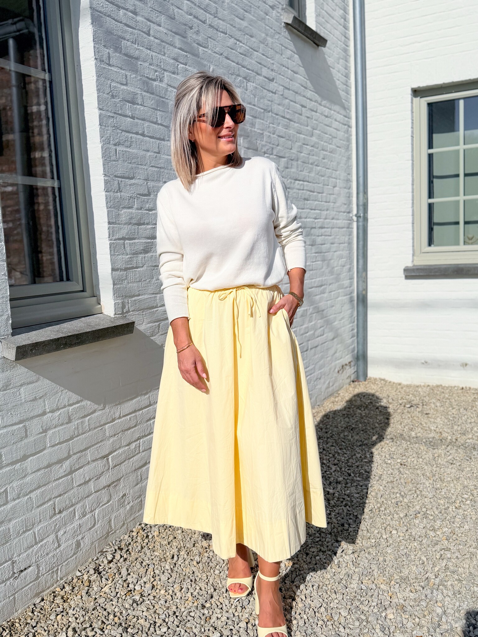 Add to wishlistLemon skirt €44,99 Size: *SMMLAdd to cartLogin for wishlistPay directDescriptionA cheerful skirt that instantly brings spring vibes! With a subtle pattern and a comfortable stretch waistband for a beautiful, airy fit. Model is 1.62 m and wears size S/M.