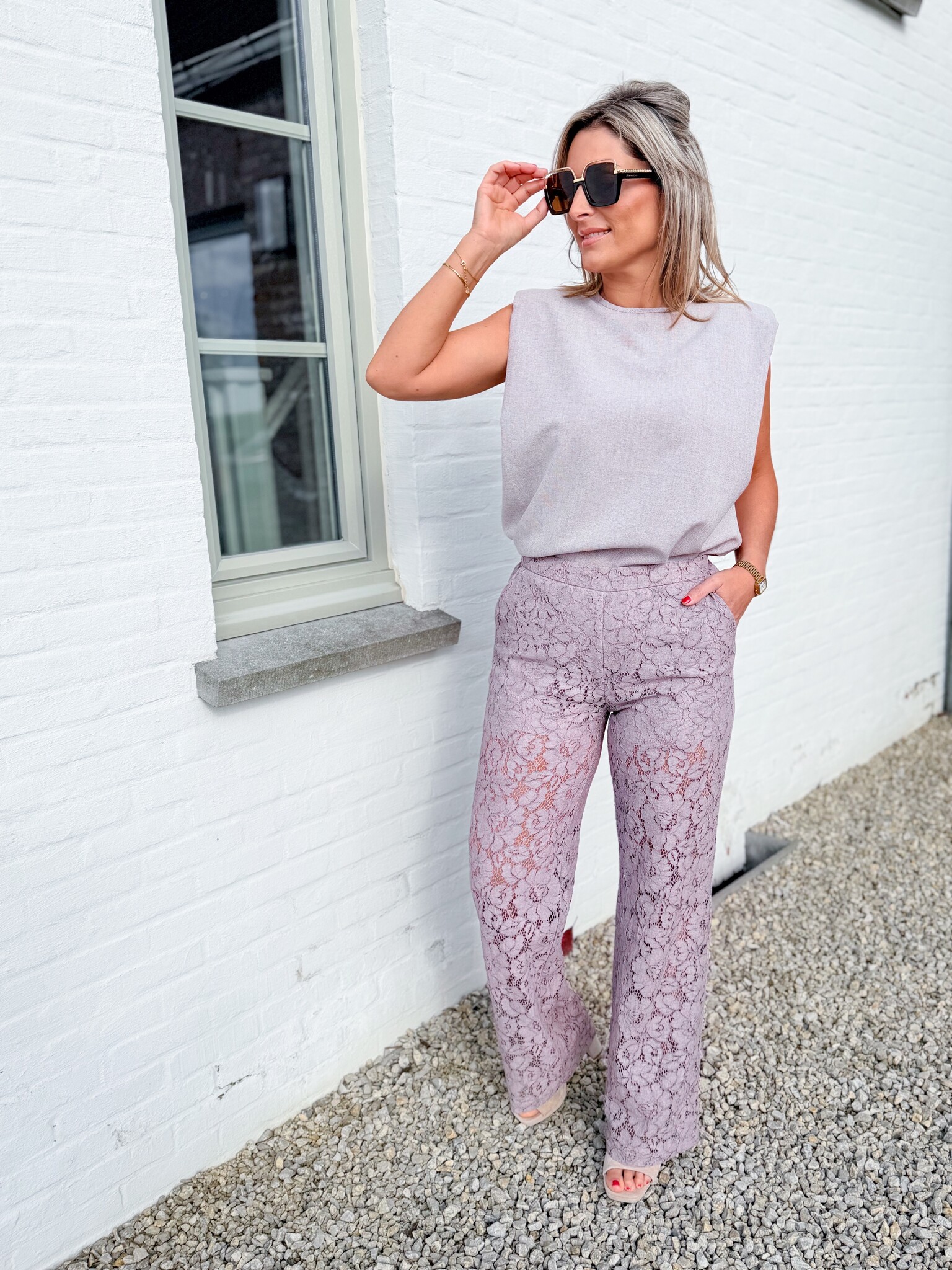 Add to wishlistLeonne lace pants old pink €64,99 Size: *SMLXLAdd to cartLogin for wishlistPay directDescriptionElegant lace trousers with a refined pattern and airy look. Perfect for special occasions or a night out. Effortlessly combines style and comfort for a striking, chic look. Model is 1.62 m and wears size S.