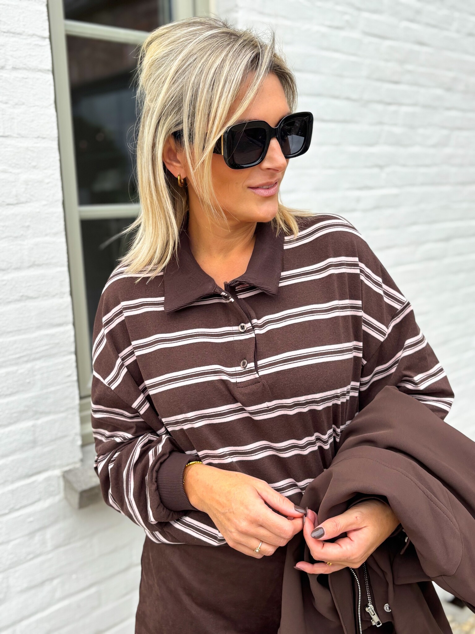 Add to wishlistParallel Pull Brown-Soft Roze €39,99 Add to cartLogin for wishlistPay directFree shipping From €75,-DescriptionStylish polo sweater with playful stripes – perfect for a casual, trendy look. A true must-have and the trend of the season. Model is 1.62m and fits well up to size L.