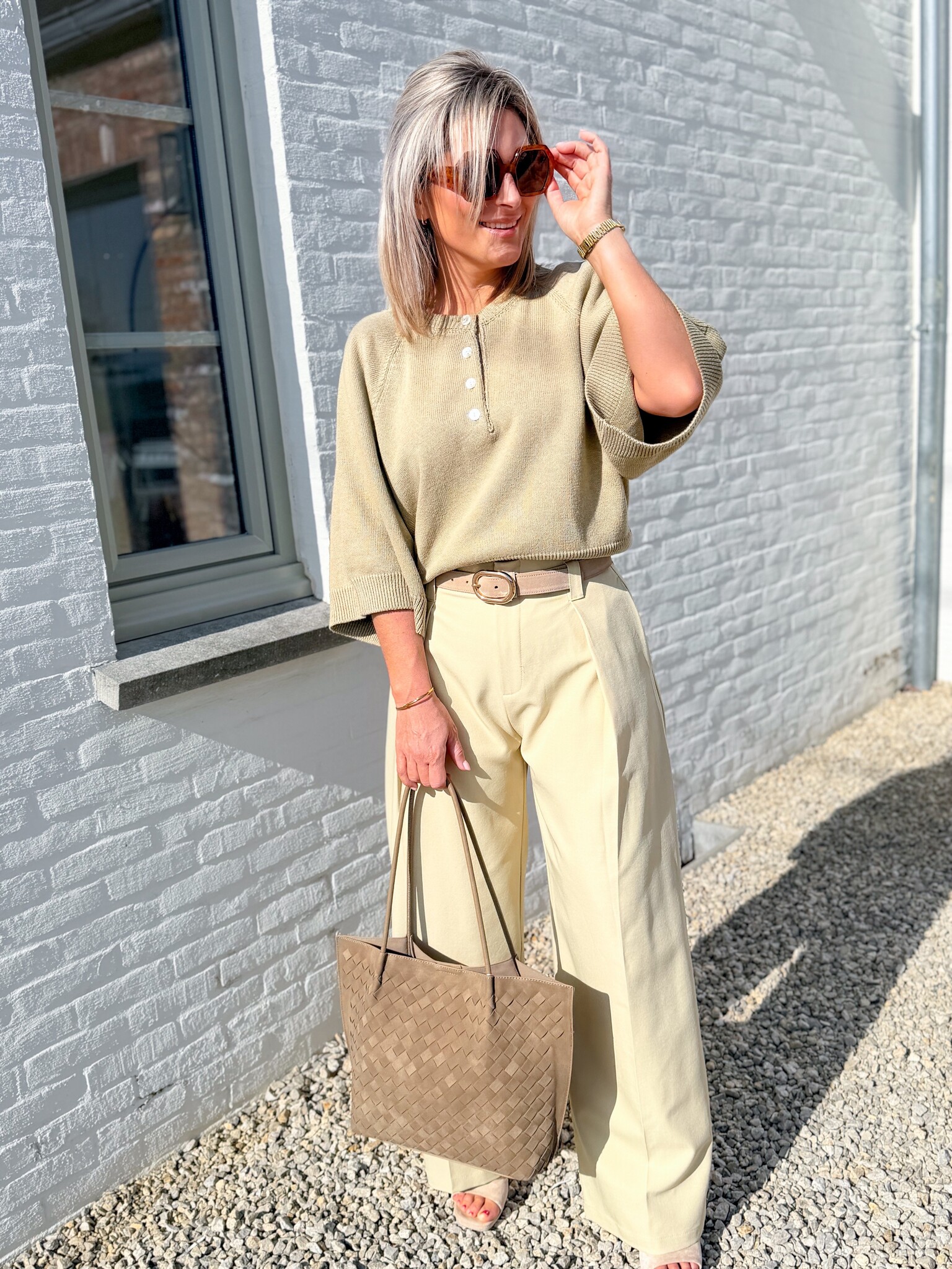Add to wishlistSpring knit matcha €49,99 Login for wishlistFree shipping From €100,-DescriptionCute sweater with wide sleeves and delicate button details. Creates an elegant, soft look and is perfect for both everyday outfits and slightly dressier occasions. Fits well up to size L.