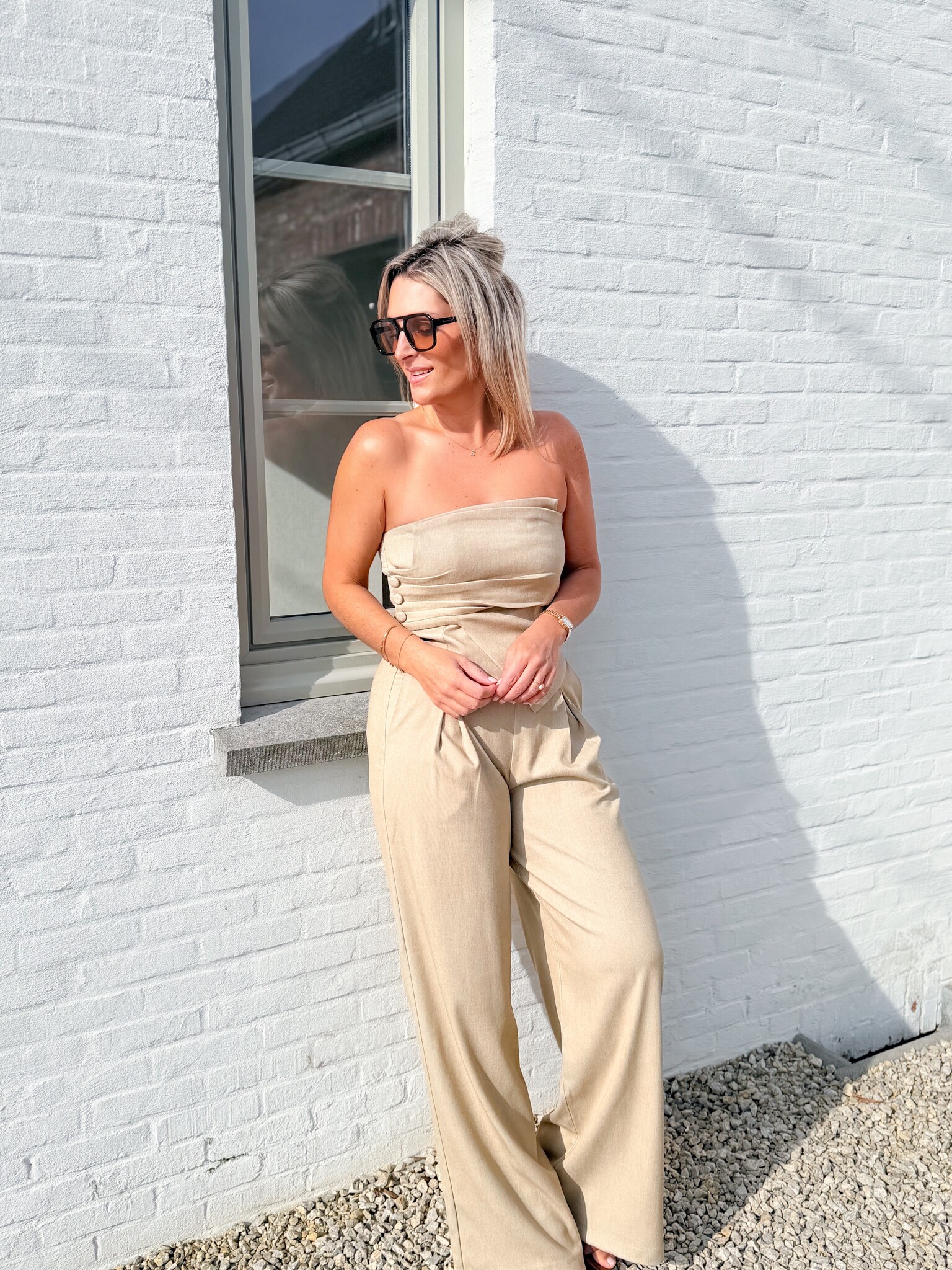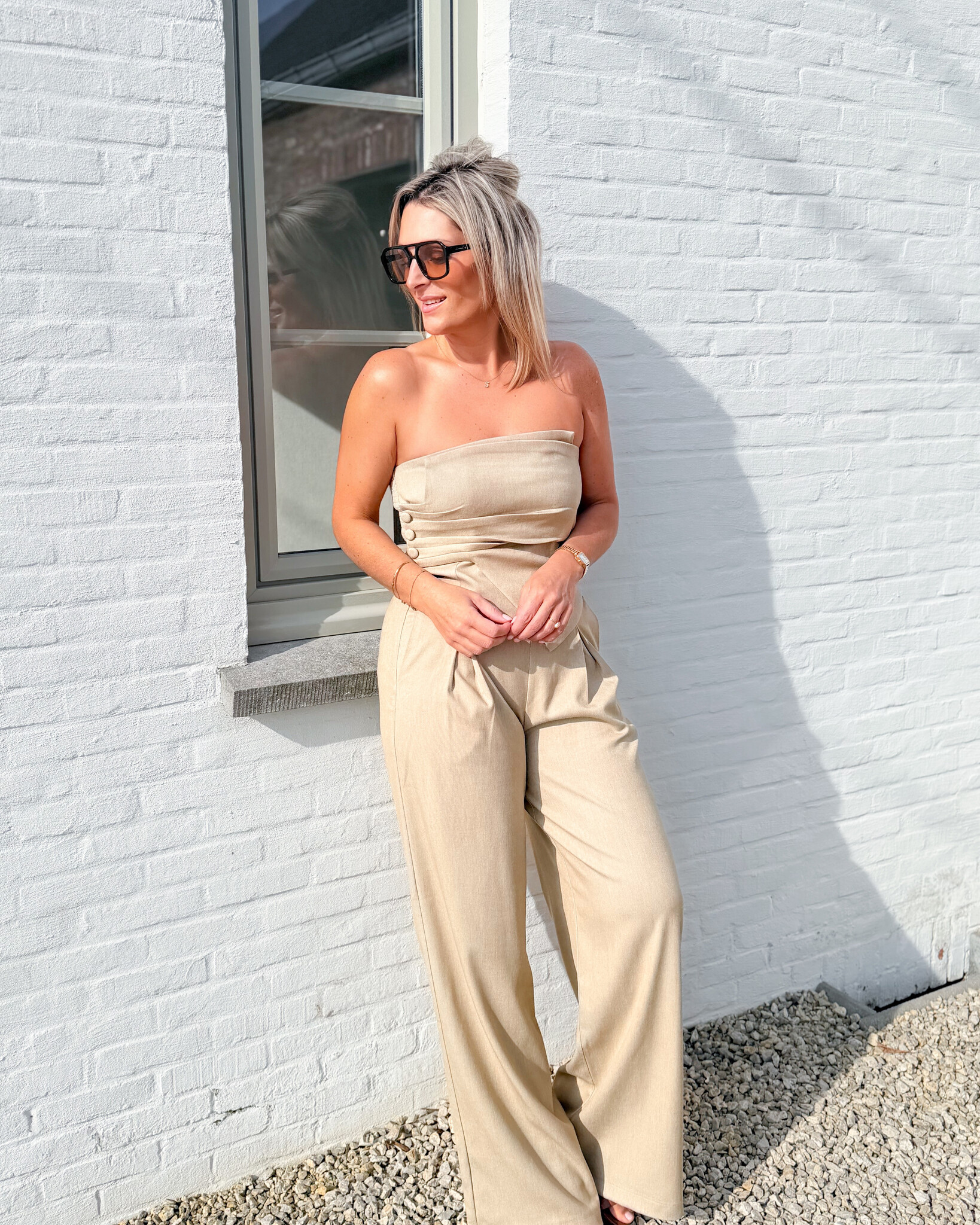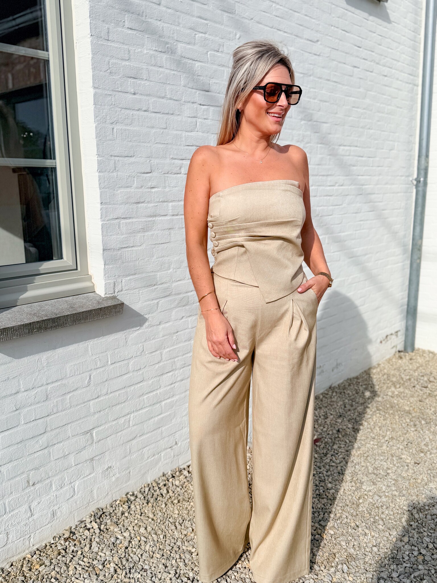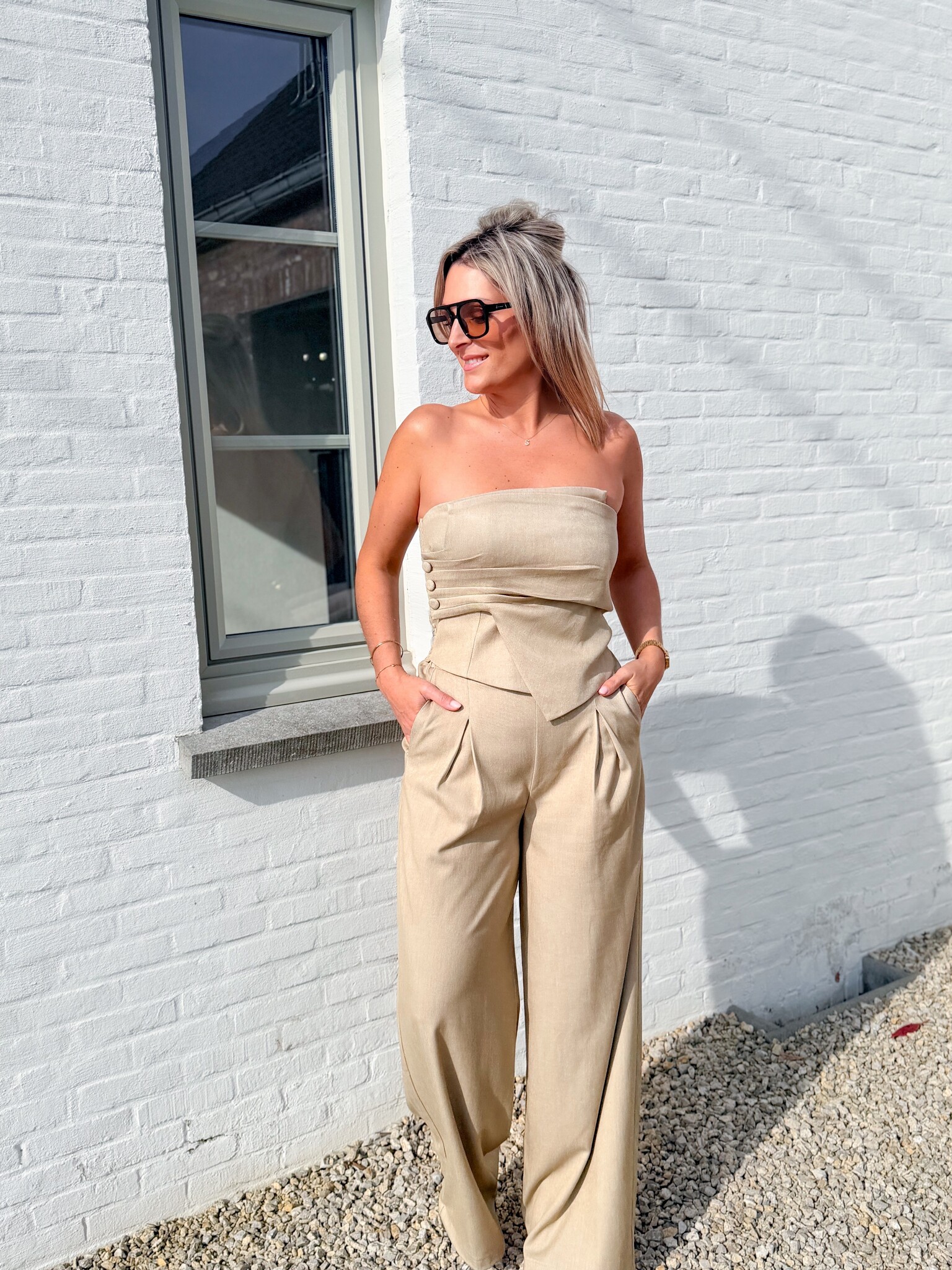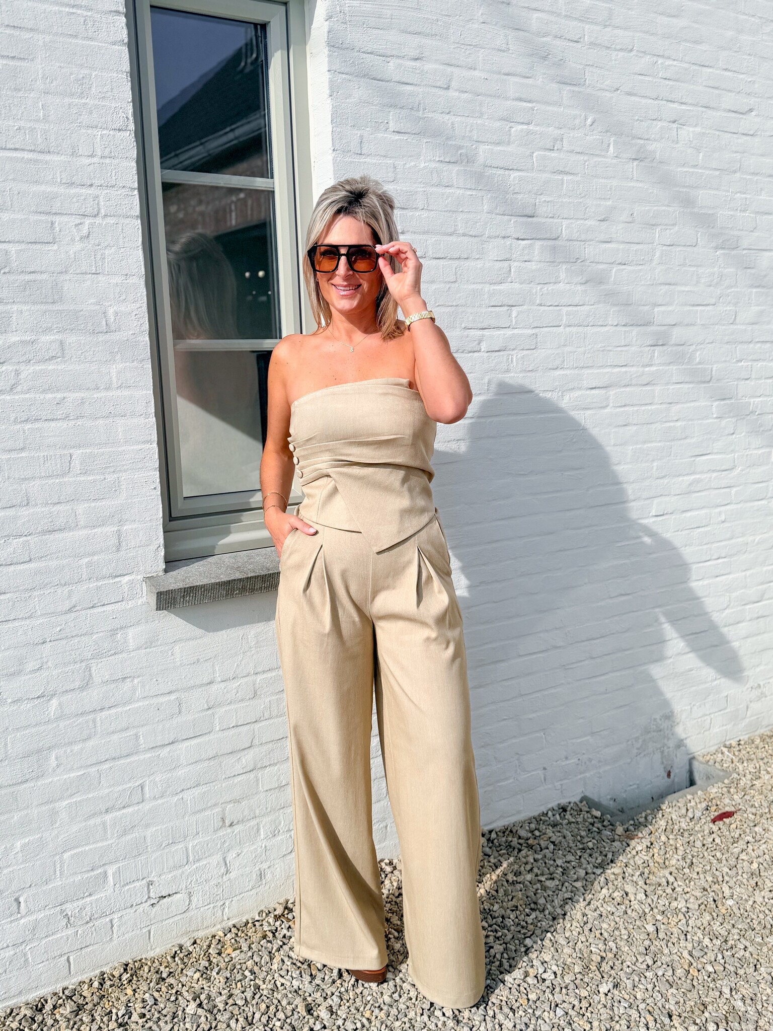 Add to wishlistThe clay wide olive €45,00 Size: *S/36M/38L/40Login for wishlistDescriptionElegant tailored trousers with an elastic waistband, subtle pleats, and no button closure for a clean finish. Comfortable and refined, perfect for a polished look. The model is 1.62 m tall and wears size S/36. Fits true to size.
