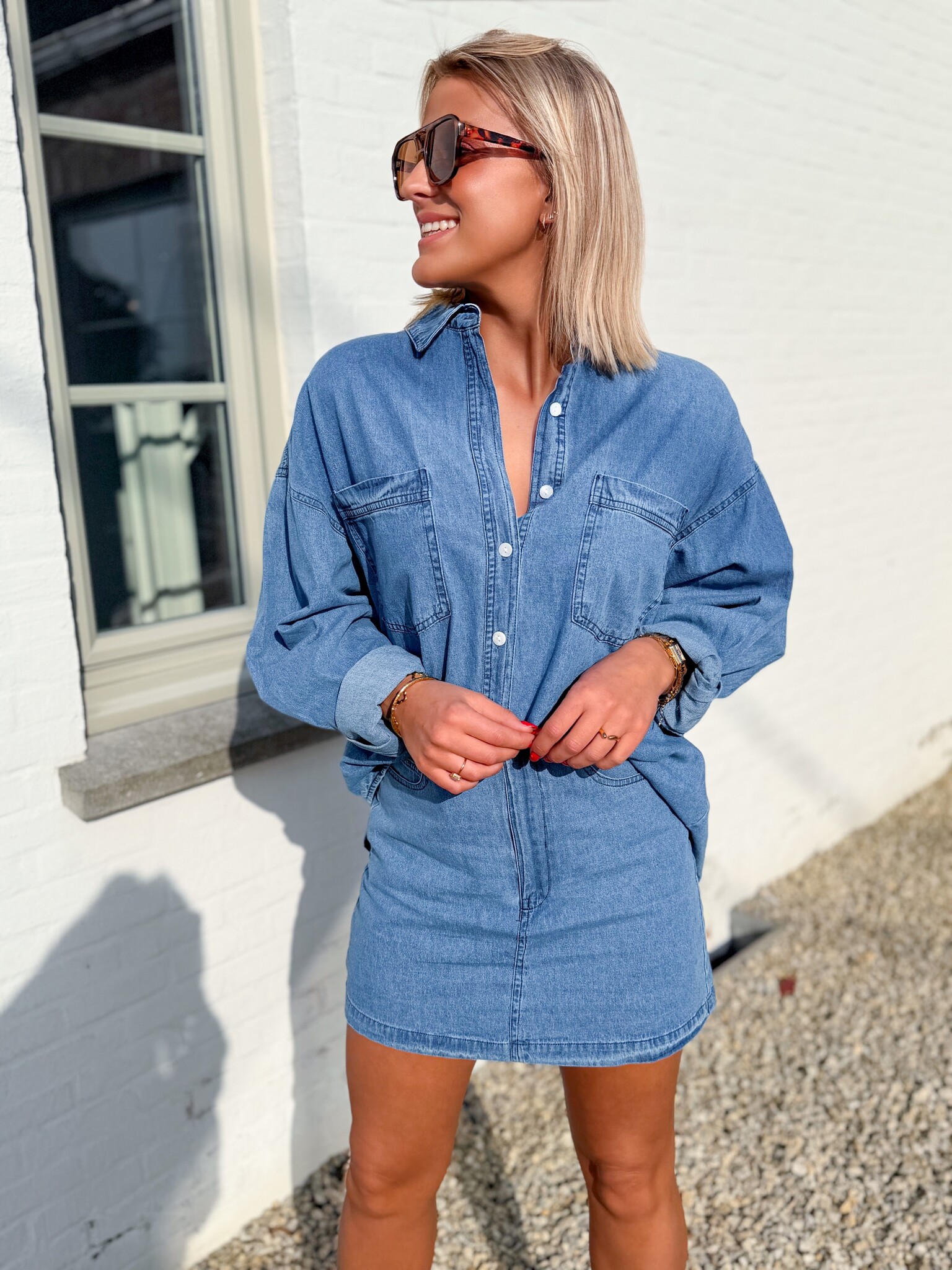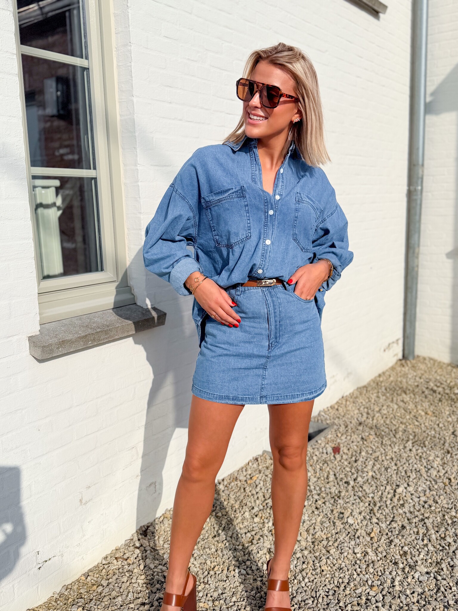 Add to wishlistThe denim duo skirt €39,99 Size: *SMLAdd to cartLogin for wishlistPay directDescriptionShort, stylish denim skirt with a flattering fit. Falls on the shorter side. The model is 1.62 m tall and wears size S.