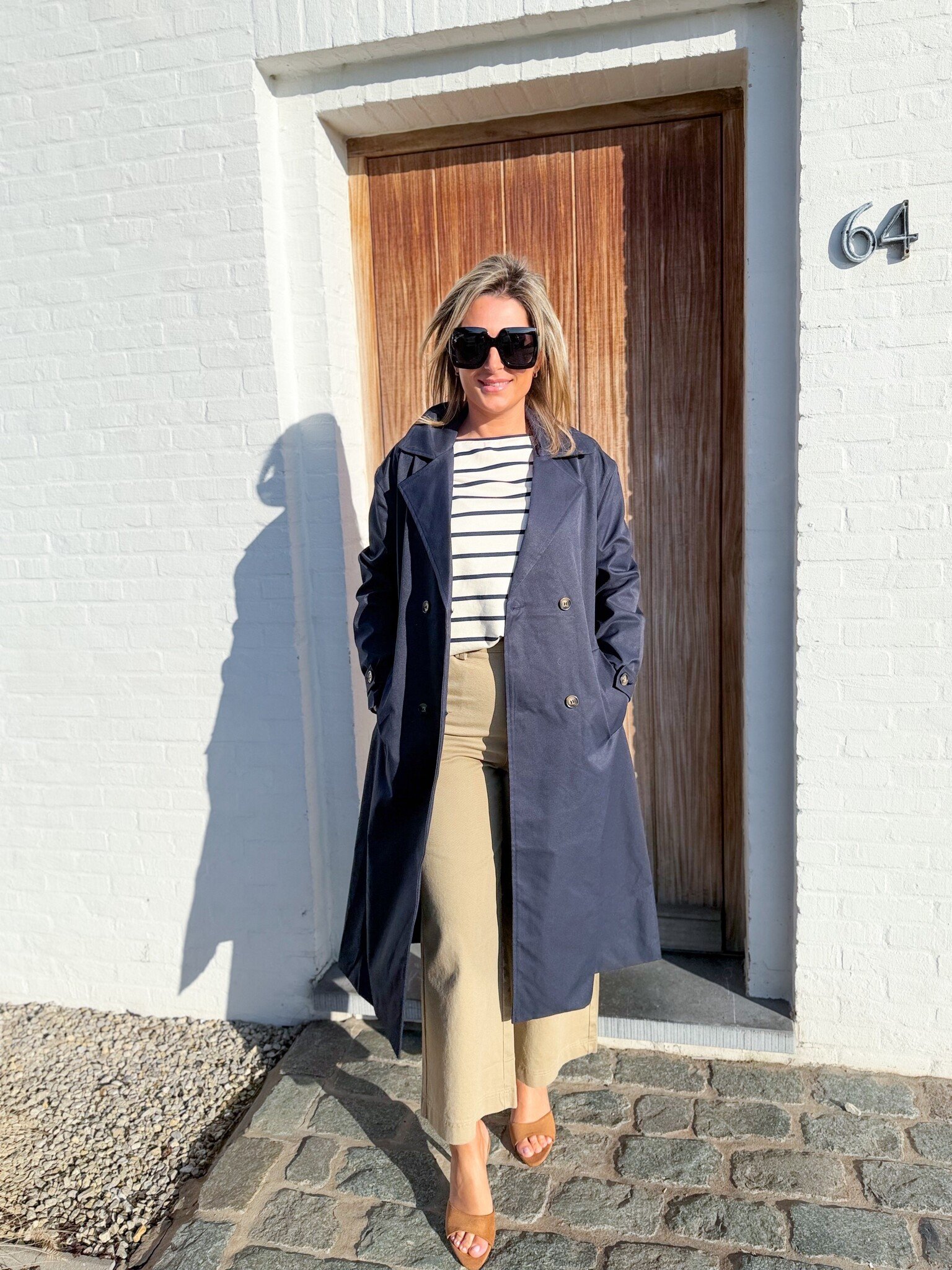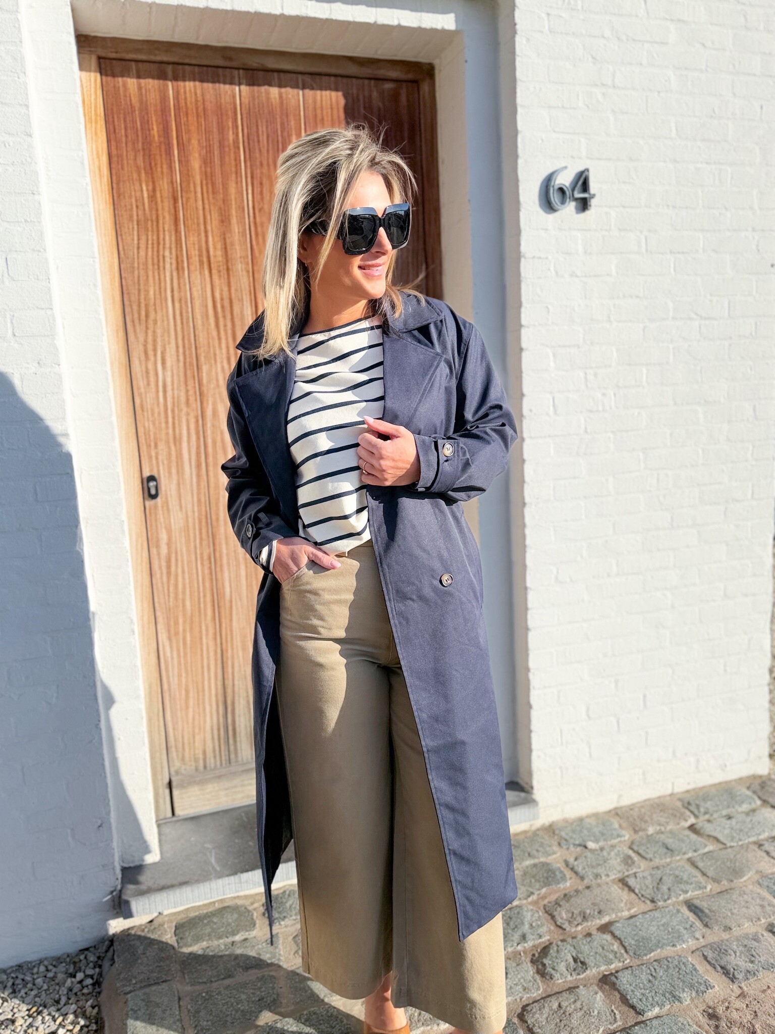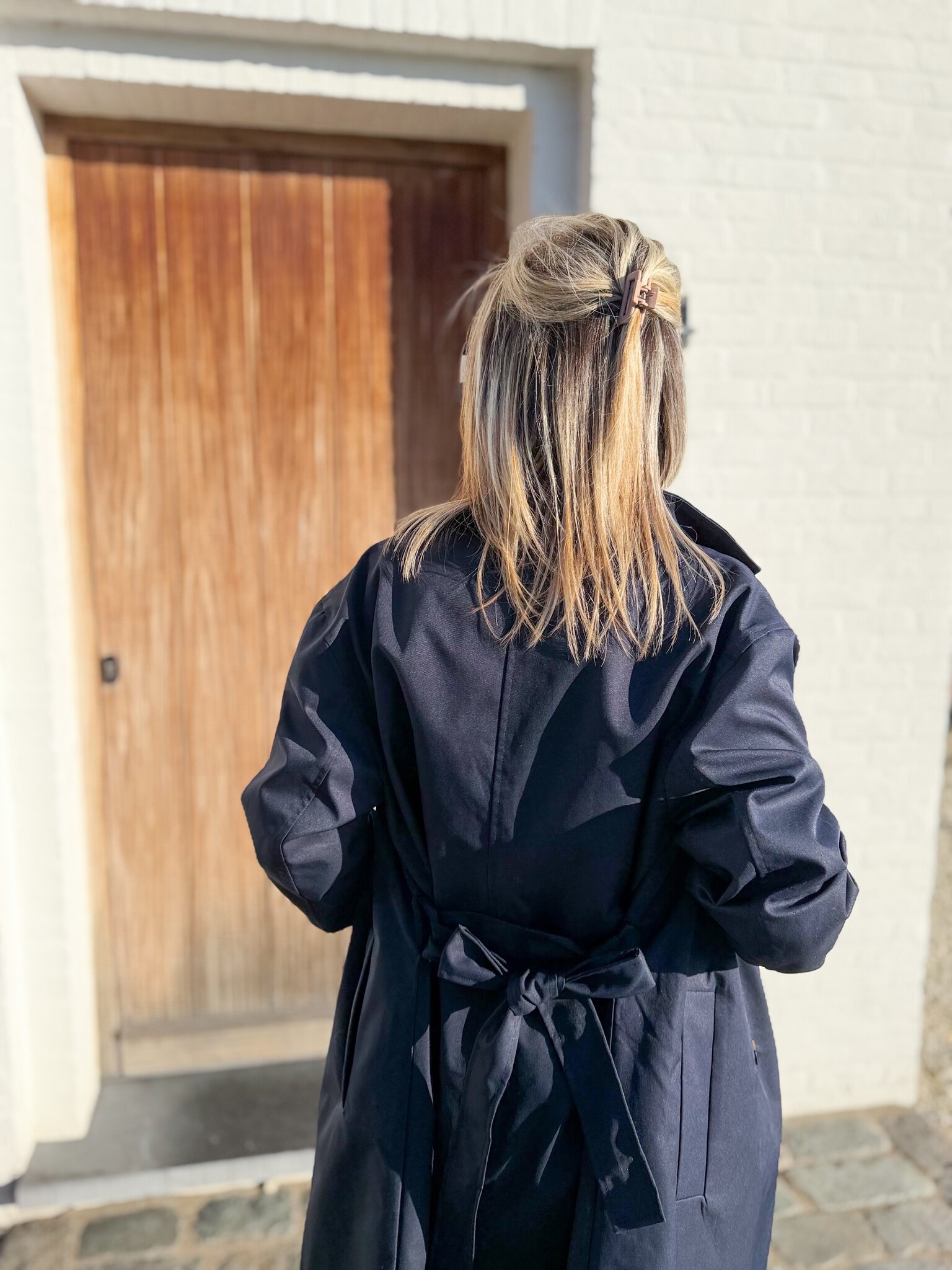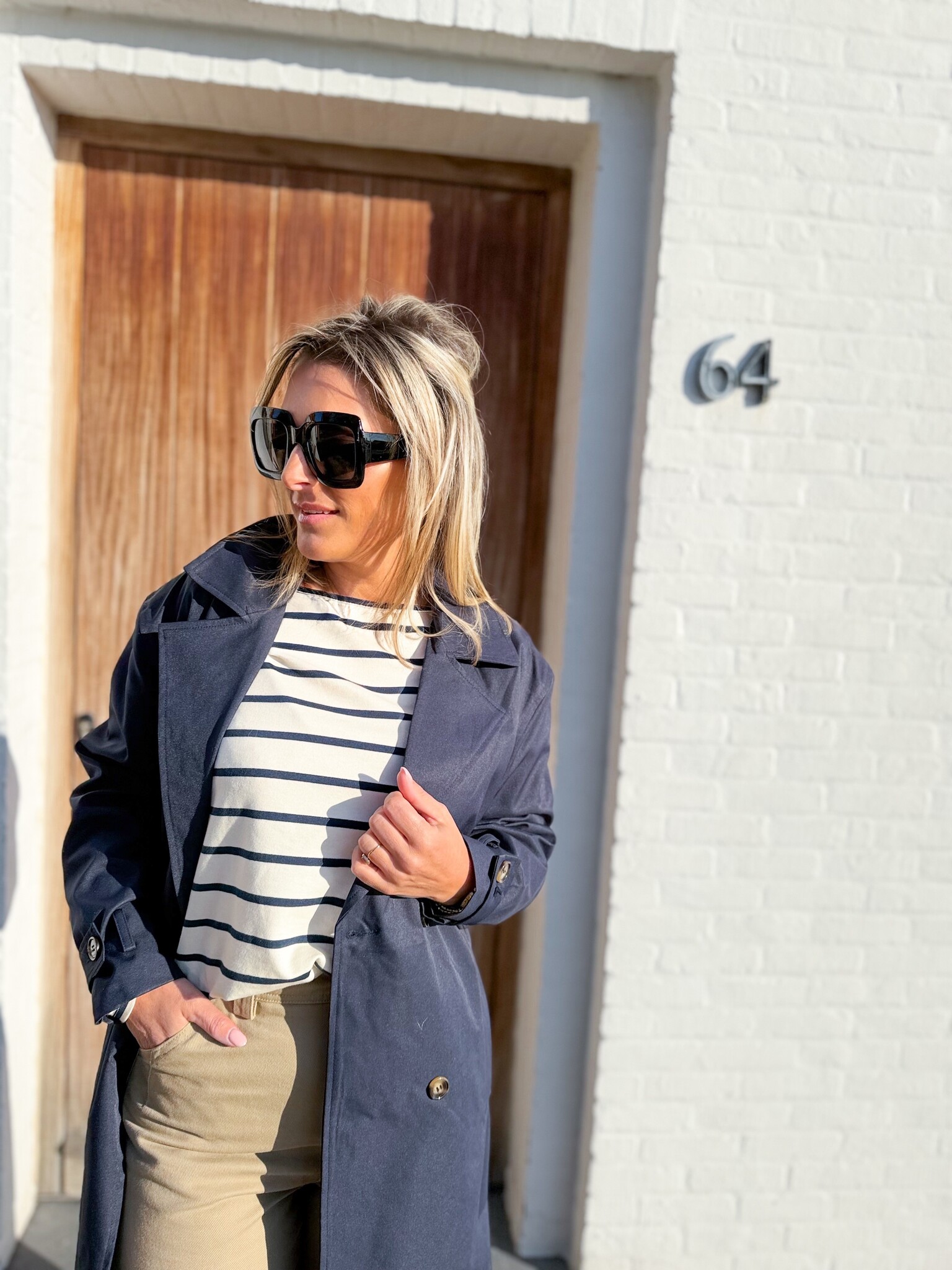 Add to wishlistThe London coat €79,99 Size: *SMMLAdd to cartLogin for wishlistPay directFree shipping From €75,-DescriptionLong, tailored navy coat with an elegant look, featuring a belt to beautifully accentuate the waist. Wear it open for a relaxed look or tied for a refined touch. Model is 1.62m and wears size S/M.