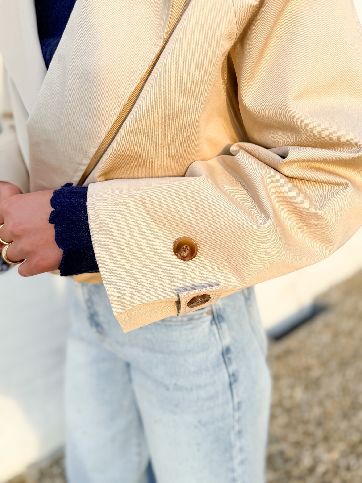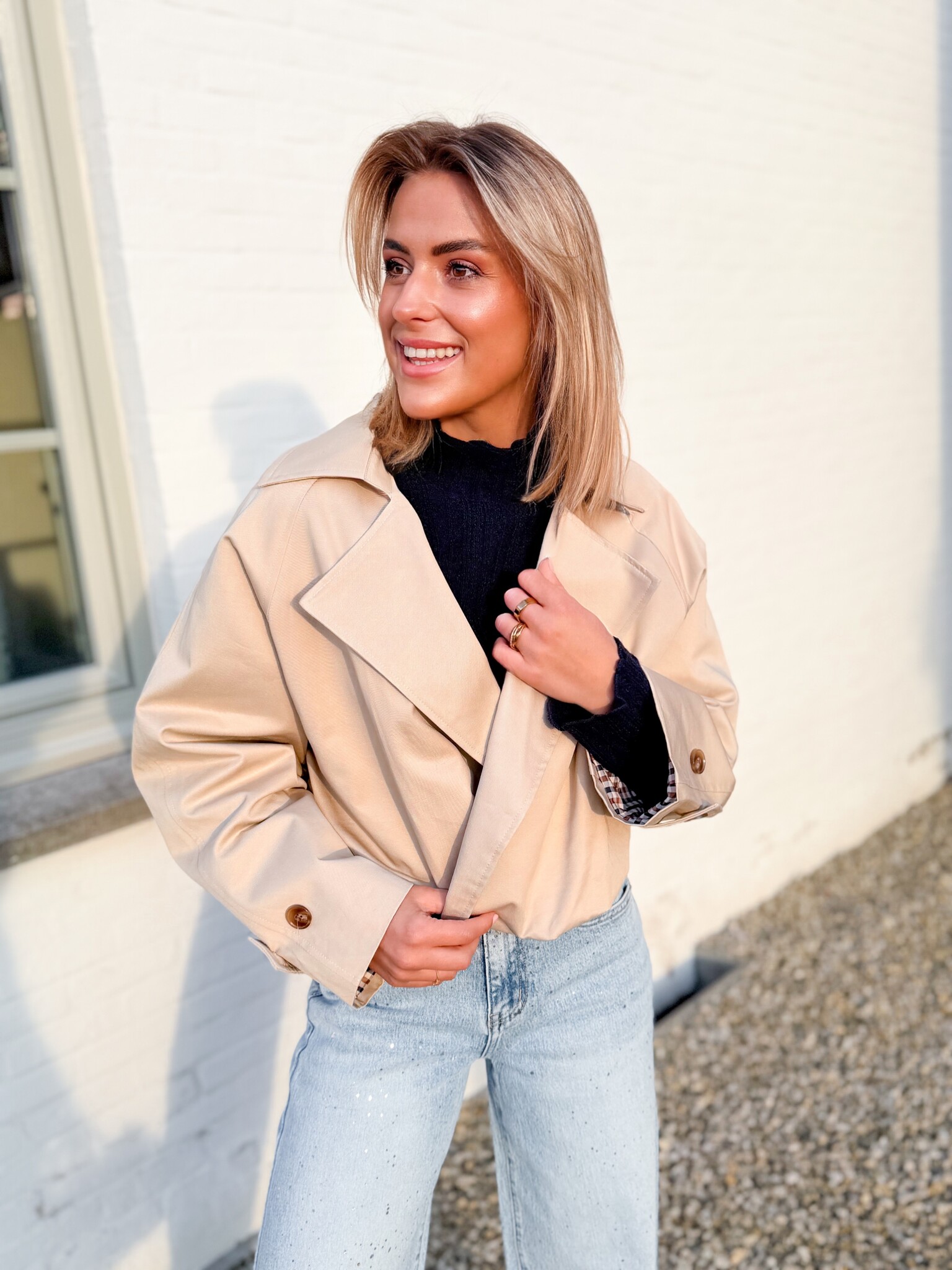 Aan verlanglijst toevoegenBastion jacket €79,99 Size: *SMLToevoegen aan winkelwagenInloggen voor wishlistDirect betalenGratis verzending Vanaf €75,-BeschrijvingBeige korte regenjas met knoopjes en een kraagje. De leuke geruite voering geeft een speelse touch. Praktisch én stijlvol. De jas valt normaal van maat. Model is 1.62 m. model draagt maat S.