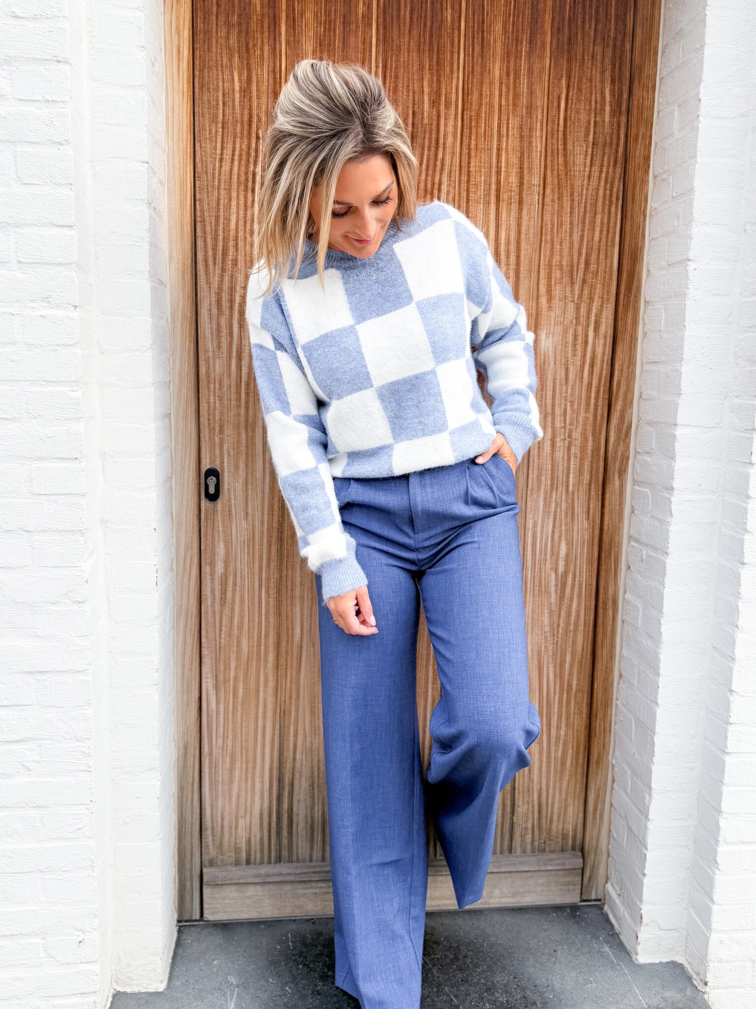 Aan verlanglijst toevoegenBlue Checkmate pull €44,99 Toevoegen aan winkelwagenInloggen voor wishlistDirect betalenGratis verzending Vanaf €75,-BeschrijvingPull met ‘Checkmate’ in blauw en wit, een stijlvolle en comfortabele musthave voor je casual garderobe. Model is 1.65m. Valt goed van maat S tot maat L.
