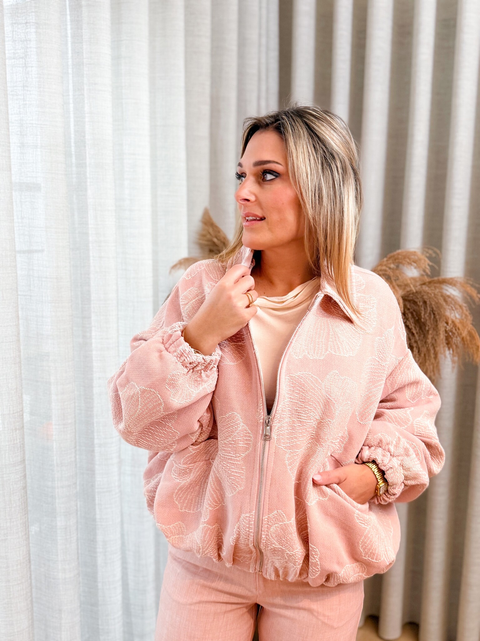 Aan verlanglijst toevoegenBotanic Bomber Rose €94,99 Toevoegen aan winkelwagenInloggen voor wishlistDirect betalenGratis verzending Vanaf €75,-BeschrijvingBomberjasje met geborduurde bloemen, voor een speelse en stijlvolle touch. Model is 1.65m en valt goed tot maat L.