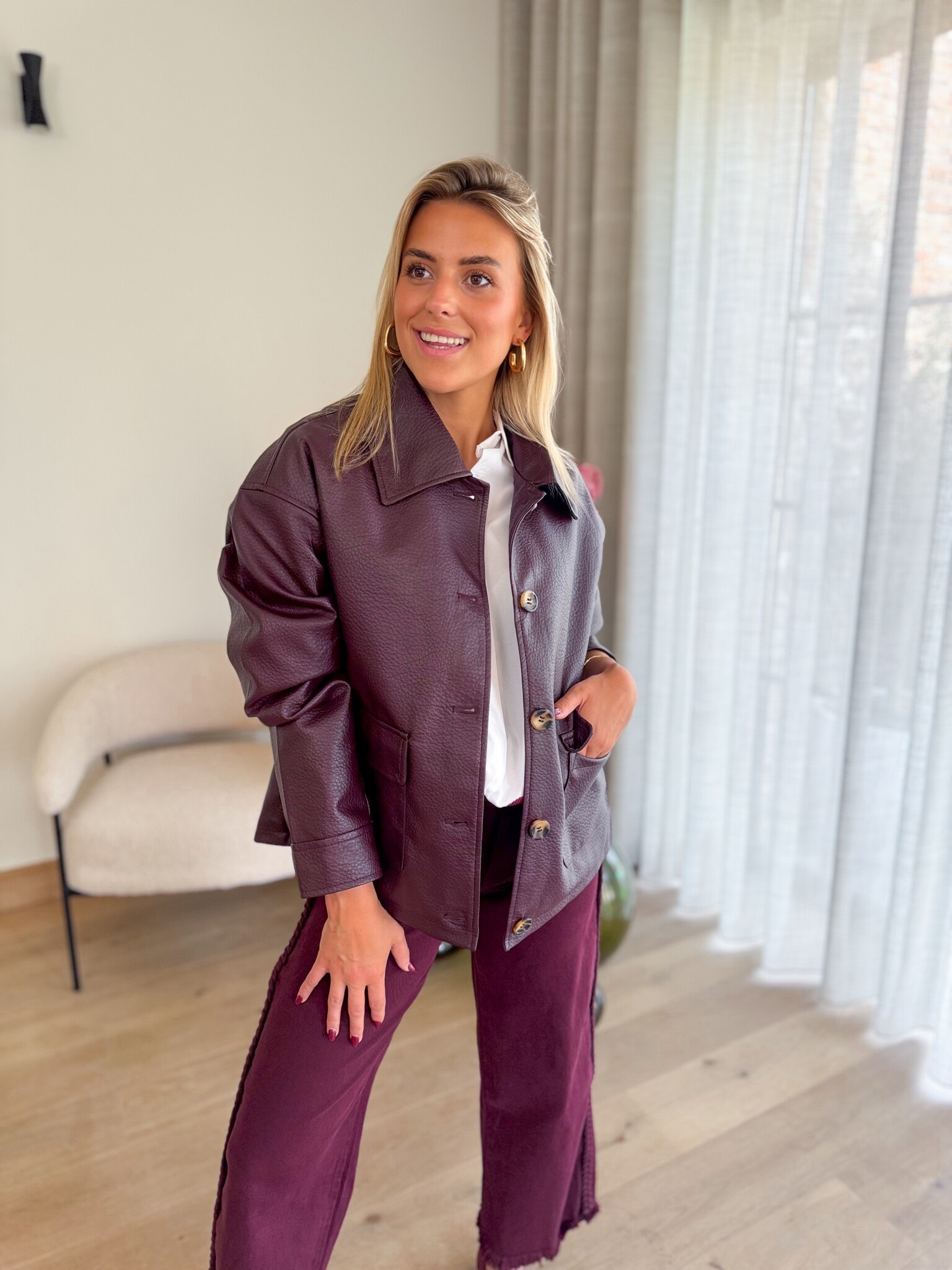 Aan verlanglijst toevoegenBraided jeans burgundy €44,99 Size: *XS/34S/36M/38L/40XL/42Toevoegen aan winkelwagenInloggen voor wishlistDirect betalenGratis verzending Vanaf €75,-BeschrijvingTrendy burgundy jeans met vlecht aan de zijkant. Cropped wide leg model met comfortabele stretch. Valt normaal op maat en combineert moeiteloos met elke outfit. Een echte must-have! Model op foto is 1.62M ze vallen normaal van maat.