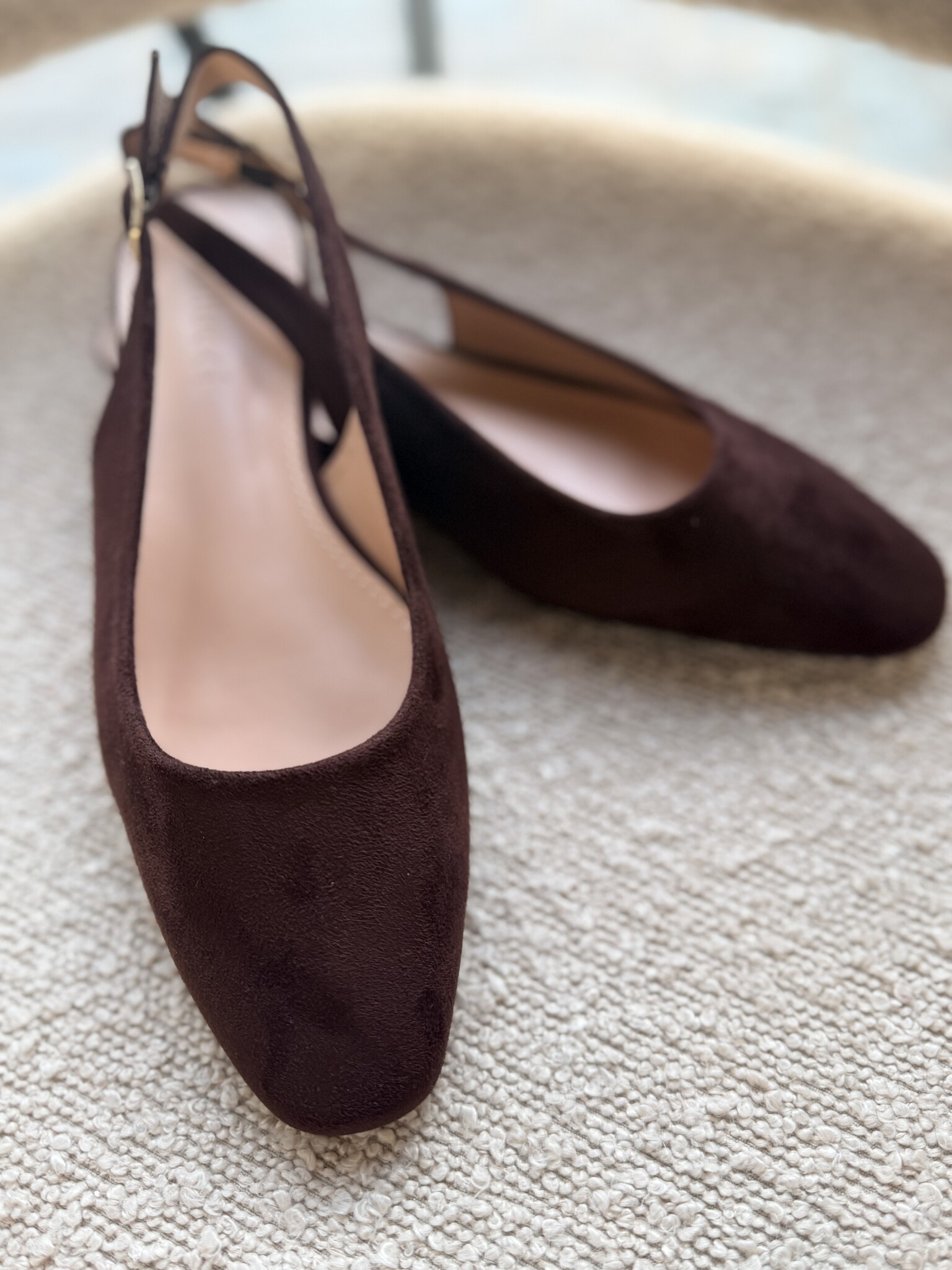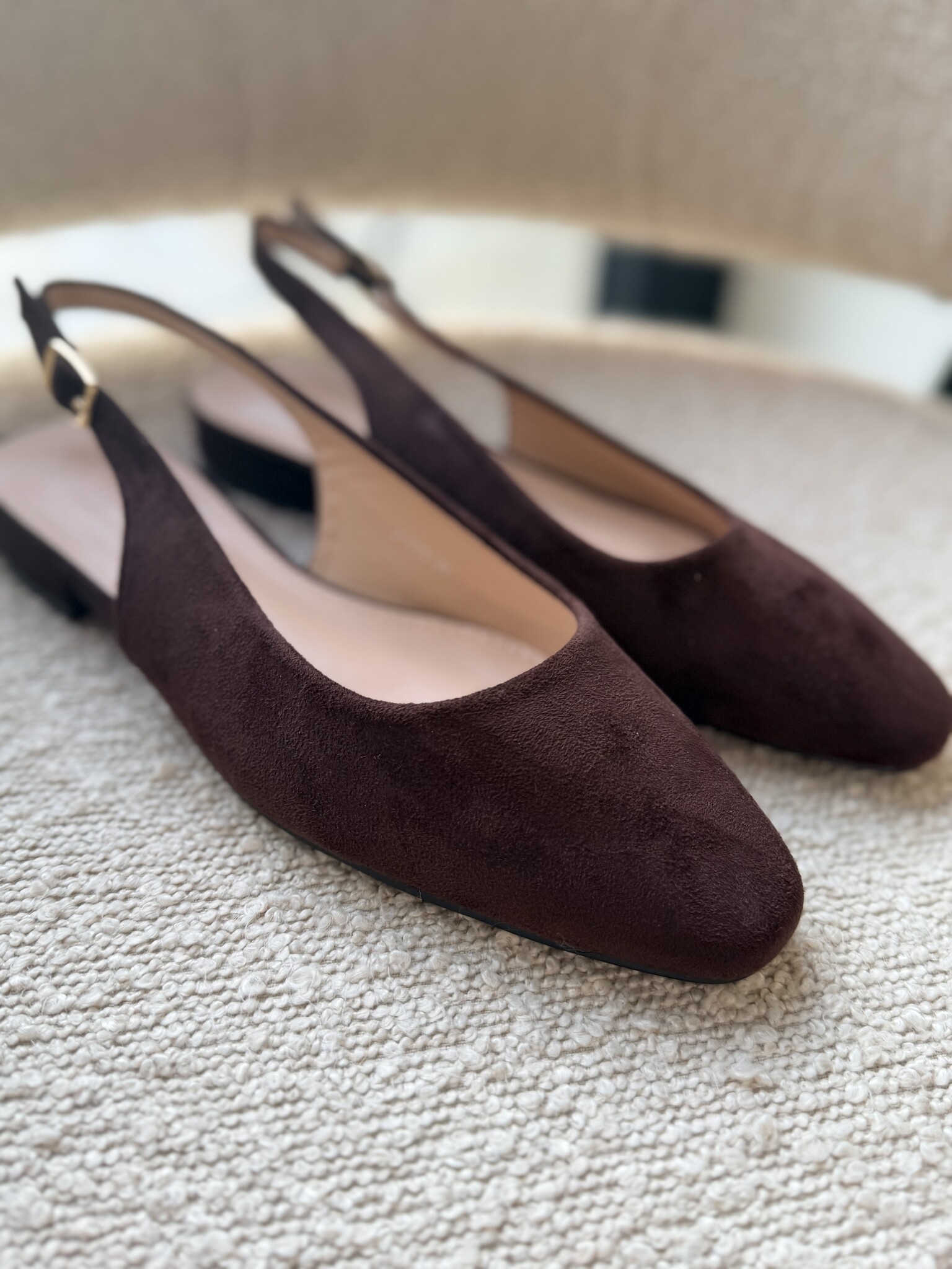 Aan verlanglijst toevoegenBrown slingback €29,99 Size: *363738394041Toevoegen aan winkelwagenInloggen voor wishlistDirect betalenGratis verzending Vanaf €75,-BeschrijvingBruine suede slingbacks. Perfect om je look een zachte, romantische touch te geven, van casual tot chique. Valt normaal op maat.