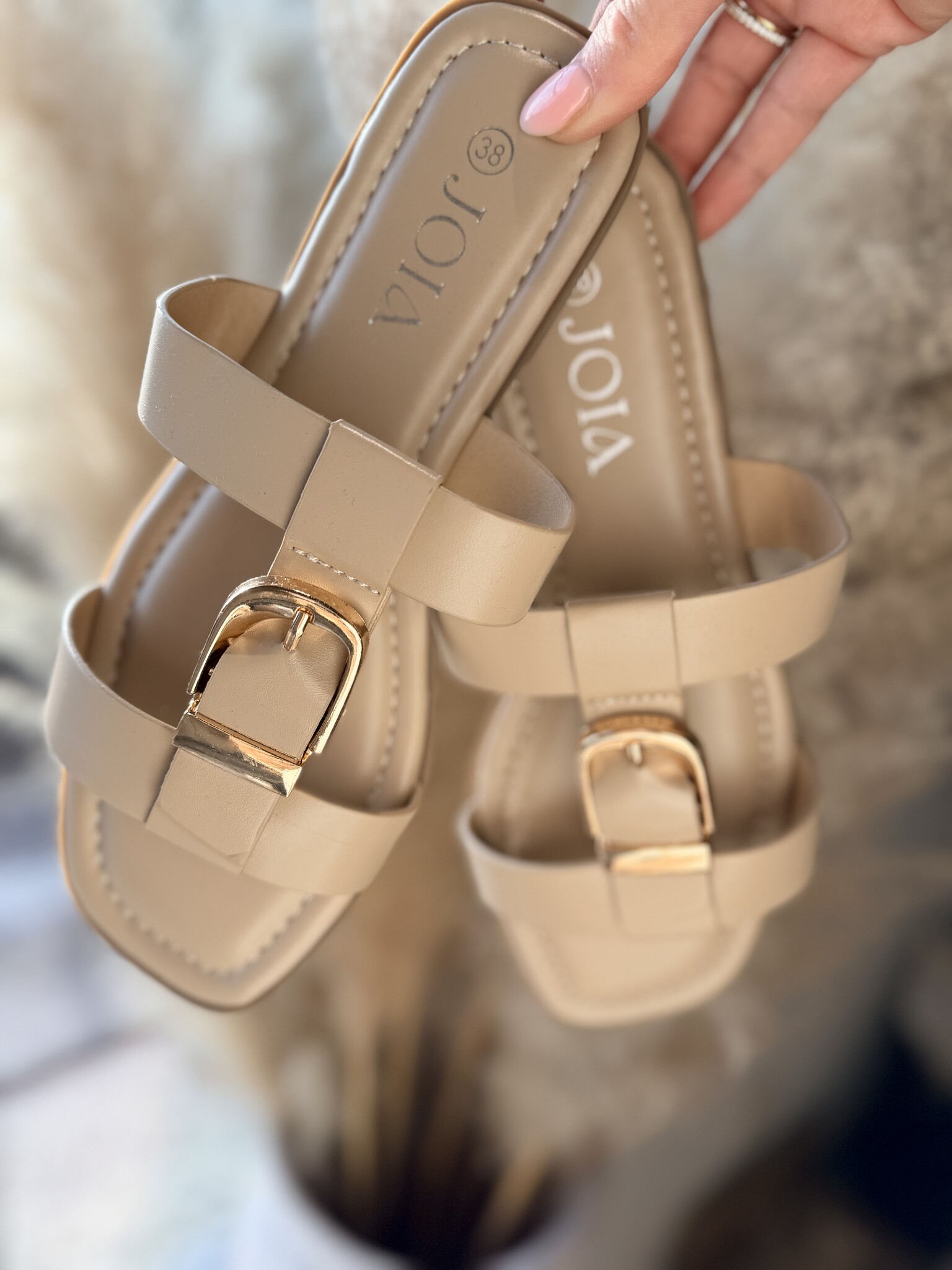 Aan verlanglijst toevoegenBuckle steps nude €24,99 Size: *363738394041Toevoegen aan winkelwagenInloggen voor wishlistDirect betalenGratis verzending Vanaf €75,-BeschrijvingBeige instap-slippers met een gesp, stijlvol met een goud detail. Comfortabel en makkelijk te dragen. Valt op maat.