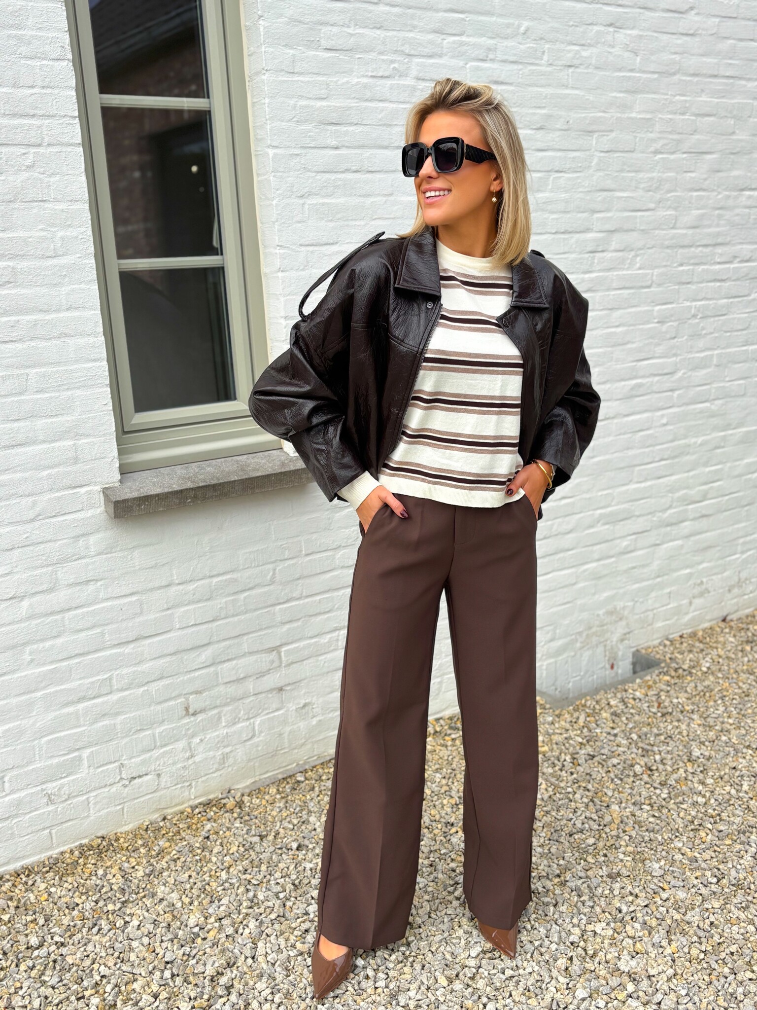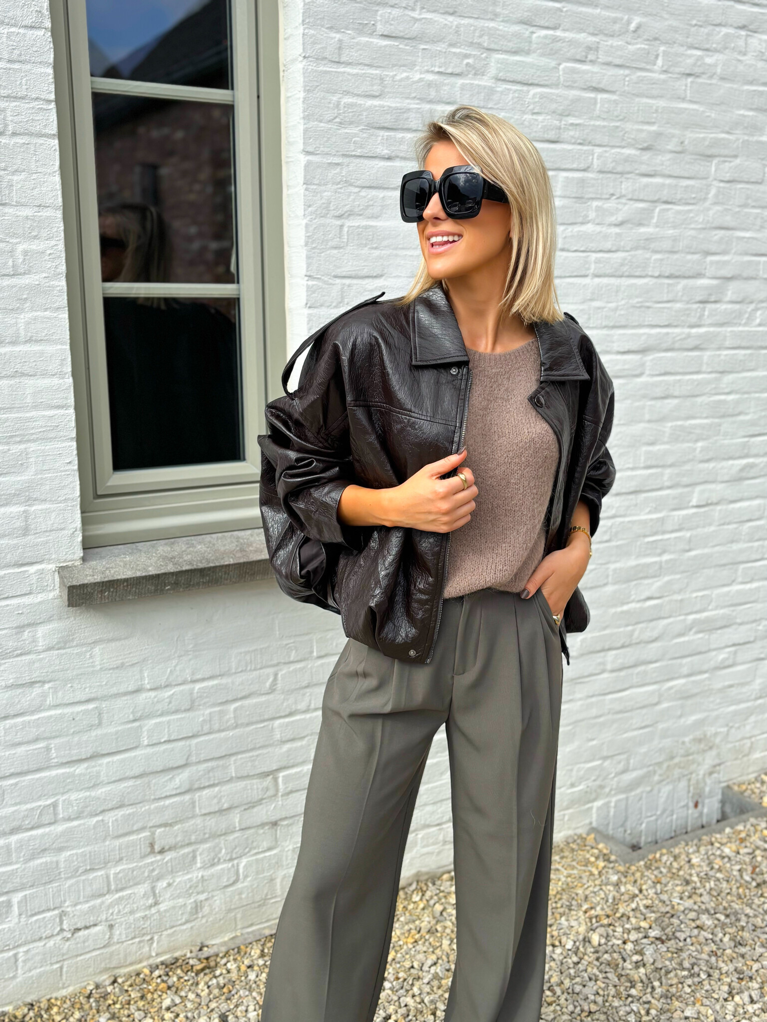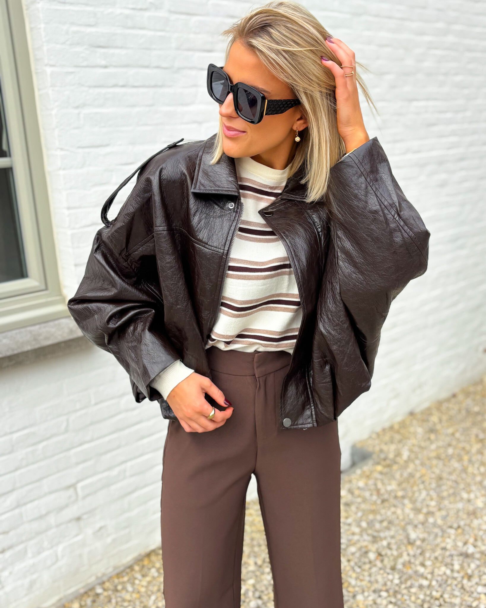 Aan verlanglijst toevoegenCitytrip jacket brown €79,99 Size: *S/MM/LToevoegen aan winkelwagenInloggen voor wishlistDirect betalenGratis verzending Vanaf €75,-BeschrijvingLederlook jasje met een stoere, oversized pasvorm. Dé perfecte finishing touch voor elke outfit. Model is 1.62m en draagt maar S/M.