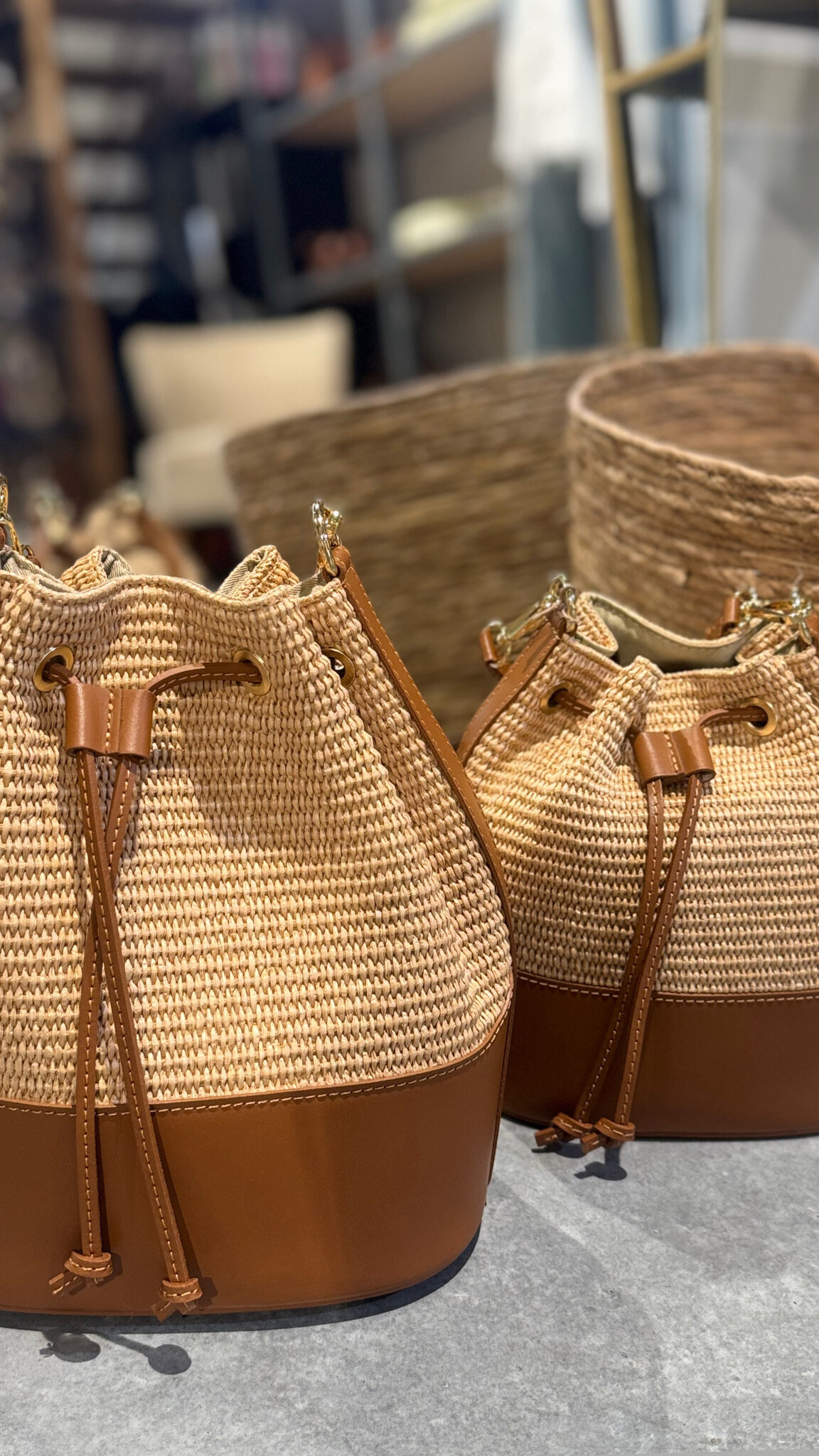 Aan verlanglijst toevoegenCoastal bag €74,99 Toevoegen aan winkelwagenInloggen voor wishlistDirect betalenGratis verzending Vanaf €75,-BeschrijvingStijlvolle bucket bag met natuurlijke geweven look en cognackleurige leren details. Voorzien van trekkoordsluiting en elegant handvat.