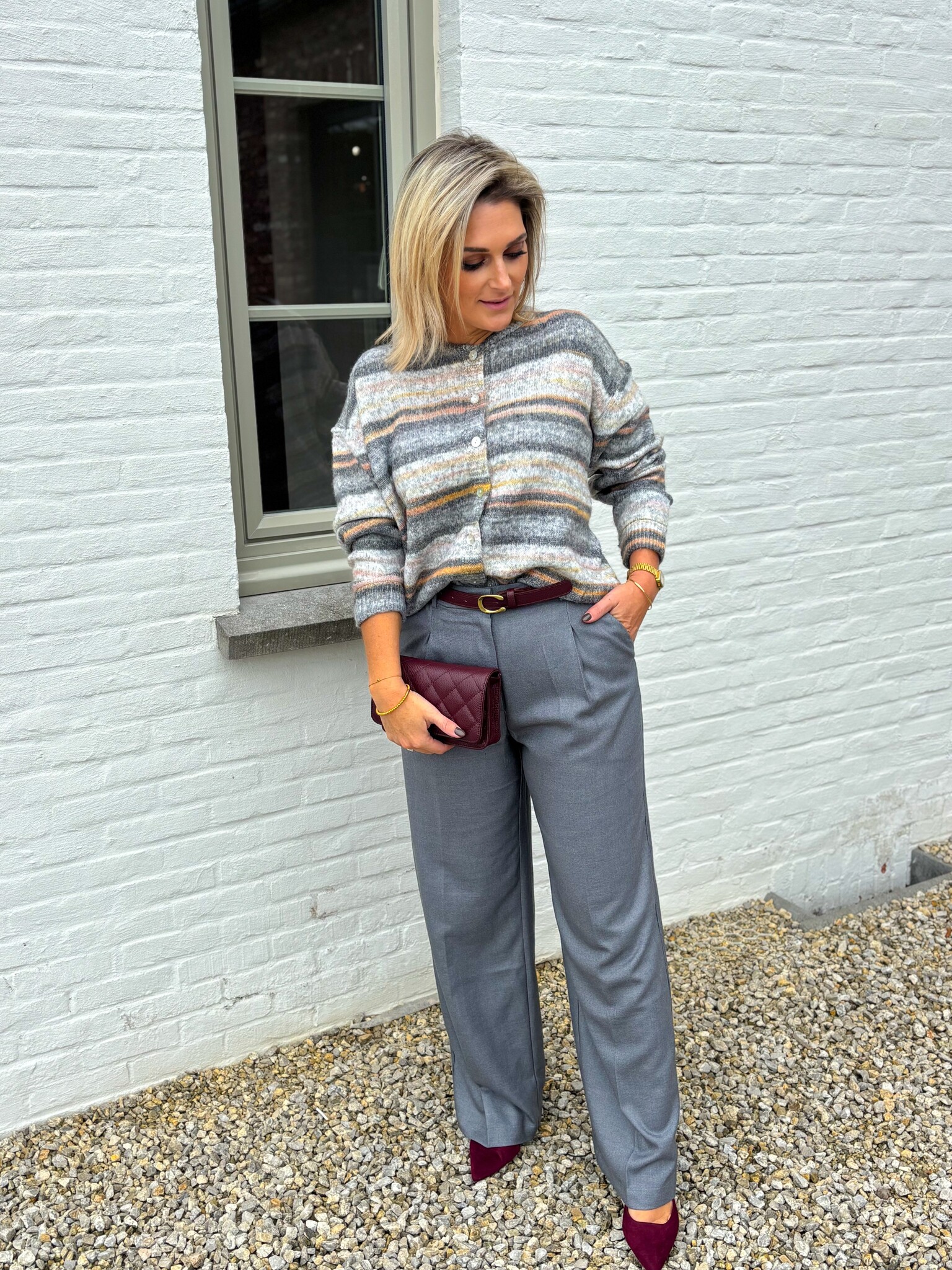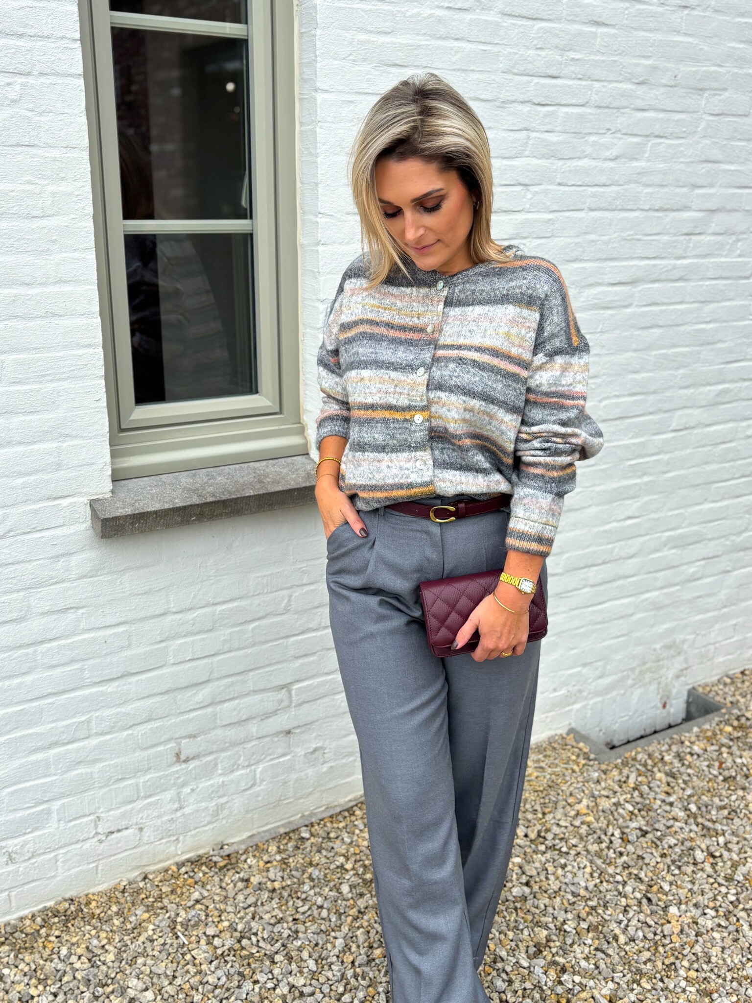 Aan verlanglijst toevoegenCozy by the fireplace Grey €49,99 Toevoegen aan winkelwagenInloggen voor wishlistDirect betalenGratis verzending Vanaf €75,-BeschrijvingTrui met strepen, 8% wol, maar zacht en prikt niet. Comfortabel en stijlvol. Het model is 1,62 m.