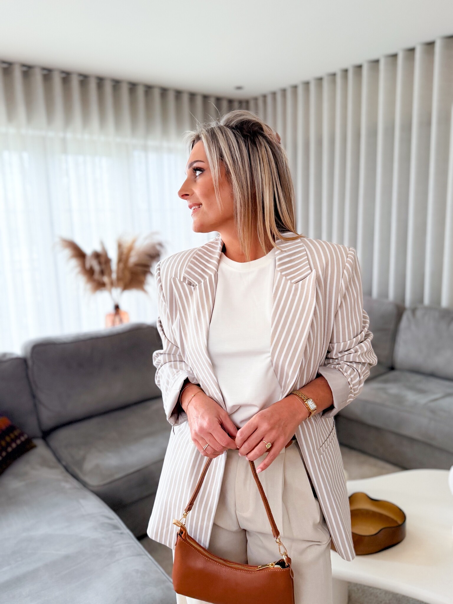 Aan verlanglijst toevoegenDune love blazer €79,99 Size: *SMLToevoegen aan winkelwagenInloggen voor wishlistDirect betalenGratis verzending Vanaf €75,-BeschrijvingStijlvolle blazer in beige met witte strepen, ontworpen voor een elegante en modieuze uitstraling. Een veelzijdig stuk dat je look meteen een stijlvolle, onweerstaanbare flair geeft. Model is 1.62m en draagt maat S.