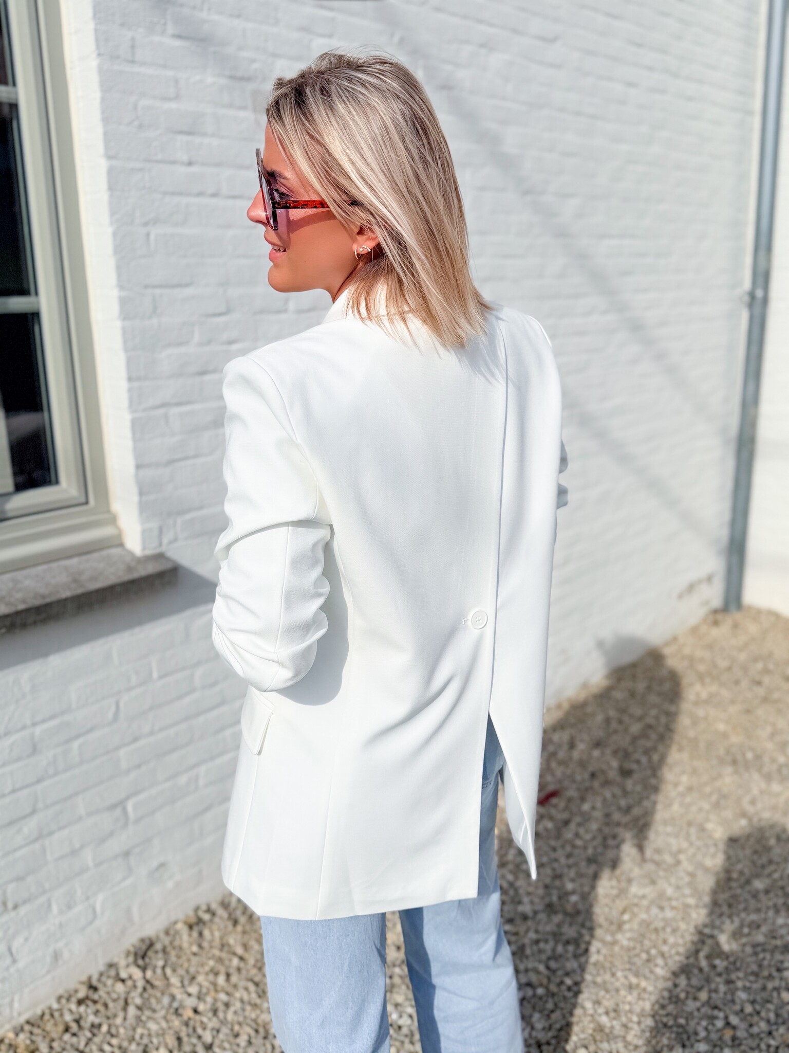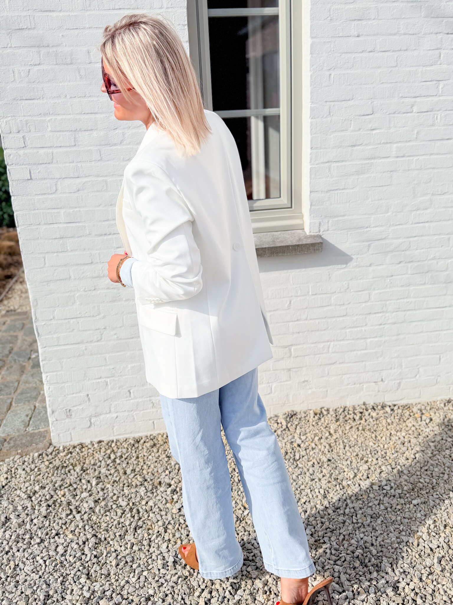 Aan verlanglijst toevoegenÉlane blazer ecru €84,99 Size: *SMLXLToevoegen aan winkelwagenInloggen voor wishlistDirect betalenBeschrijvingStijlvolle blazer. Valt op maat en heeft een subtiele knoopdetail aan de achterkant voor een speelse touch. Perfect casual chic te combineren. Model is 1m62.