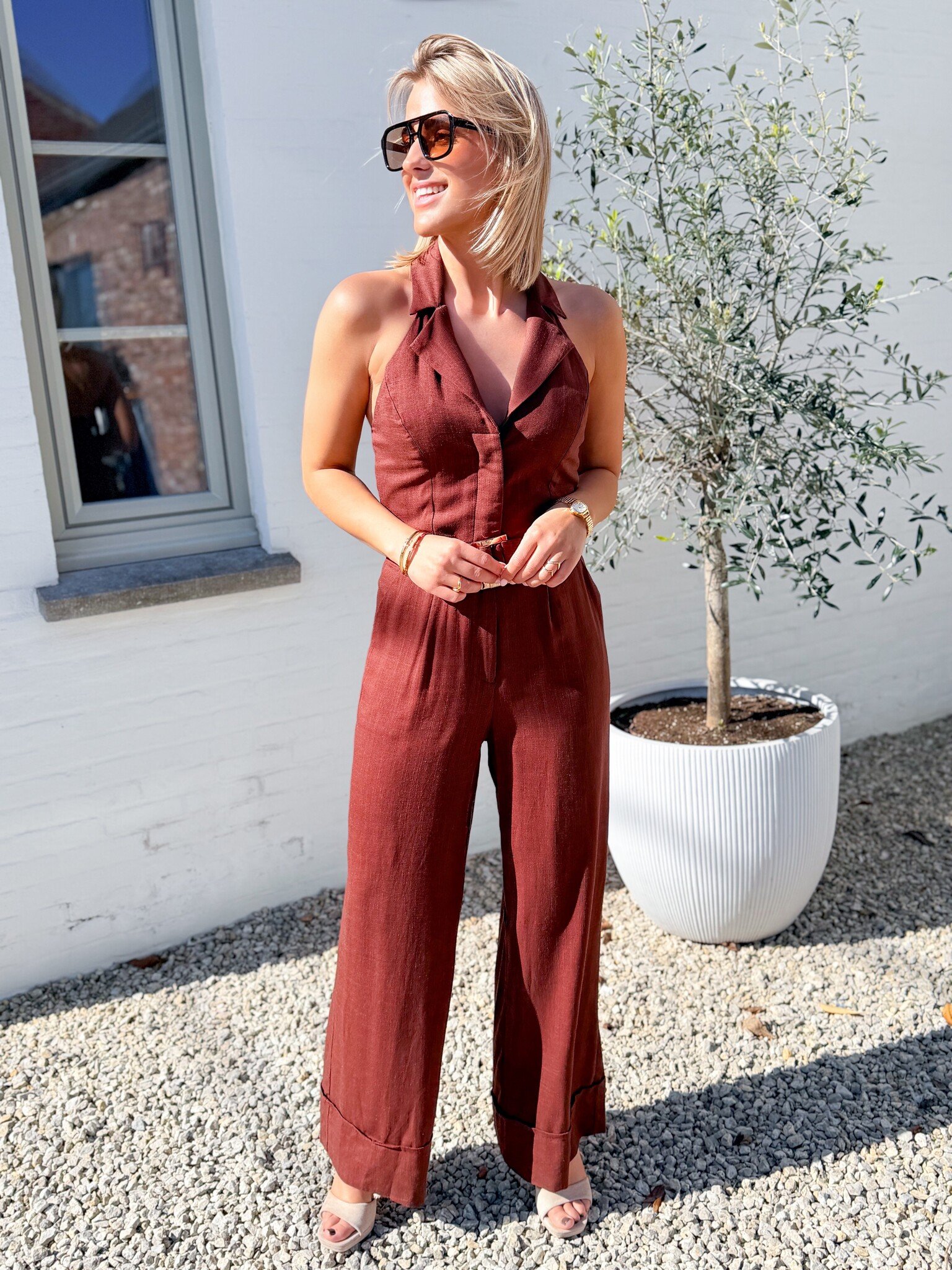 Aan verlanglijst toevoegenElix belted jumpsuit brown €44,99 Size: *SMLToevoegen aan winkelwagenInloggen voor wishlistDirect betalenBeschrijvingVALT KLEIN, RADEN AAN MAATJE GROTER TE NEMEN. Elegante jumpsuit met verfijnde snit en tijdloze uitstraling. Stijlvol en comfortabel, ideaal voor speciale gelegenheden of een chique, moeiteloze look.