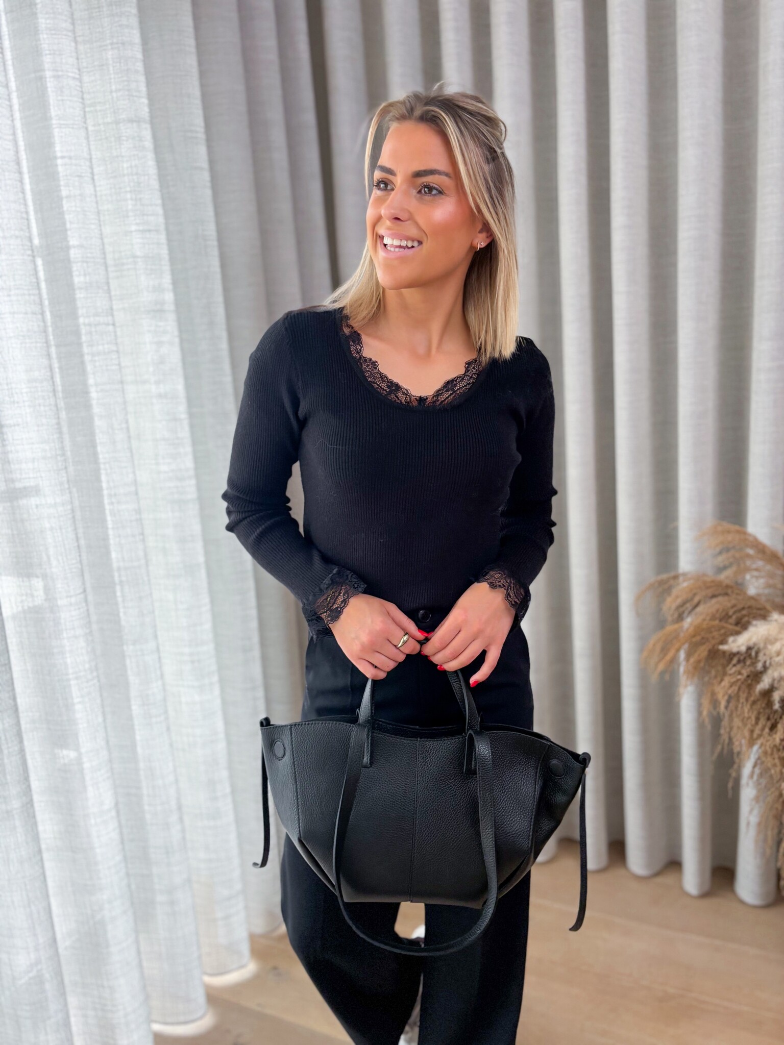 Aan verlanglijst toevoegenFinesse Lace Top Black €39,99 Size: *S/MM/LToevoegen aan winkelwagenInloggen voor wishlistDirect betalenGratis verzending Vanaf €75,-BeschrijvingAansluitende blouse met een fijn lace boordje langs hals en mouwen. Elegante afwerking en een comfortabele, flatterende pasvorm. Valt normaal van maat. Het model is 1.62 m.