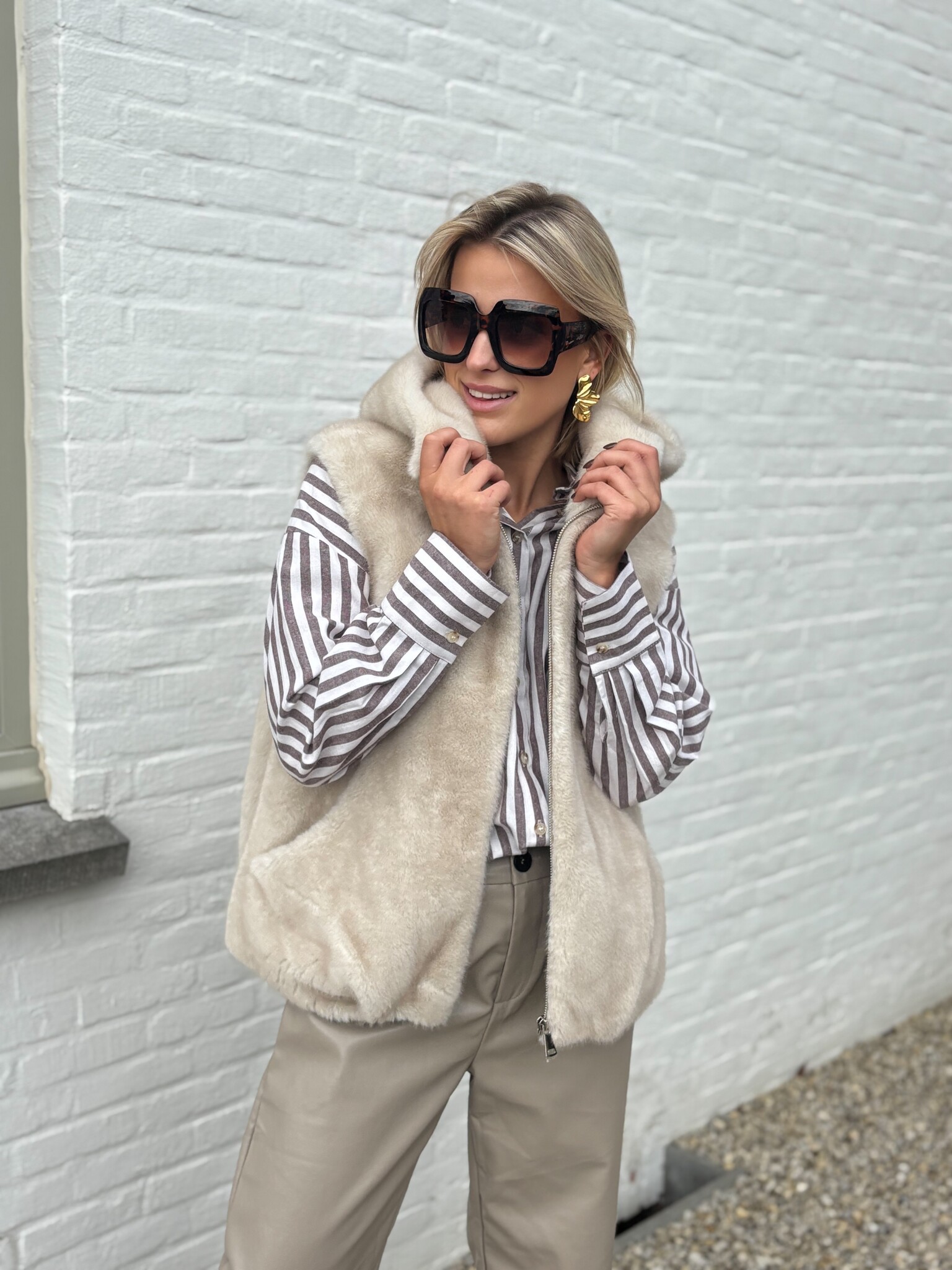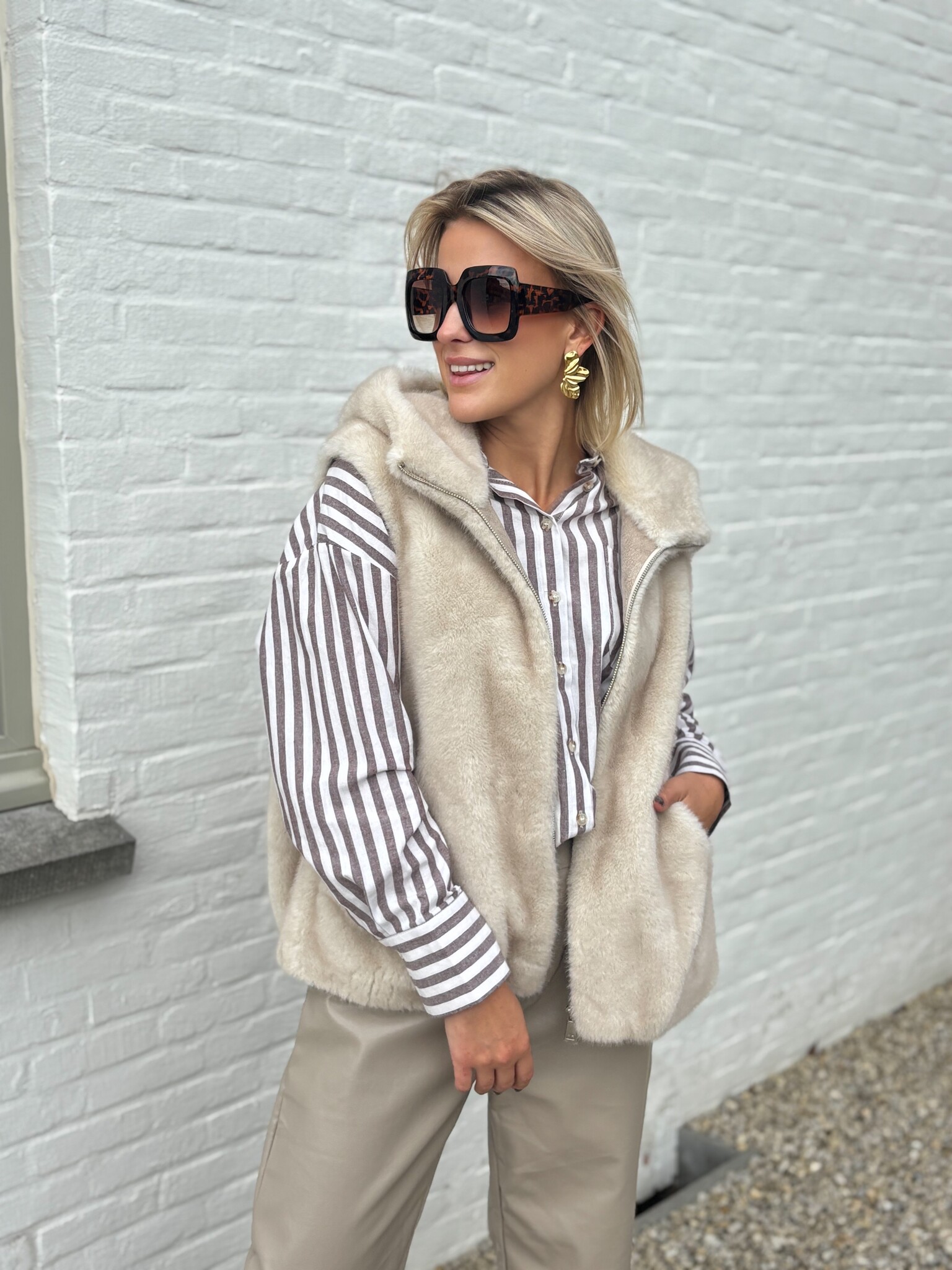 Aan verlanglijst toevoegenFur hug body beige €84,99 Size: *SMLToevoegen aan winkelwagenInloggen voor wishlistDirect betalenGratis verzending Vanaf €75,-BeschrijvingDeze beige pelse body met kap is de ultieme combinatie van comfort en stijl. Het zachte, warme materiaal houdt je lekker cosy, terwijl de kap een extra casual en trendy touch geeft. Model is maat 1.62m en draagt maat S.