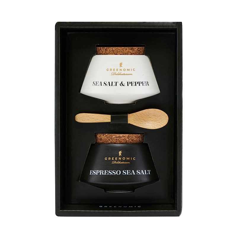 Giftset Espresso Sea salt and Sea salt & Pepper in Kleipot