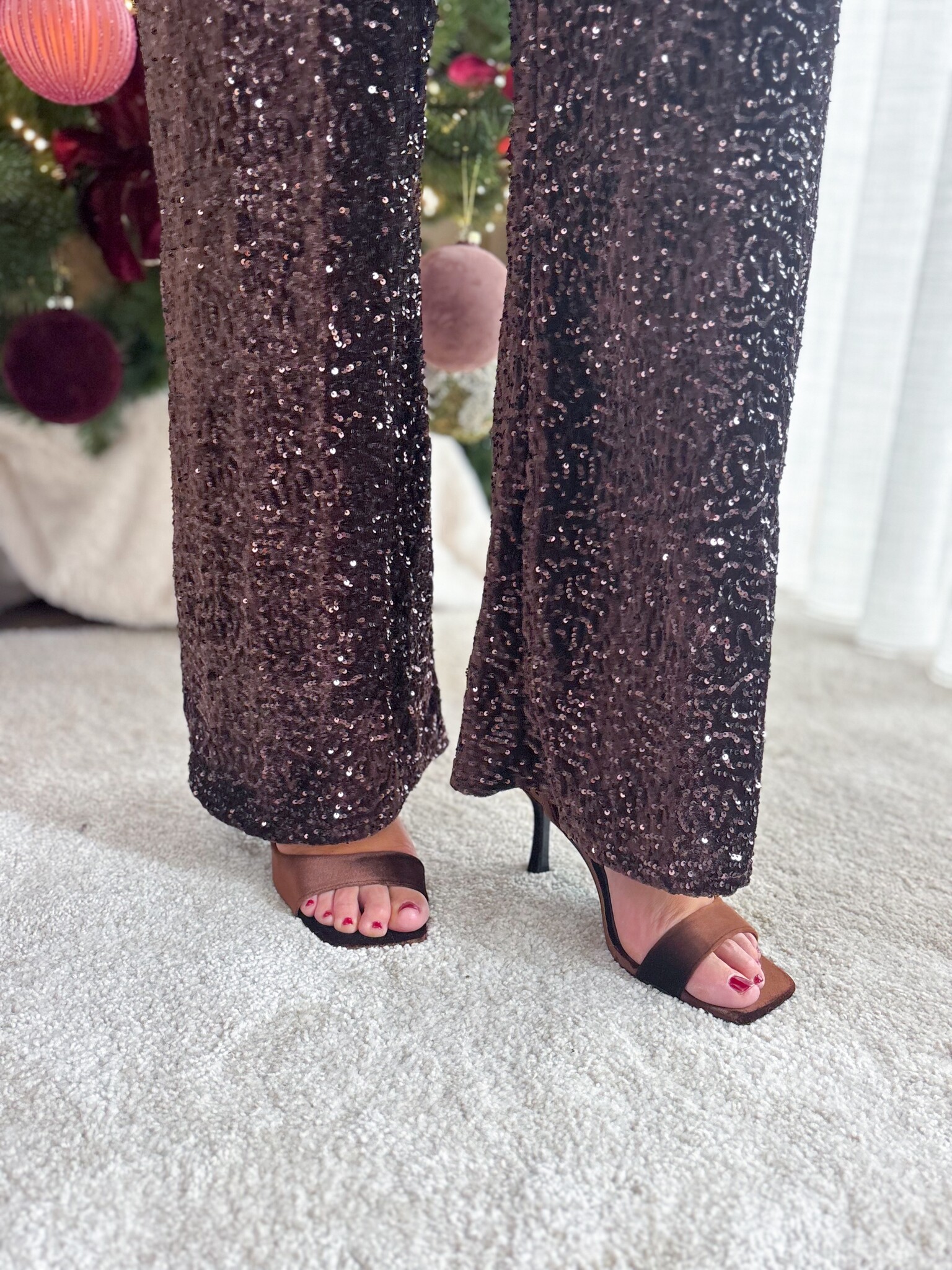 Aan verlanglijst toevoegenGlitter Glow Pants Brown €44,99 Toevoegen aan winkelwagenInloggen voor wishlistDirect betalenGratis verzending Vanaf €75,-BeschrijvingLurex broek met wide-leg en elastische taille voor comfort en stijl. One size, past goed als maat S/M. Elegant en feestelijk, perfect voor speciale gelegenheden. Het model is 1.62 m.
