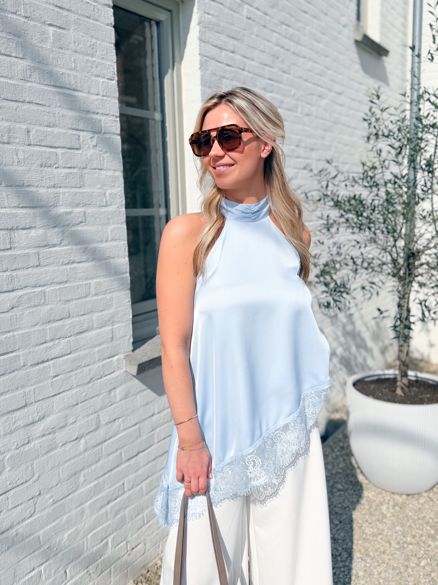 Halter satin lace blue