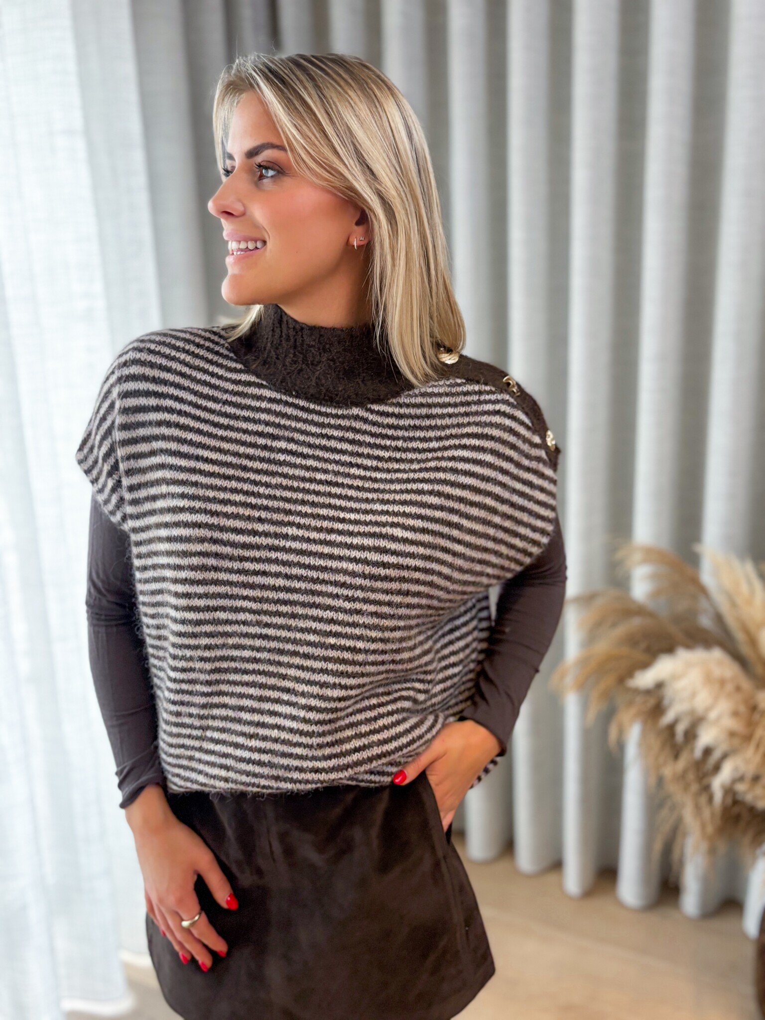 De perfecte basic onder een blazer of onder een trui met korte mouwen. Dankzij het hoogwaardige cashmere is de top verrassend warm, ondanks de fijne en lichte stof. Zacht, comfortabel en stijlvol in elke look. One size, valt als S/M. Het model is 1.62 m