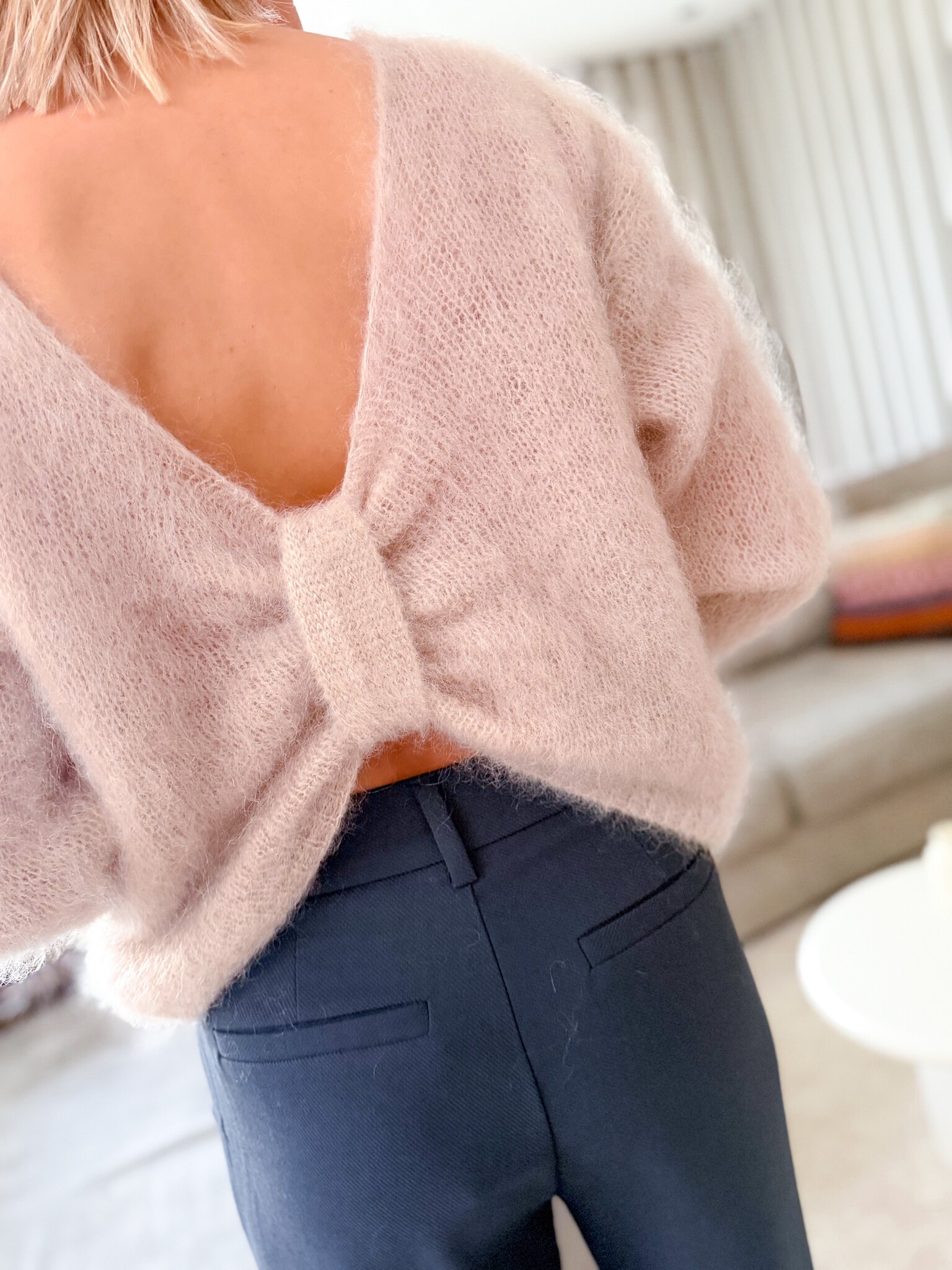 Aan verlanglijst toevoegenKnot pull €74,99 Toevoegen aan winkelwagenInloggen voor wishlistDirect betalenGratis verzending Vanaf €75,-BeschrijvingTrui met speels strikdetail, draagbaar aan beide kanten: voor een subtiel open buikje of een elegante open rug, helemaal zoals jij je het prettigst voelt. Luchtige trui van 80% mohair. Past goed tot S/M.
