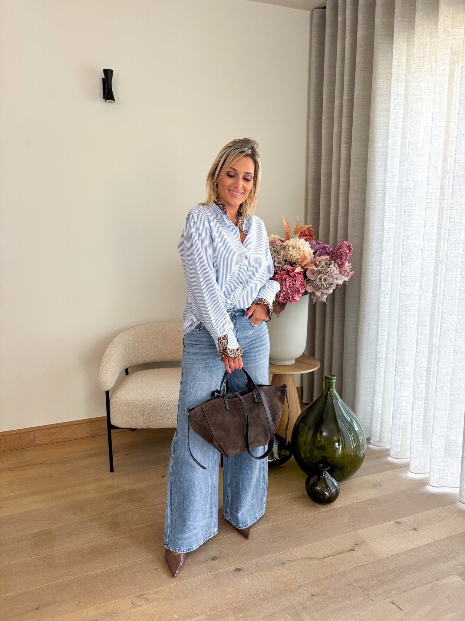 Aan verlanglijst toevoegenLeonor bag Suede Brown €110,00 Inloggen voor wishlistGratis verzending Vanaf €75,-BeschrijvingLederen handtas met ritssluiting. Lange en korte riem.