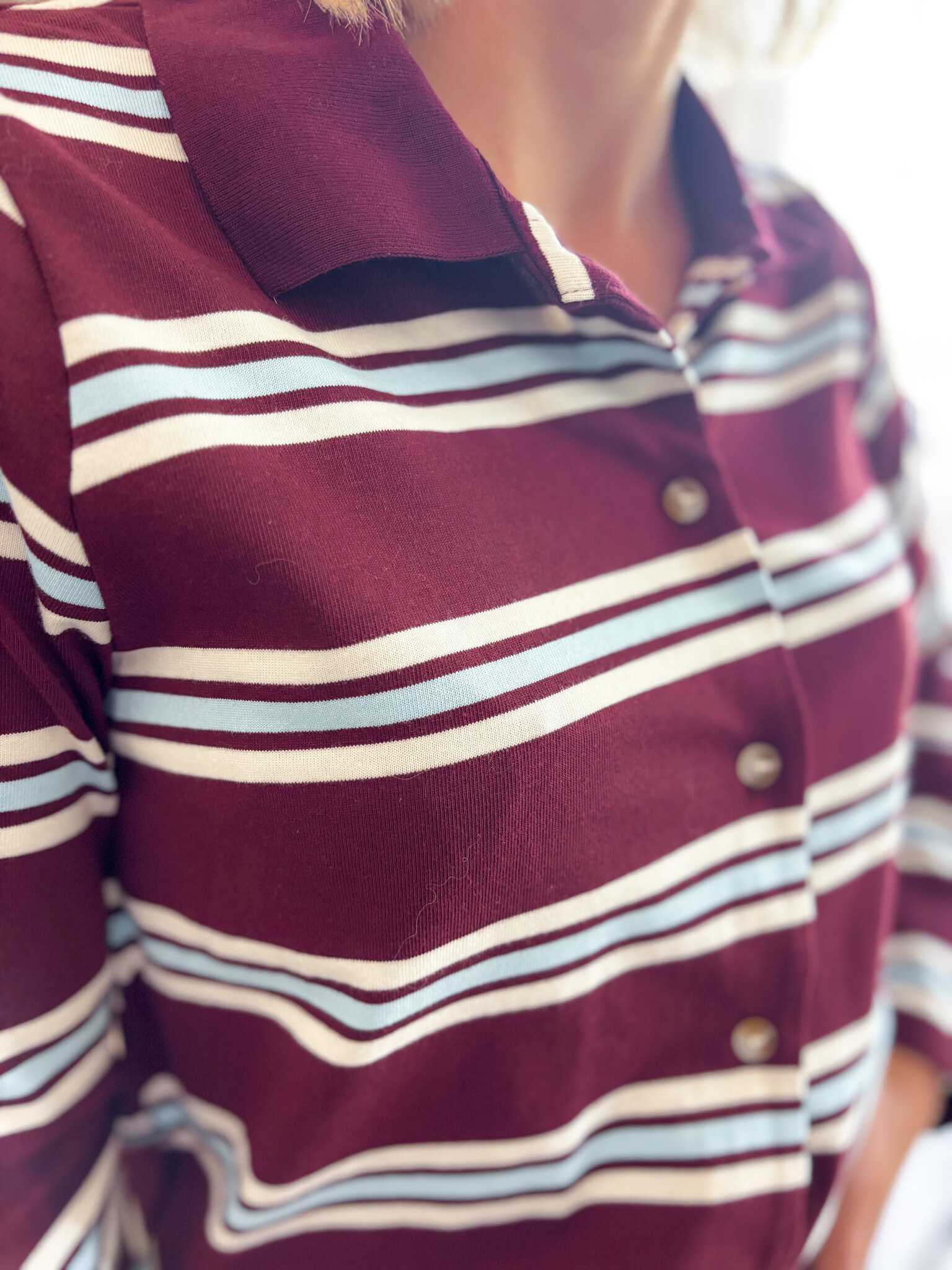 Aan verlanglijst toevoegenLine edit polo Bordeaux €39,99 Size: *SMMLToevoegen aan winkelwagenInloggen voor wishlistDirect betalenGratis verzending Vanaf €75,-BeschrijvingLichte polo met lange mouwen en subtiele streepjes. Gemaakt van dun, ademend materiaal voor ultiem draagcomfort. Ideaal voor een casual, dagelijkse look. Model is 1.62 m en draagt maat S/M.