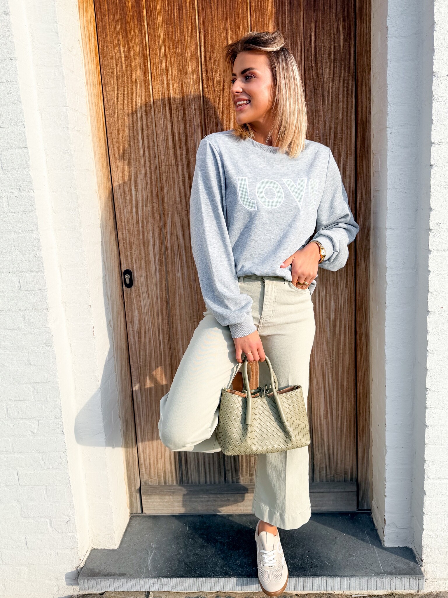 Aan verlanglijst toevoegenLittle love sweater green €39,99 Size: *SMMLToevoegen aan winkelwagenInloggen voor wishlistDirect betalenGratis verzending Vanaf €75,-BeschrijvingTrui met ‘love’ een echte musthave voor in je kast. Model is 1.65m en draagt S/M.