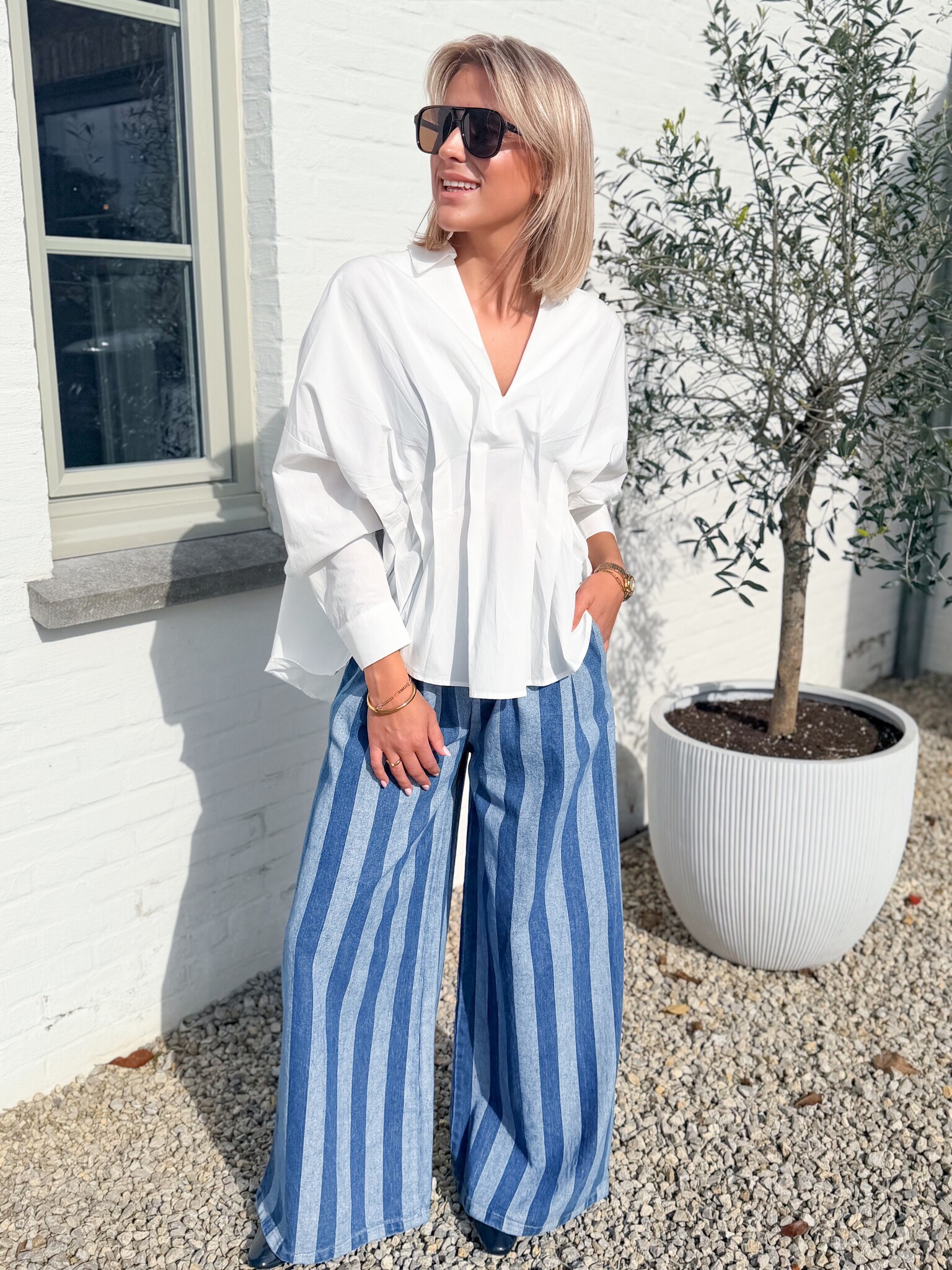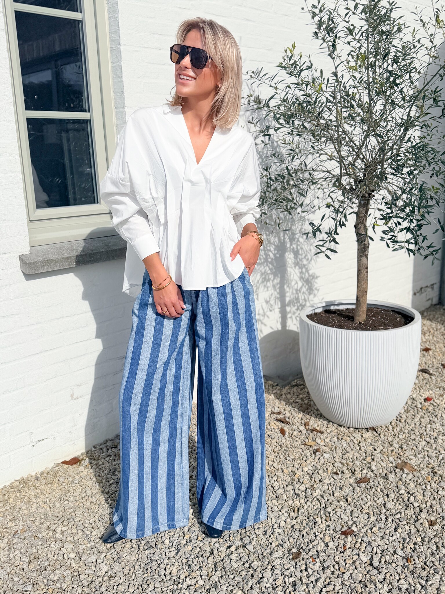 Aan verlanglijst toevoegenLoft denim €64,99 Size: *SMLToevoegen aan winkelwagenInloggen voor wishlistDirect betalenBeschrijvingBrede jeans met een unieke mix van lichte en donkere wassing, een losse fit en een opvallende, stoere uitstraling. Comfortabel en makkelijk te stylen, perfect voor een casual-chique look met karakter. Valt op maat.