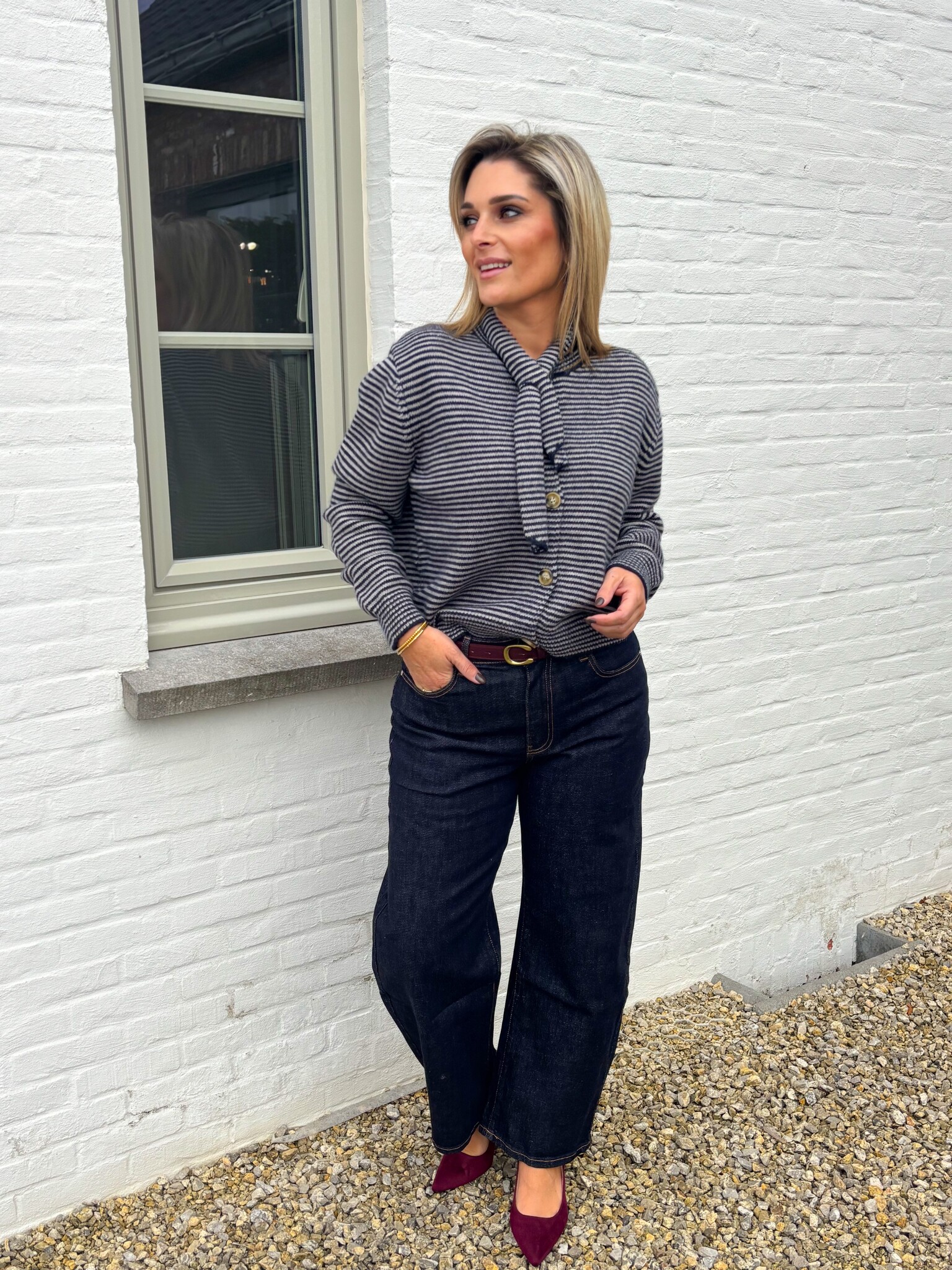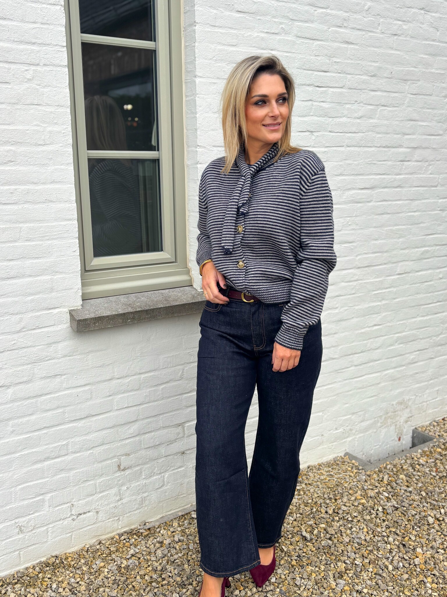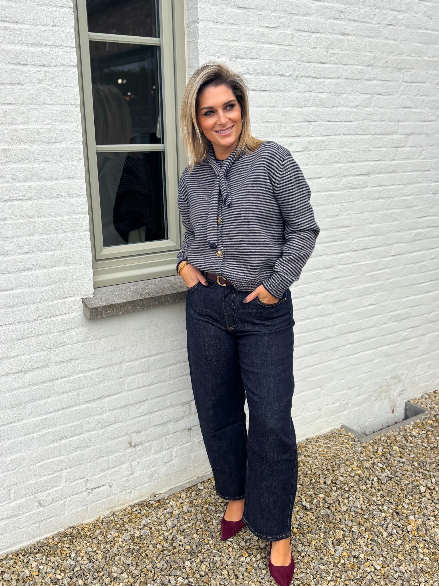 Aan verlanglijst toevoegenMarien style pull €49,99 Toevoegen aan winkelwagenInloggen voor wishlistDirect betalenGratis verzending Vanaf €75,-BeschrijvingStijlvolle gestreepte cardigan. Komt met een leuk sjaaltje erbij voor een speelse touch, kan ook los voor een meer casual look. Valt goed tot maat L.