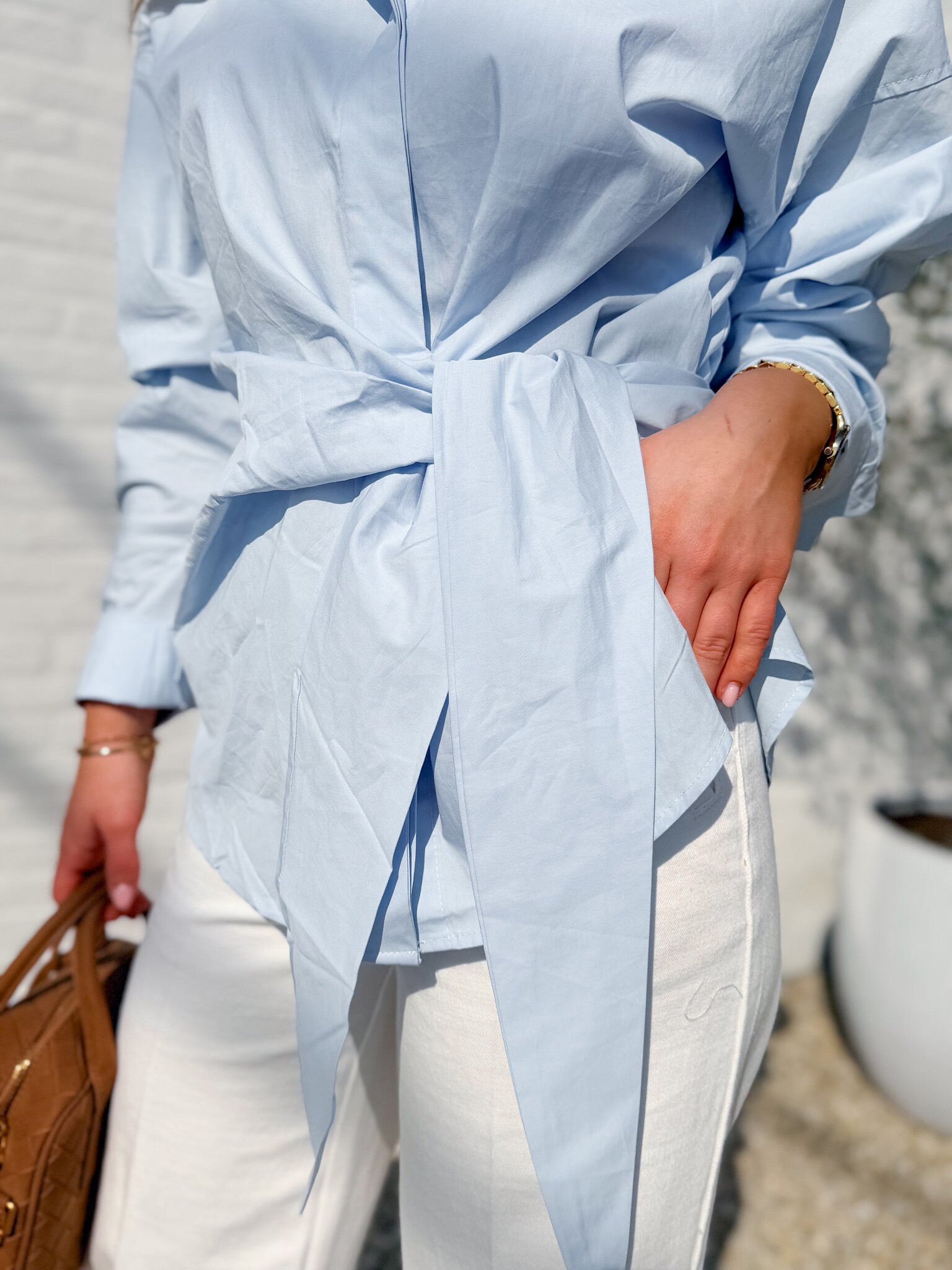 Aan verlanglijst toevoegenOcean tie hemdje €44,99 Size: *SMMLToevoegen aan winkelwagenInloggen voor wishlistDirect betalenBeschrijvingMooi lichtblauw hemdje met een strikdetail aan de voorkant. Valt op maat met een subtiele oversized fit voor een stijlvolle en comfortabele look. Het model is 1m64 en draagt maat S/M.