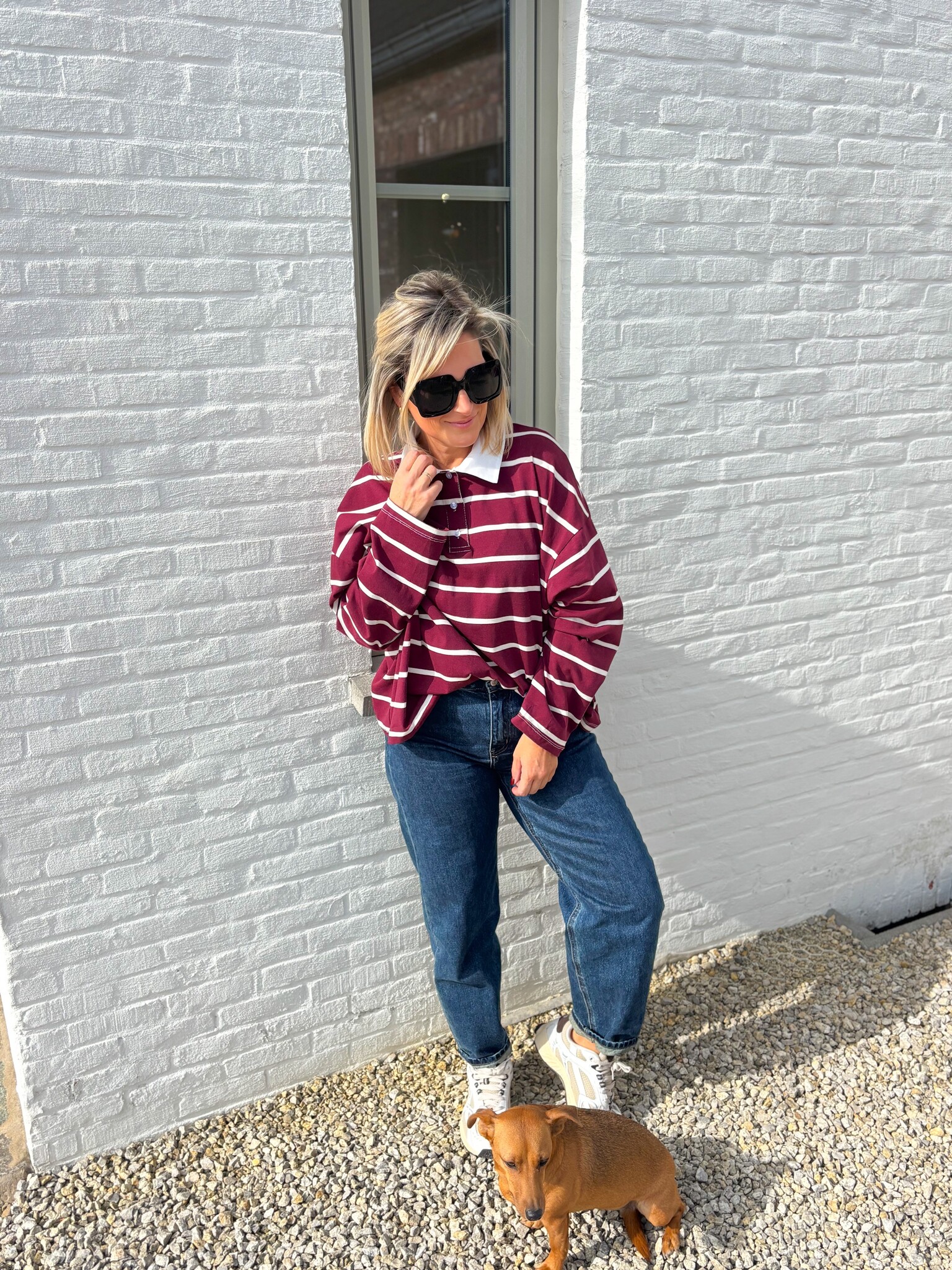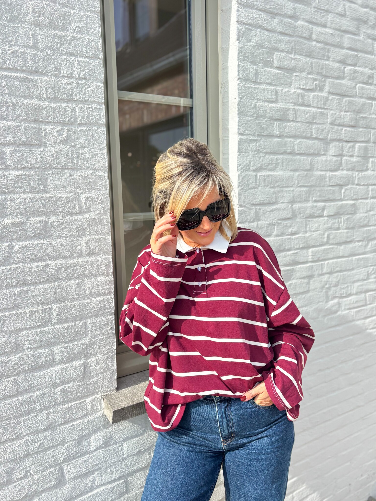 Aan verlanglijst toevoegenPolo de Ligne Bordeaux €44,99 Toevoegen aan winkelwagenInloggen voor wishlistDirect betalenGratis verzending Vanaf €75,-BeschrijvingTrendy gestreepte polo, dé must-have van het seizoen! De speelse strepen geven een frisse en moderne twist, terwijl de klassieke pasvorm zorgt voor een comfortabele en casual look. Model is 1.62m. Valt goed tot maat L.