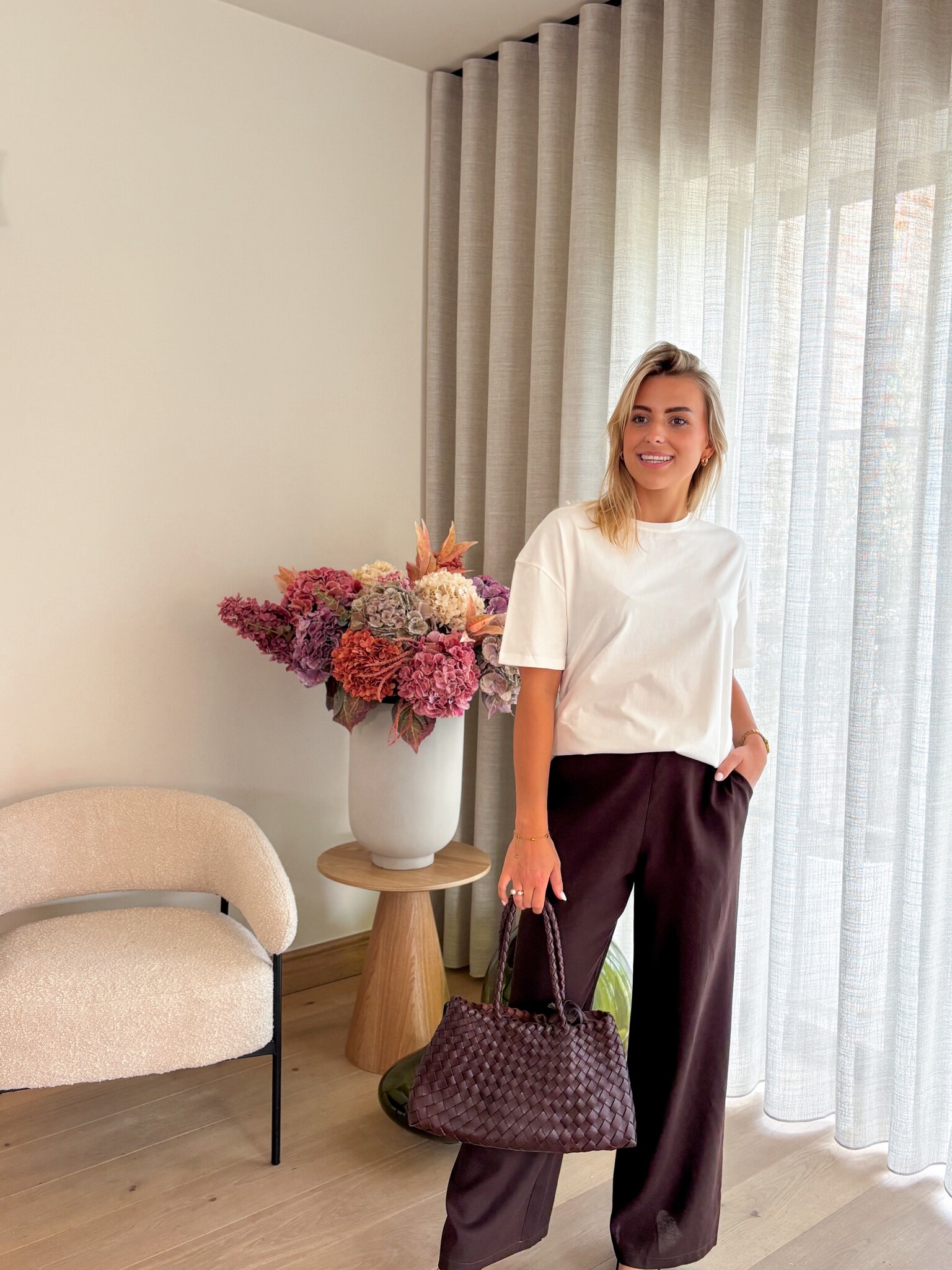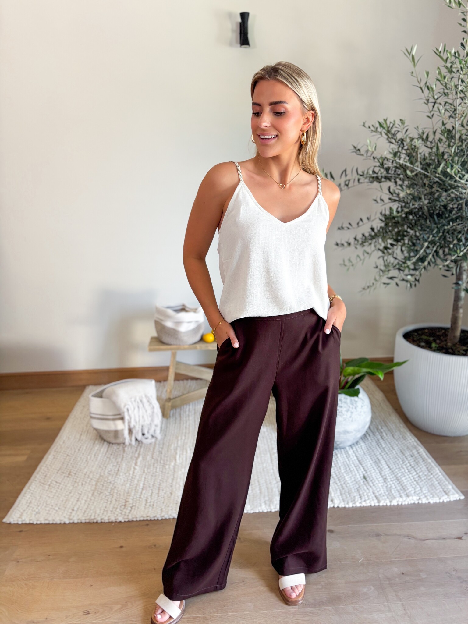 Aan verlanglijst toevoegenSippin' espresso pants €49,99 Toevoegen aan winkelwagenInloggen voor wishlistDirect betalenGratis verzending Vanaf €75,-BeschrijvingBroek heeft elastiek in de taille aan de achterkant. Broek is one size en valt goed tot maat ML. Model is 1.62m, draagt hakken van 5cm.