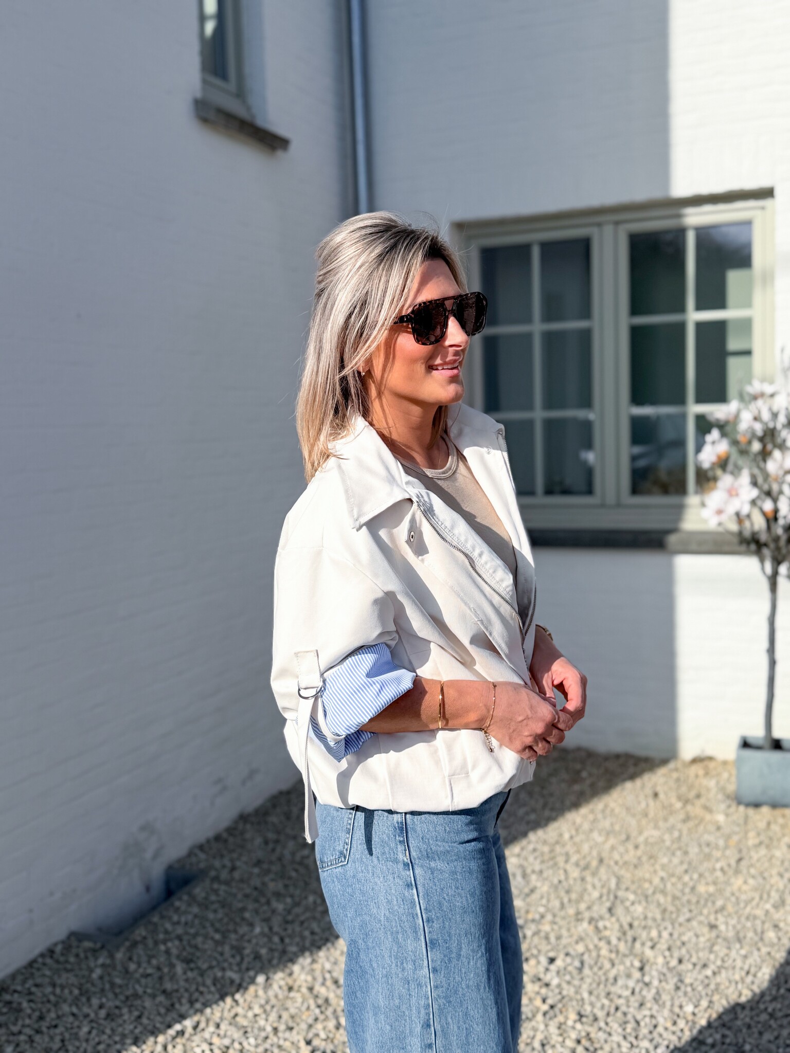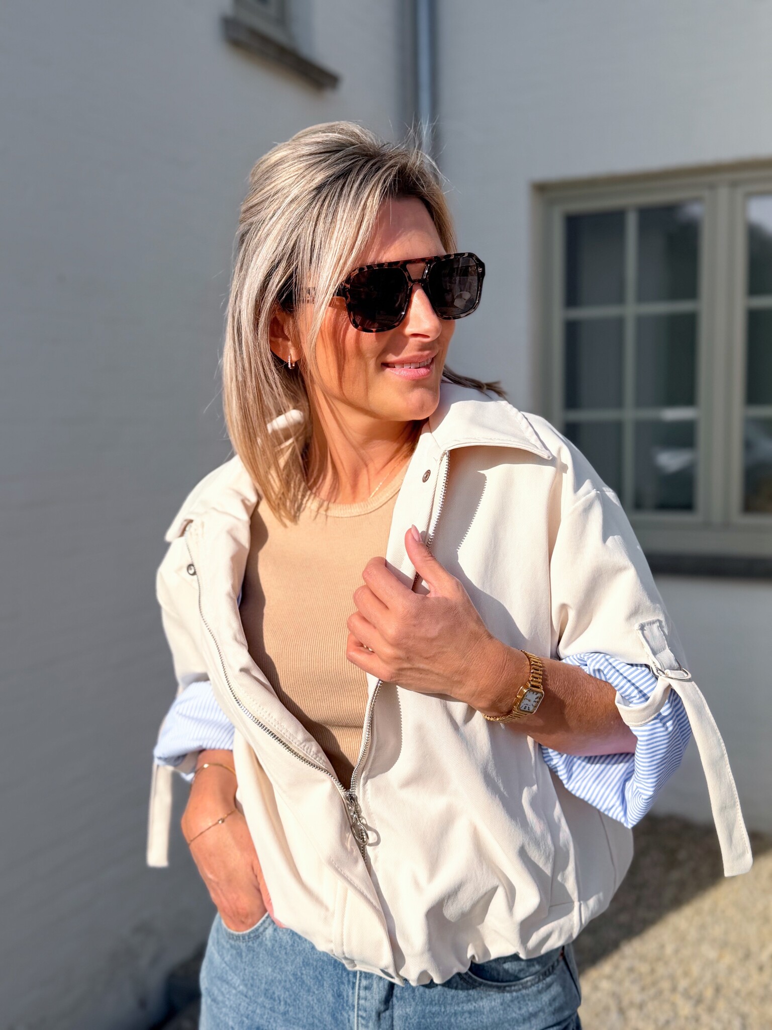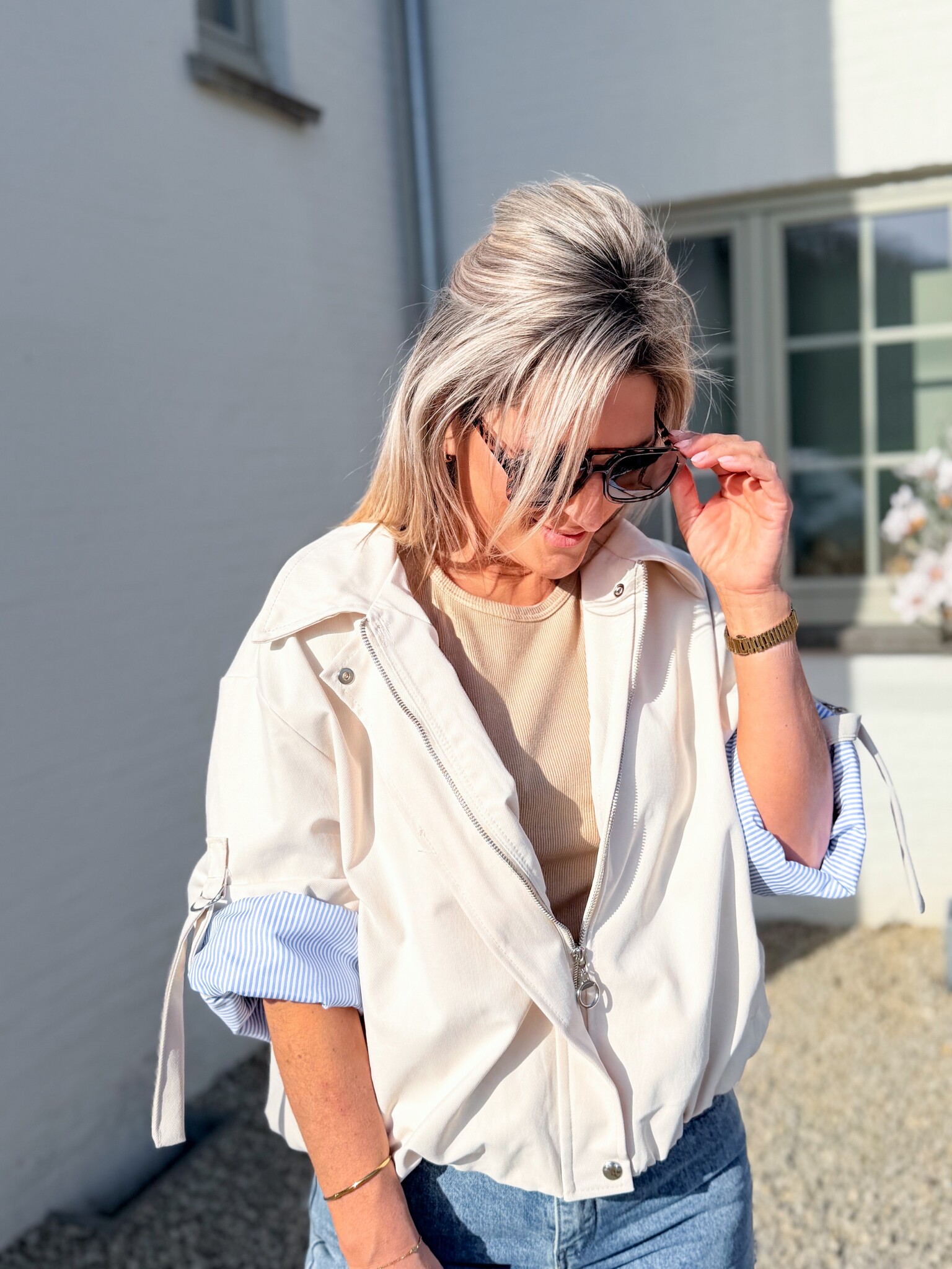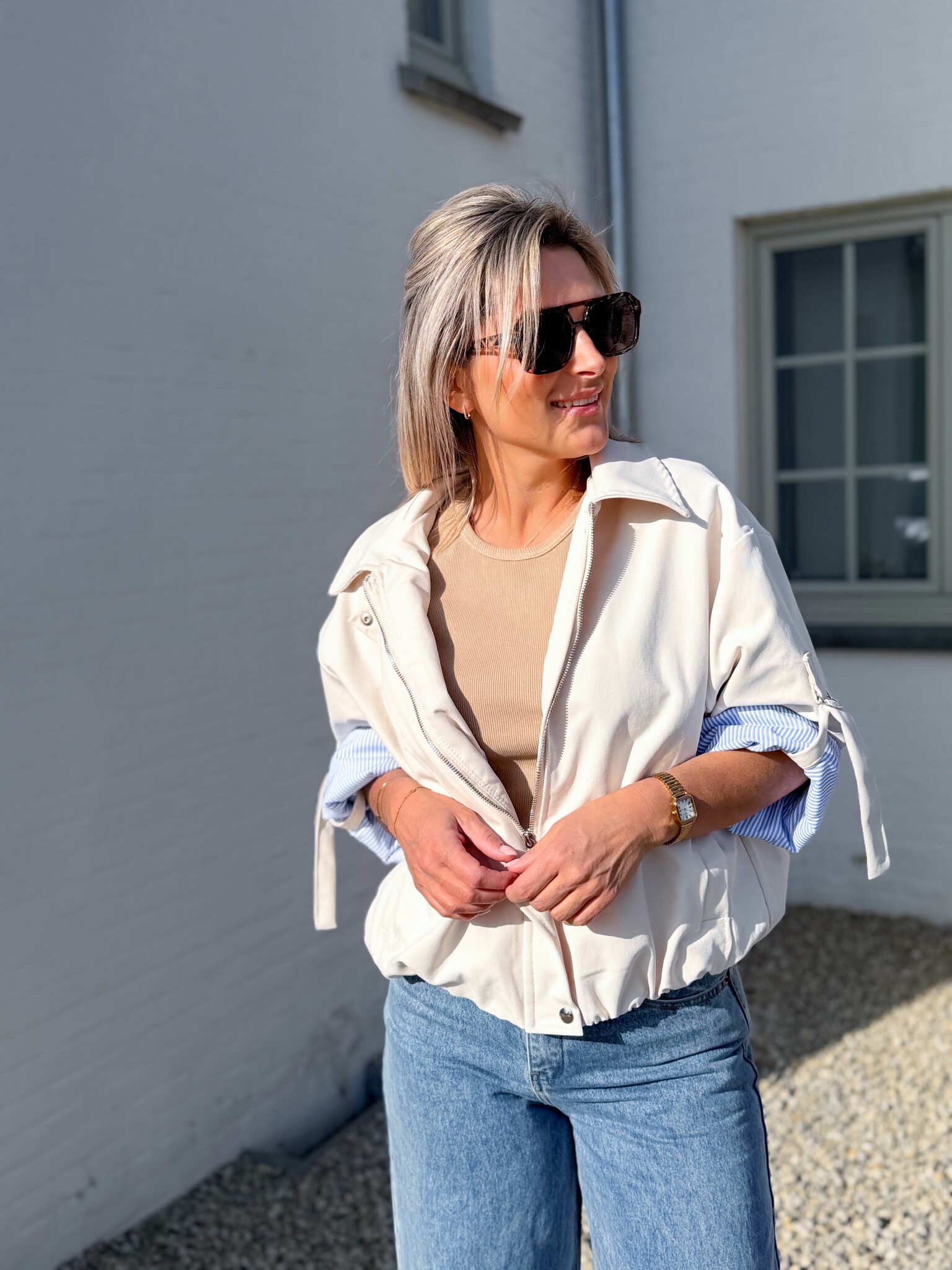 Aan verlanglijst toevoegenThe aspen jacket beige €59,99 Toevoegen aan winkelwagenInloggen voor wishlistDirect betalenGratis verzending Vanaf €75,-BeschrijvingStijlvol bomberjasje met opgerolde mouwtjes als speels detail. De subtiele streepjes zorgen voor een mooi contrast. Perfect om elke outfit net dat beetje extra te geven, casual maar toch chic. Past goed tot maat L.