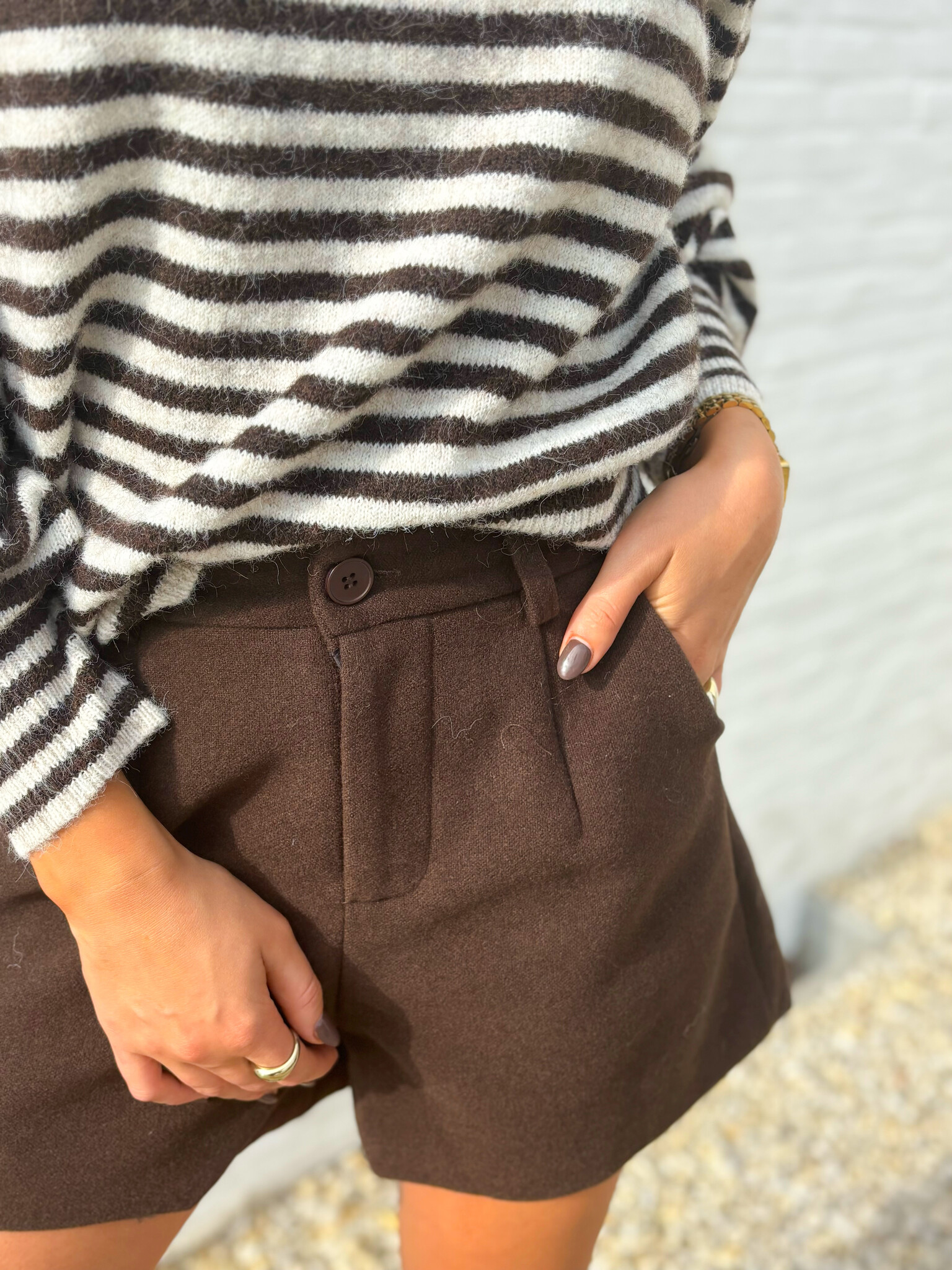 Aan verlanglijst toevoegenThe city short brown €39,99 Size: *SMLToevoegen aan winkelwagenInloggen voor wishlistDirect betalenGratis verzending Vanaf €75,-BeschrijvingLeuke A-lijn short met een hogere taille en een zeer aangename pasvorm. Valt normaal op maat. Model is 1.62 m. Ideaal voor een vrouwelijke en flatterende look. Combineer met een blouse of top voor een casual of geklede outfit.