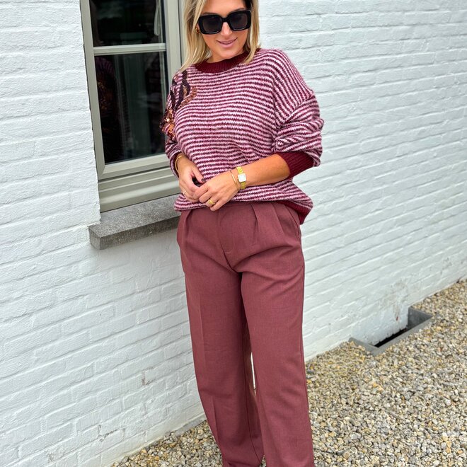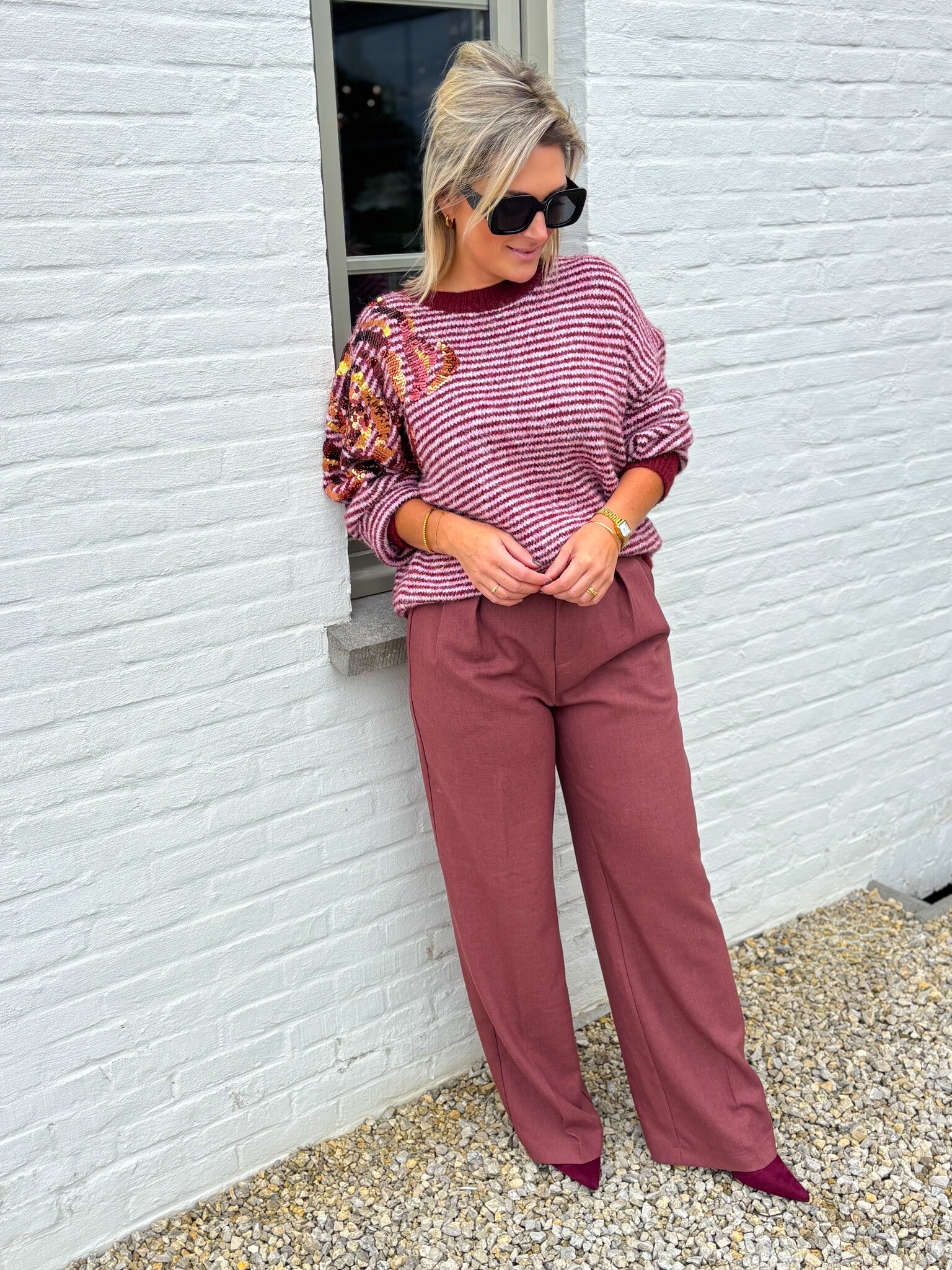 Aan verlanglijst toevoegenThe modern trouser burusty €54,99 Size: *SMLToevoegen aan winkelwagenInloggen voor wishlistDirect betalenGratis verzending Vanaf €75,-BeschrijvingPrachtige broek met split vooraan en een bijpassend riempje. Valt normaal op maat en zit elegant en comfortabel. Het model is 1.62m en draagt haar gewone maat.