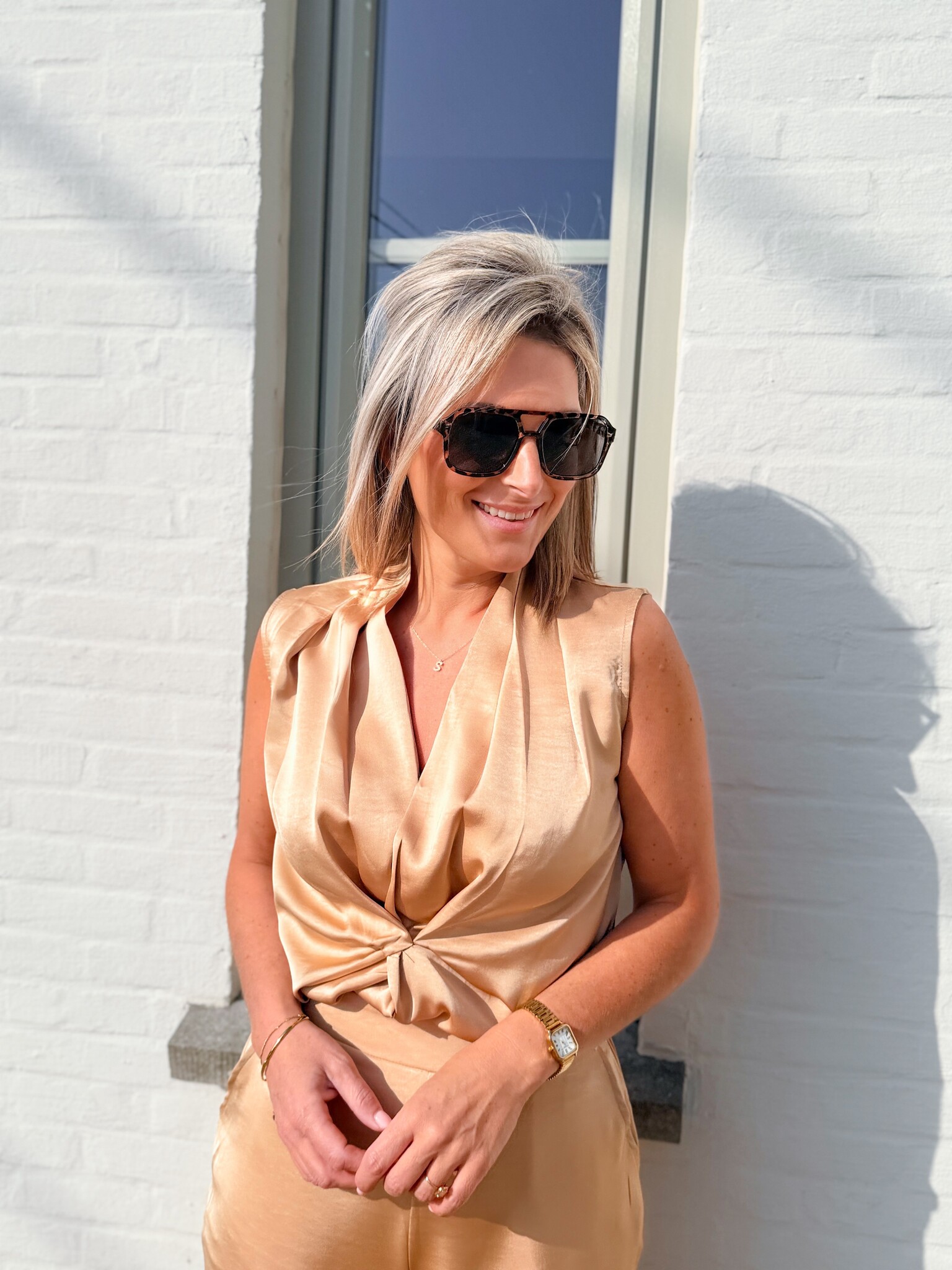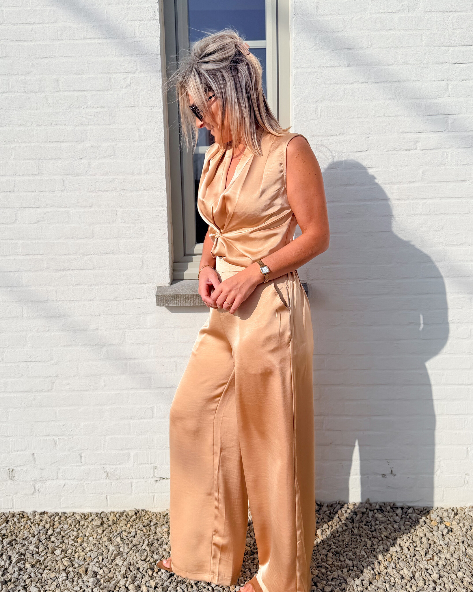 Aan verlanglijst toevoegenThe sandstone top €39,99 Size: *SMLToevoegen aan winkelwagenInloggen voor wishlistDirect betalenGratis verzending Vanaf €75,-BeschrijvingElegante top in een champagne/gouden tint, met een mooie V-hals en een verfijnde pasvorm. Perfect te combineren met onze satijnen broek 'The sandstone pants' voor een complete set, ideaal voor speciale gelegenheden. Valt normaal op maat.