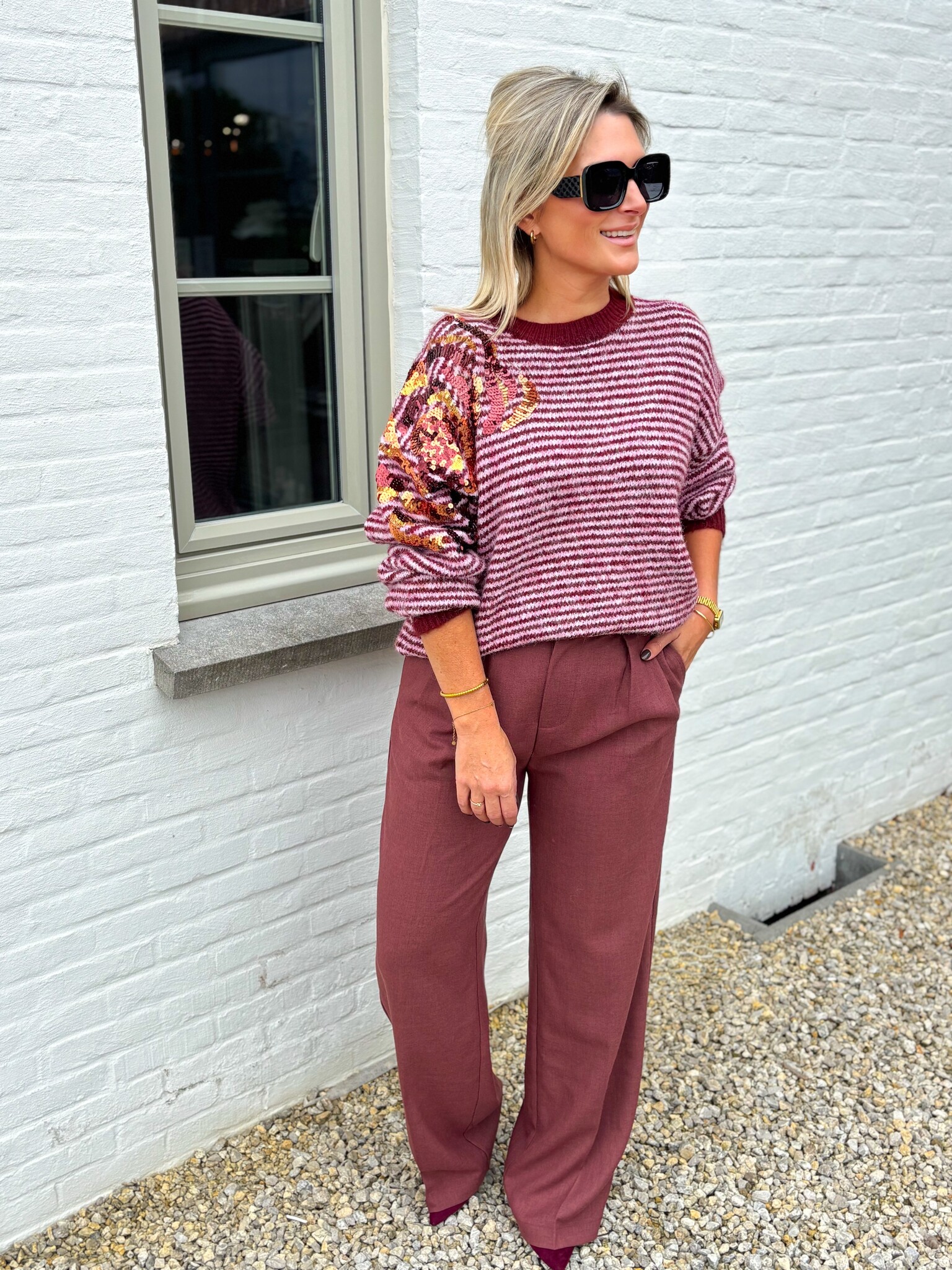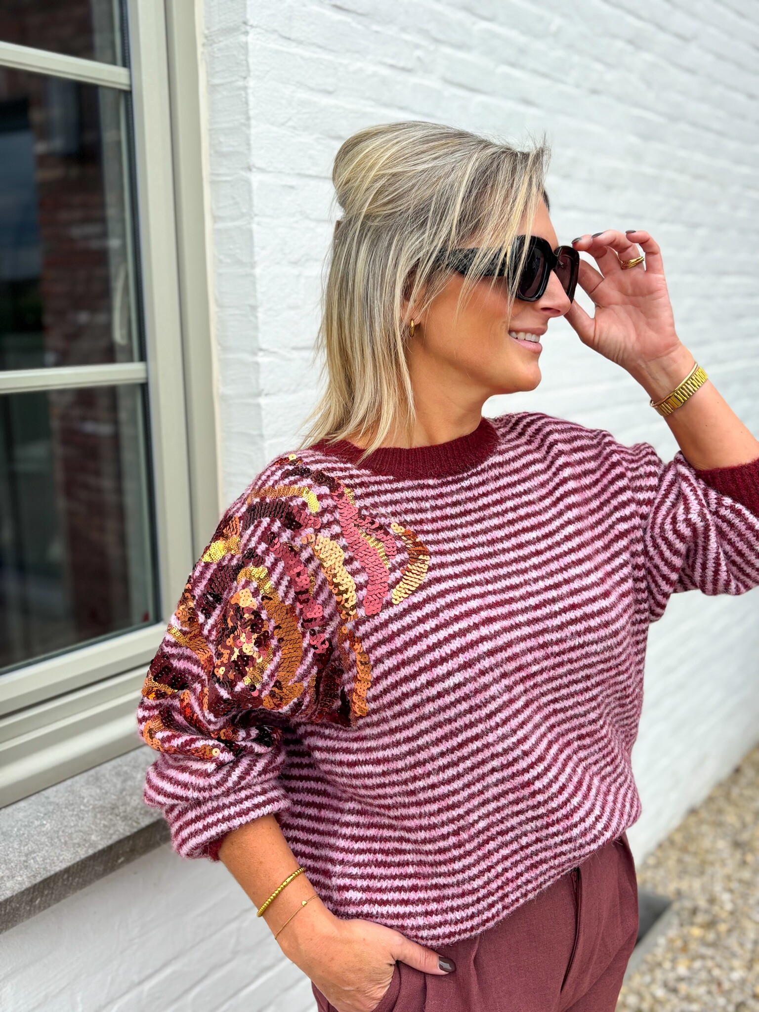 Aan verlanglijst toevoegenThe wine sparkle knit €54,99 Toevoegen aan winkelwagenInloggen voor wishlistDirect betalenGratis verzending Vanaf €75,-BeschrijvingPrachtige gestreepte trui met een verfijnd paillet bloemen-detail. Een echte eyecatcher! One size, past goed tot maat L. Het model is 1.62m.