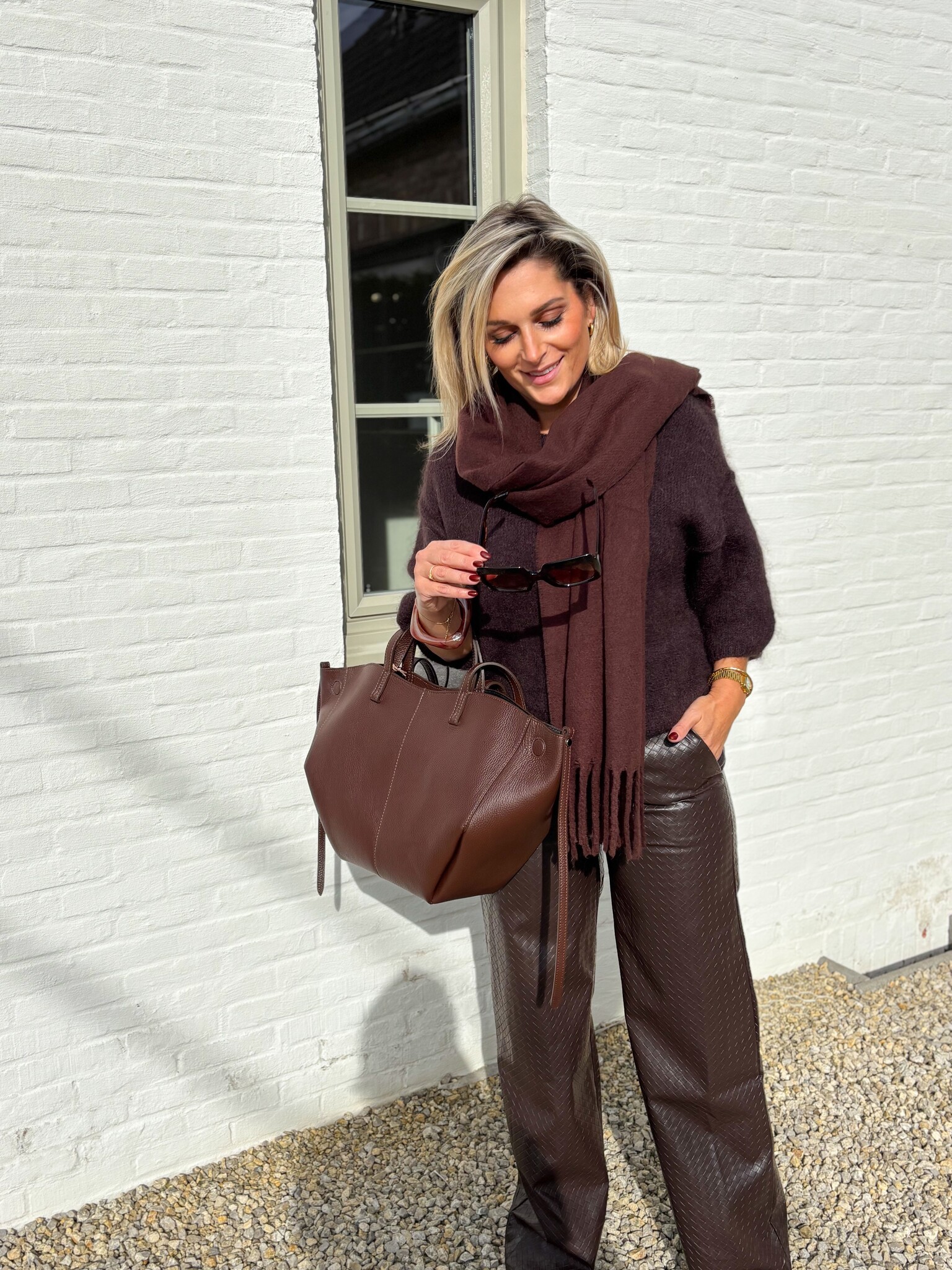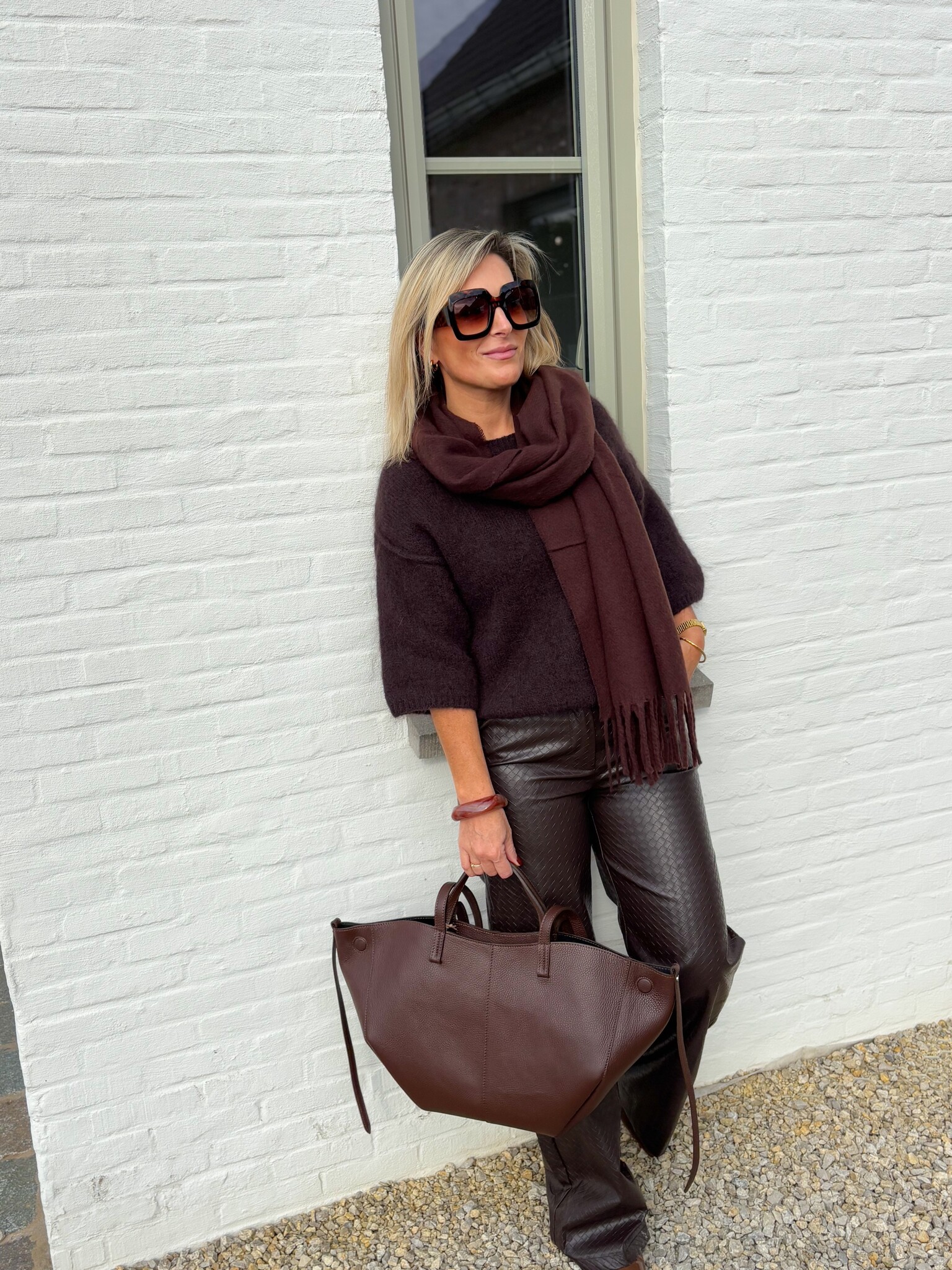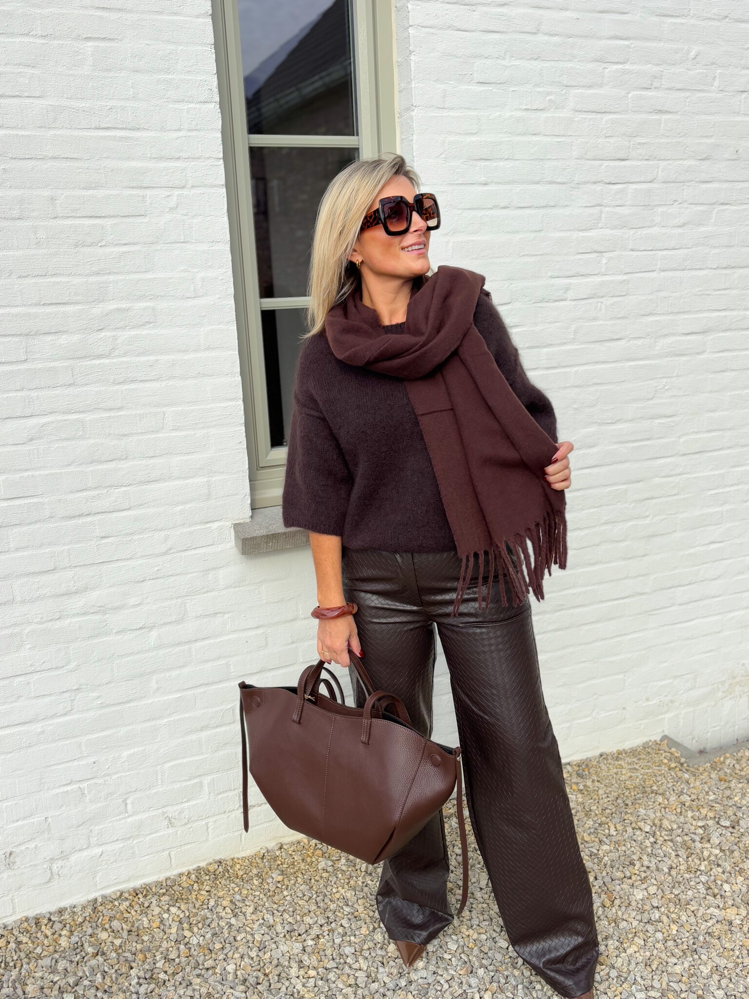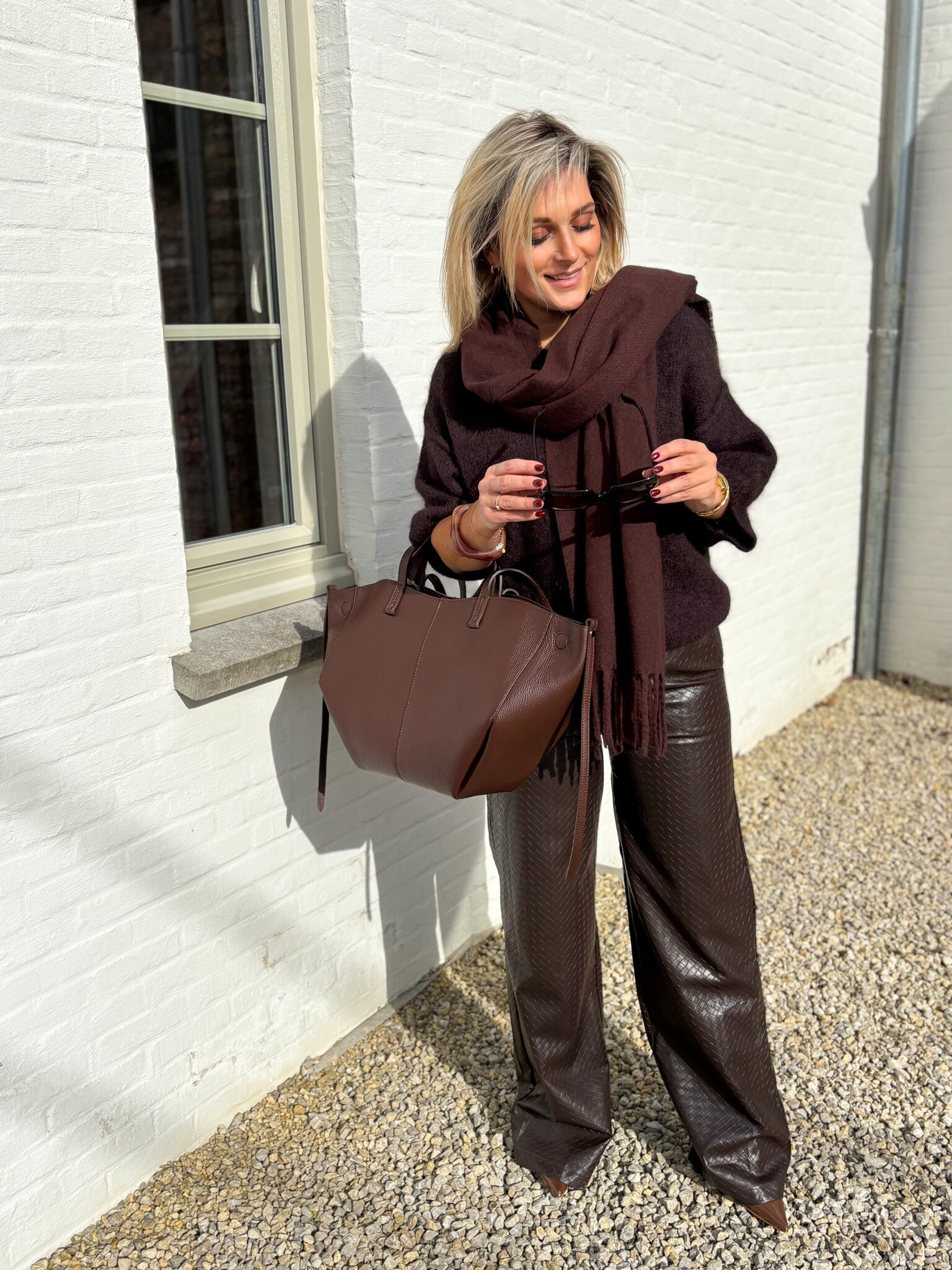 Aan verlanglijst toevoegenTwist & rebel pants chocolate €54,99 Size: *SMLToevoegen aan winkelwagenInloggen voor wishlistDirect betalenGratis verzending Vanaf €75,-BeschrijvingLederlook broek met stijlvol gevlochten motief voor een edgy look. Let op: dit rokje valt 1 maat kleiner dan je normale maat, kies daarom een maat groter voor de perfecte pasvorm. Combineer met een zachte trui of blouse. Model is 1.62M.