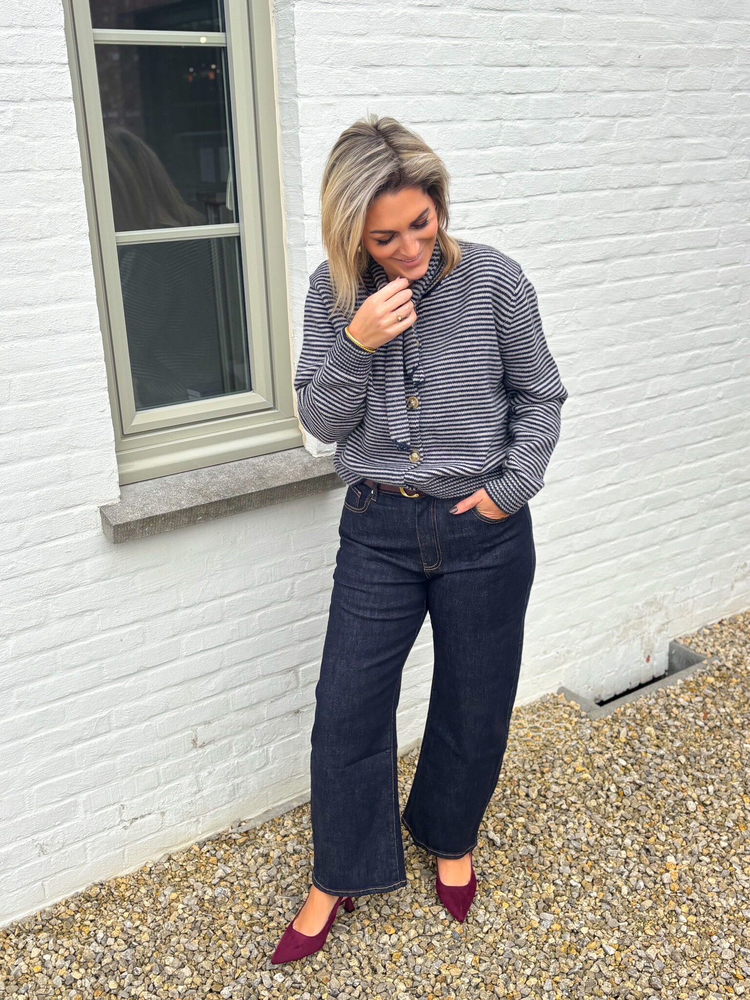 Donkerblauwe balloon jeans, gemaakt van comfortabel denim. Met zijn relaxte pasvorm ideaal voor een casual, stijlvolle look. Makkelijk te combineren met sneakers of laarsjes. Valt normaal op maat. Model is 1.62 m en draagt maat M/38.