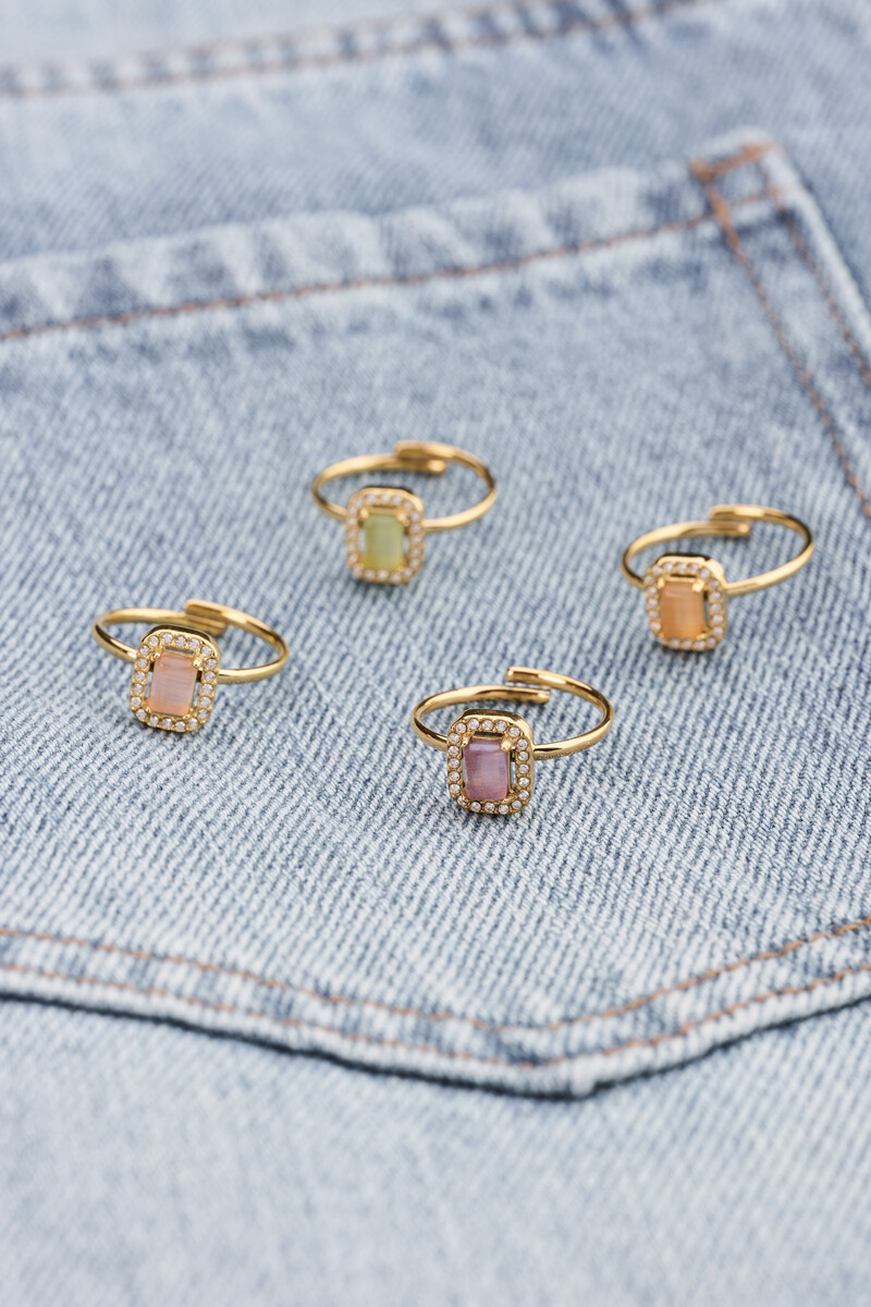 Aan verlanglijst toevoegenVintage ring lavender €29,99 Toevoegen aan winkelwagenInloggen voor wishlistDirect betalenGratis verzending Vanaf €75,-BeschrijvingStatement piece alert. Van premium stainless steel, dus verkleurt niet! Het overige materiaal is gemaakt van resin & glas De ring is 0,1 cm dik De steen is 0,6 cm breed & 1 cm lang De ring is verstelbaar naar jouw perfecte ringmaat